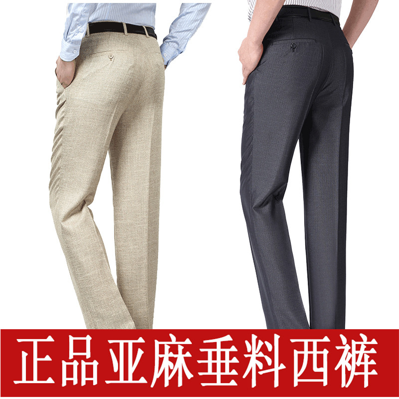 Мужские летние штаны, костюм, для среднего возраста, высокая талия, свободный прямой крой