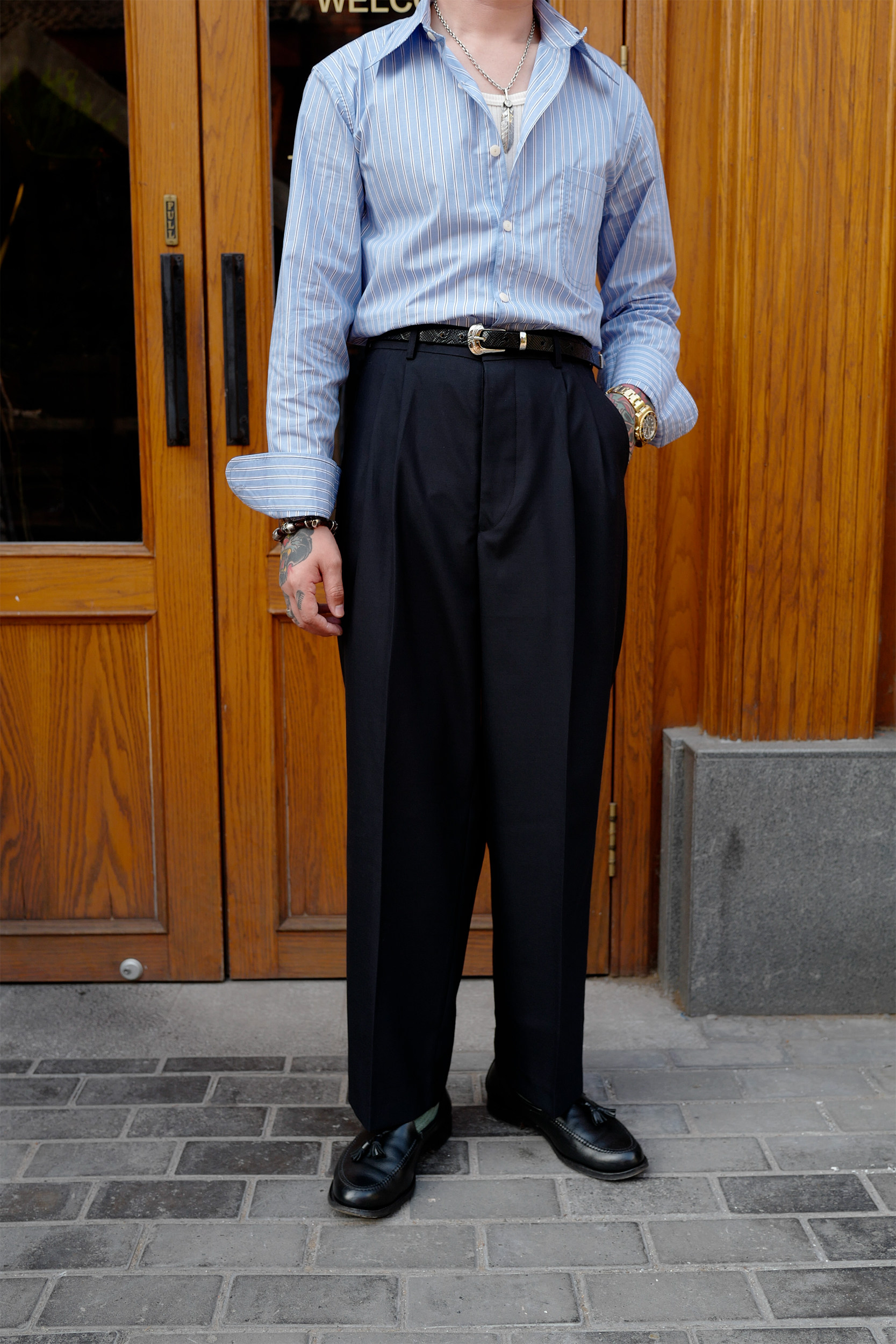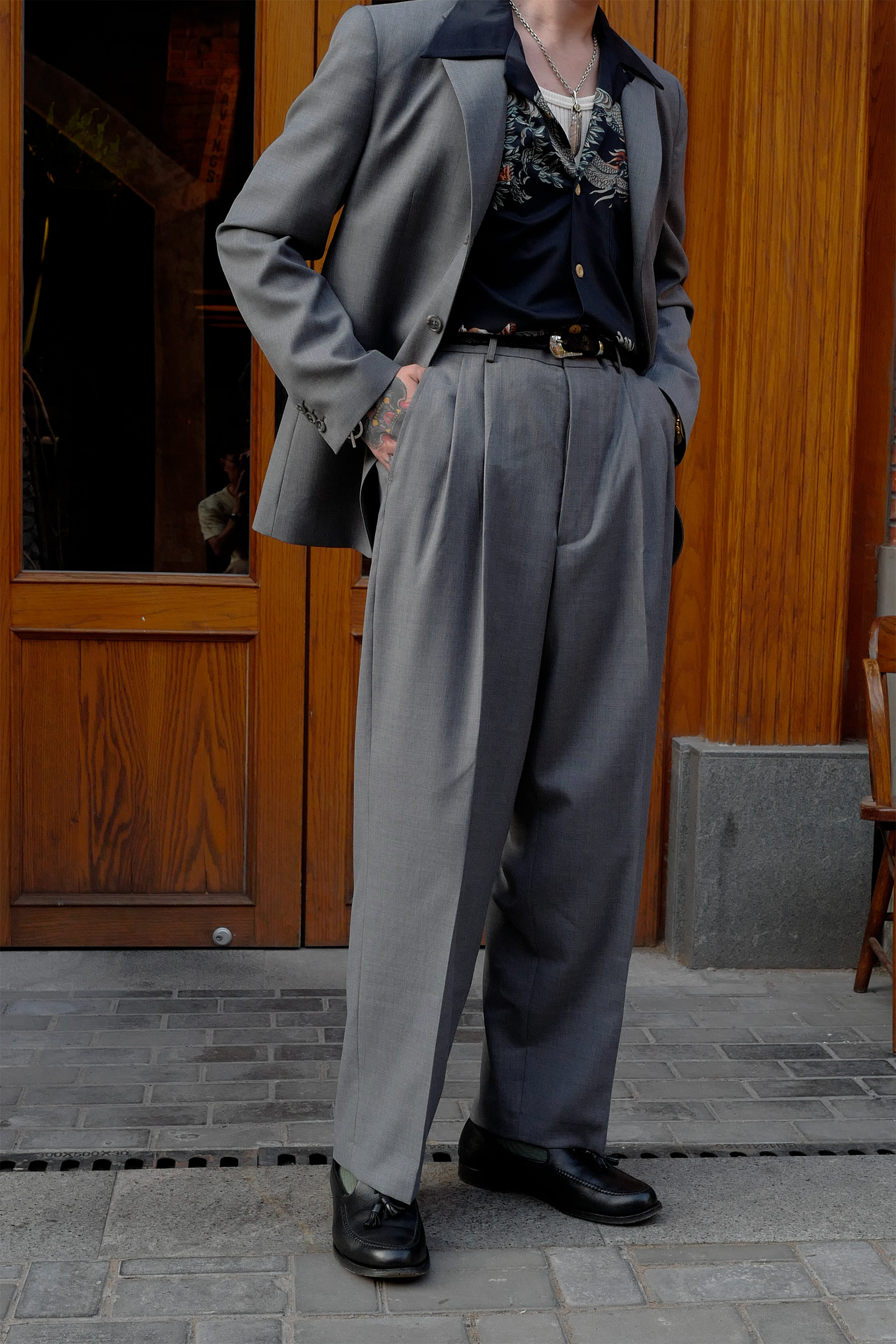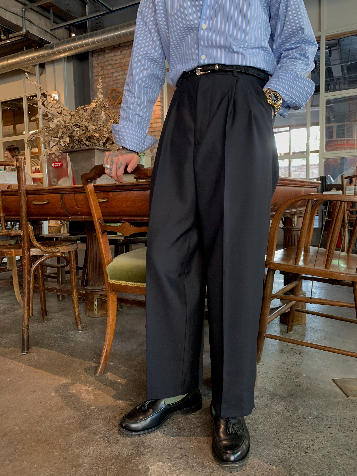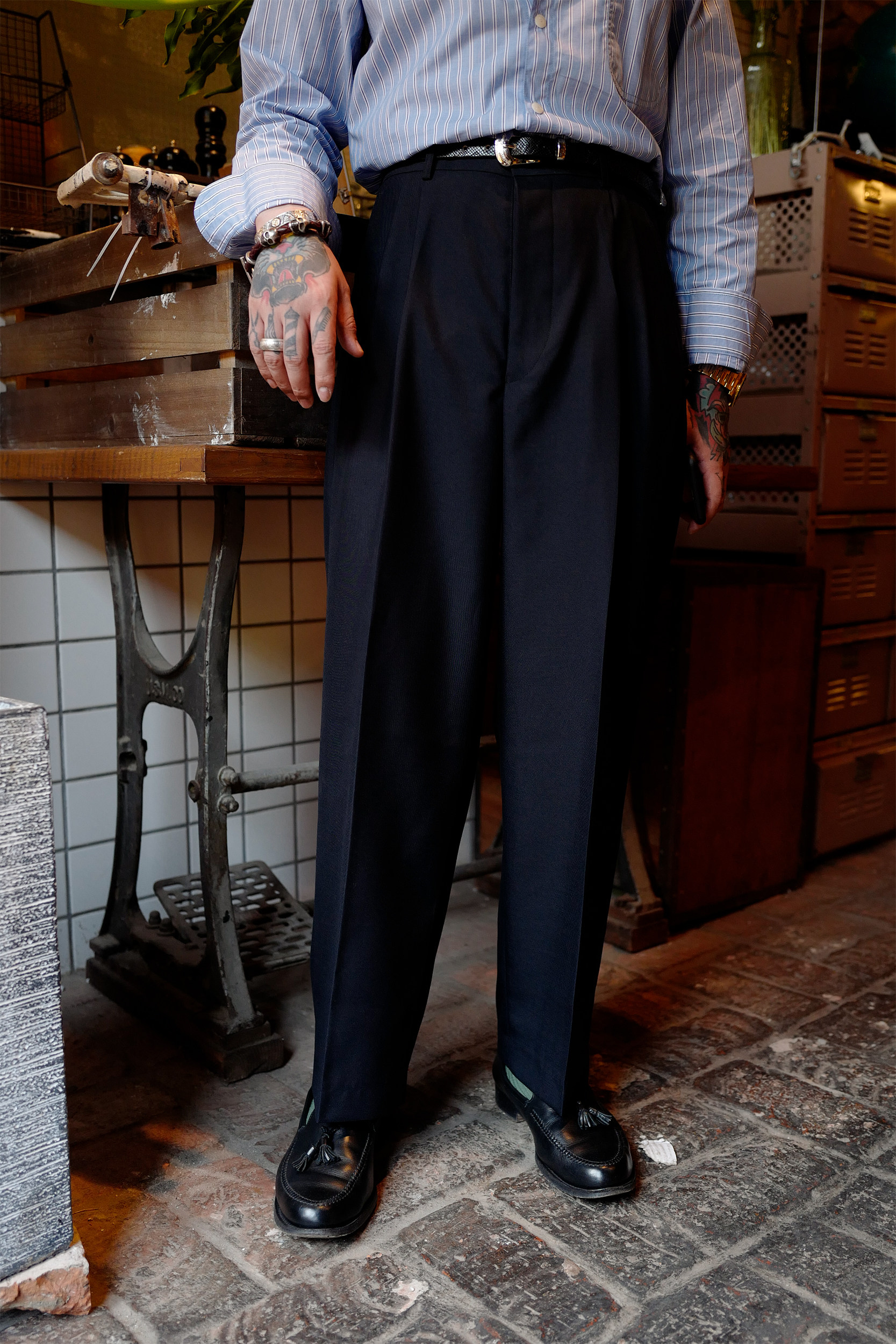 Профсоюз ретро классические брюки с широкополезными брюками японская импортная шерсть 1950 -х годов Lu86