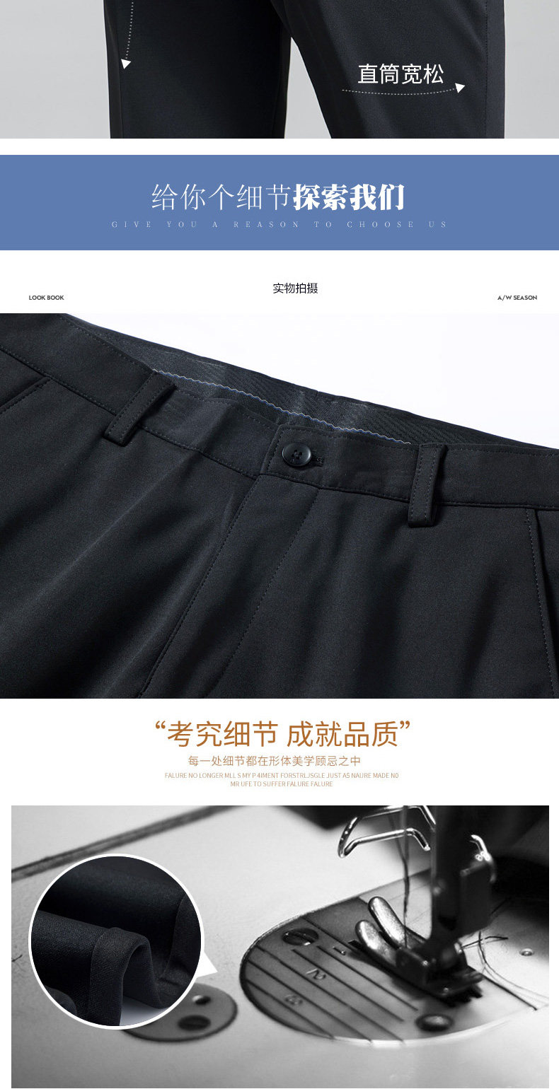 Эластичные штаны, костюм, пиджак классического кроя, черные повседневные брюки для отдыха, свободный прямой крой