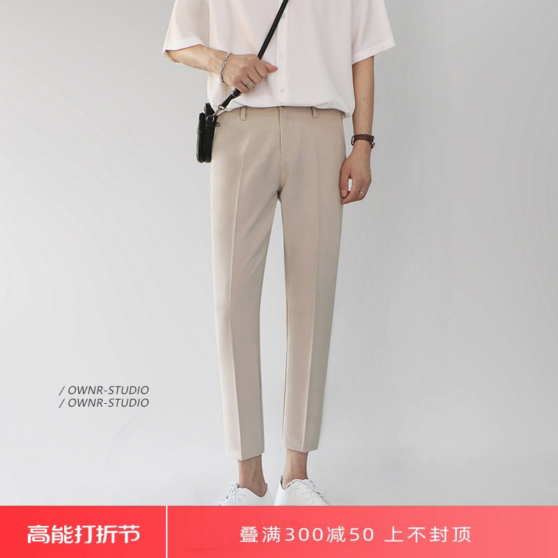 Летние тонкие приталенные хаки трендовые штаны, в корейском стиле, подходят для подростков, свободный прямой крой