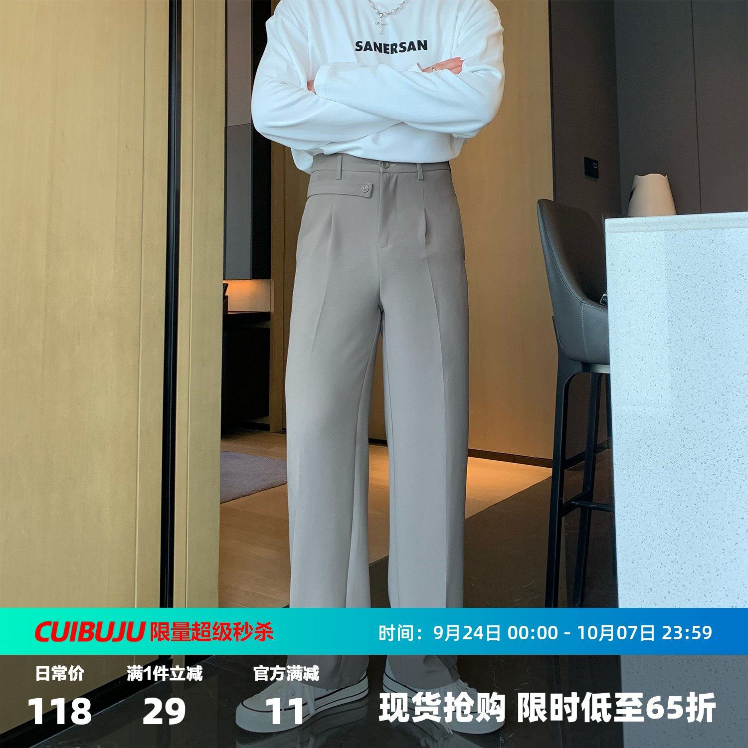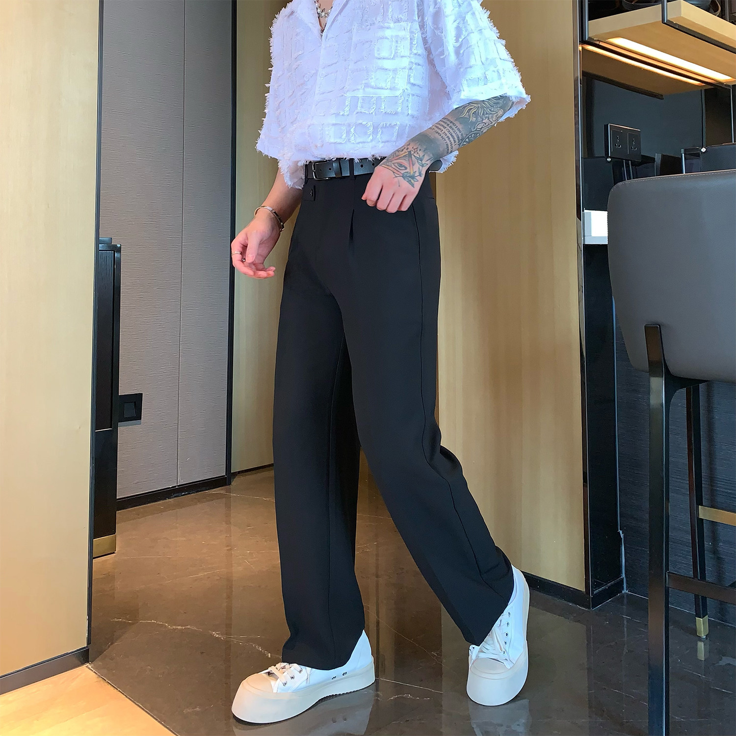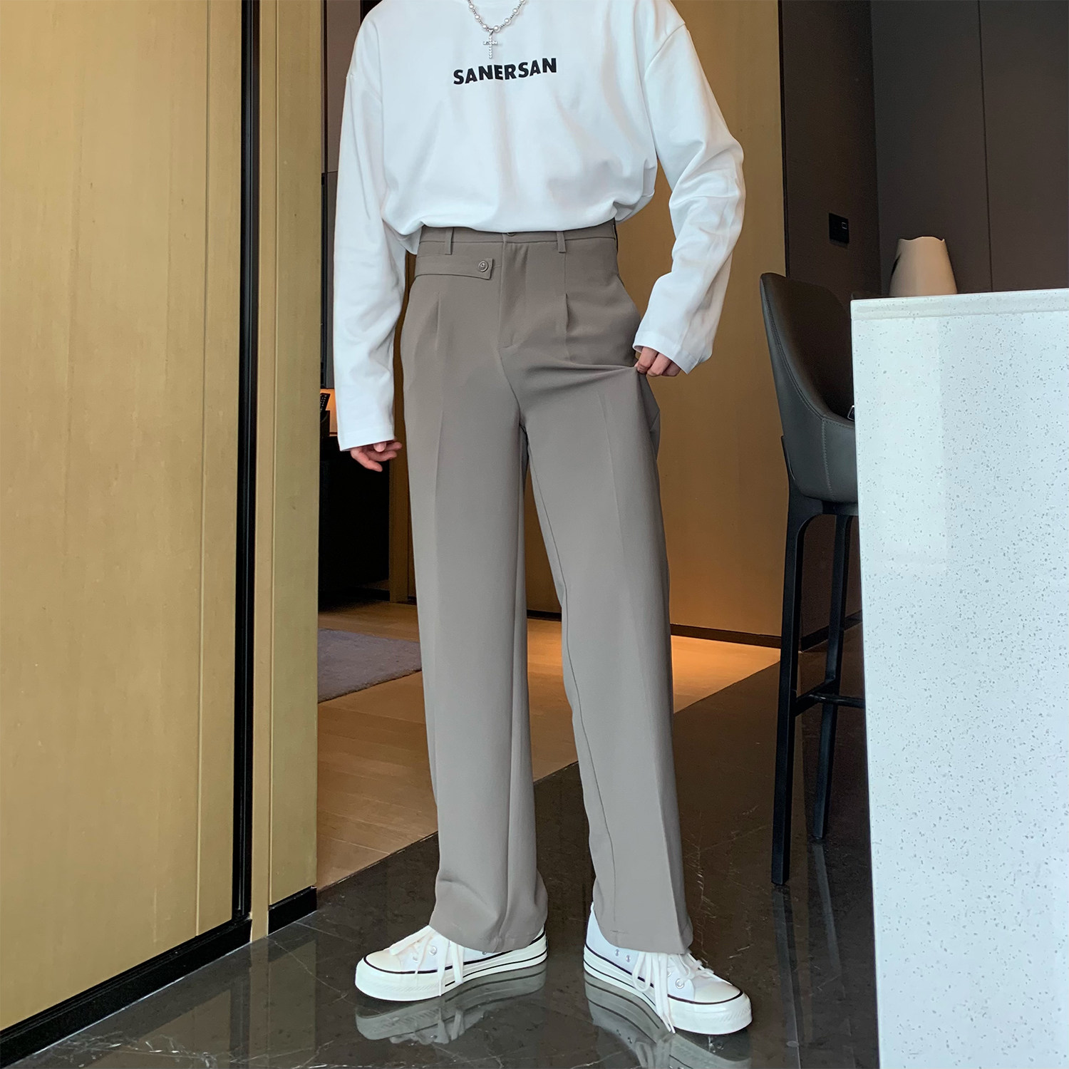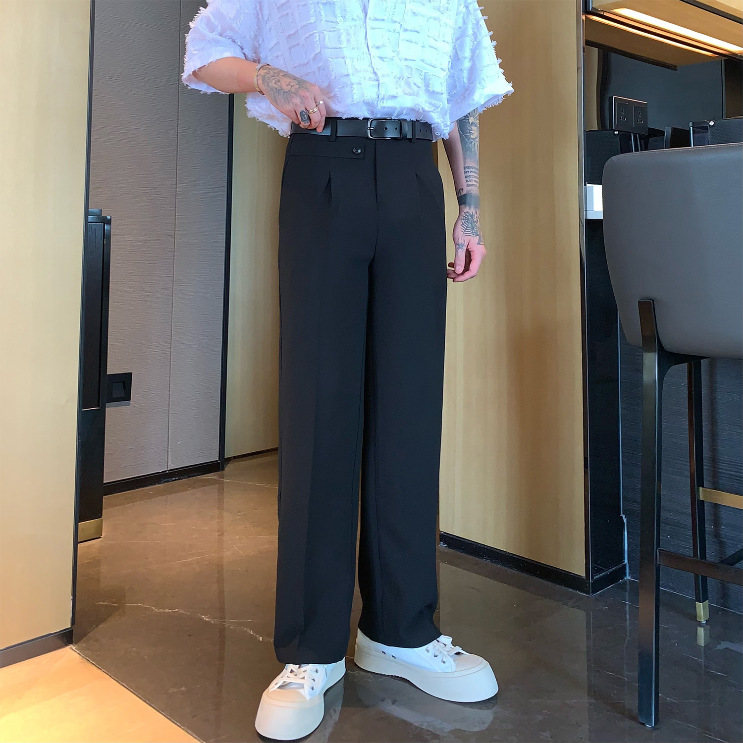 Дизайнерские штаны, костюм, в корейском стиле, оверсайз, свободный прямой крой
