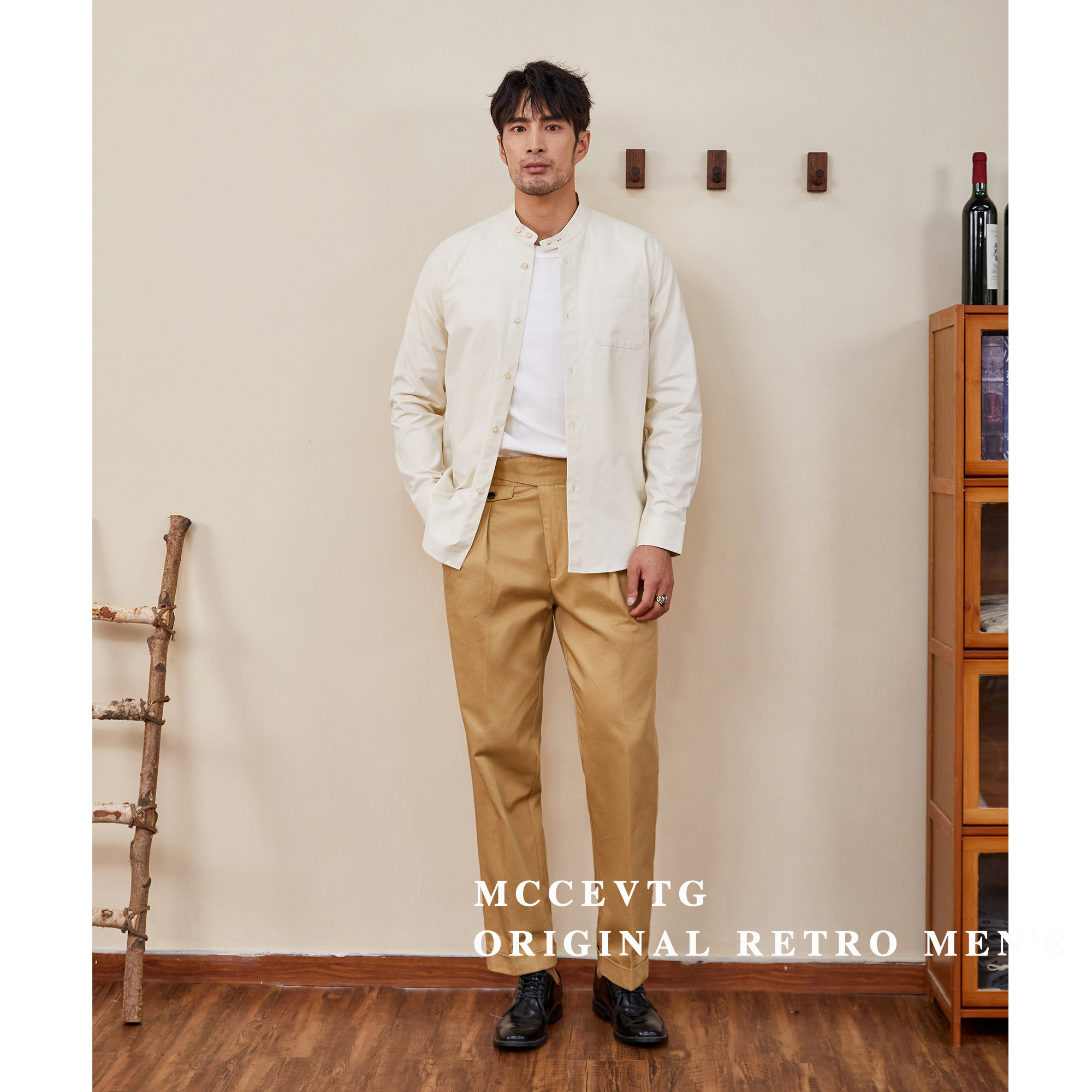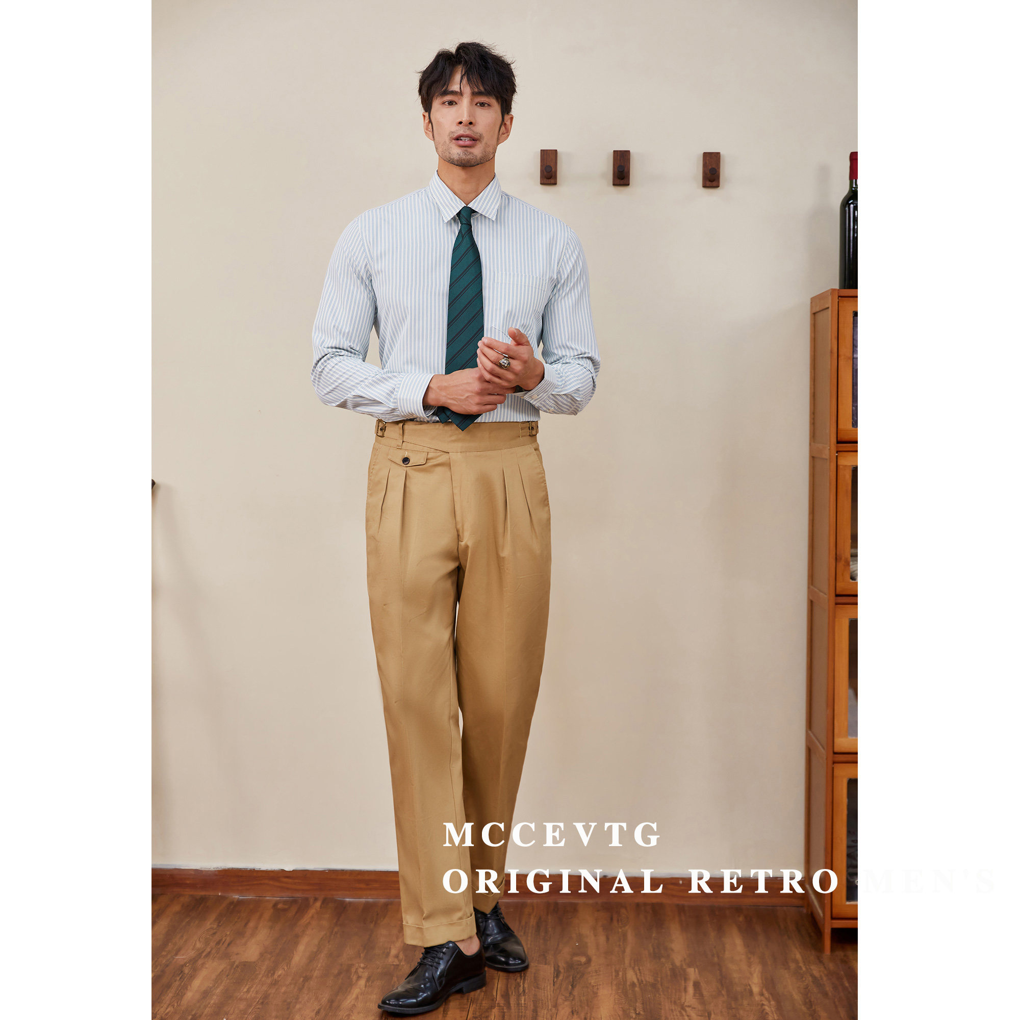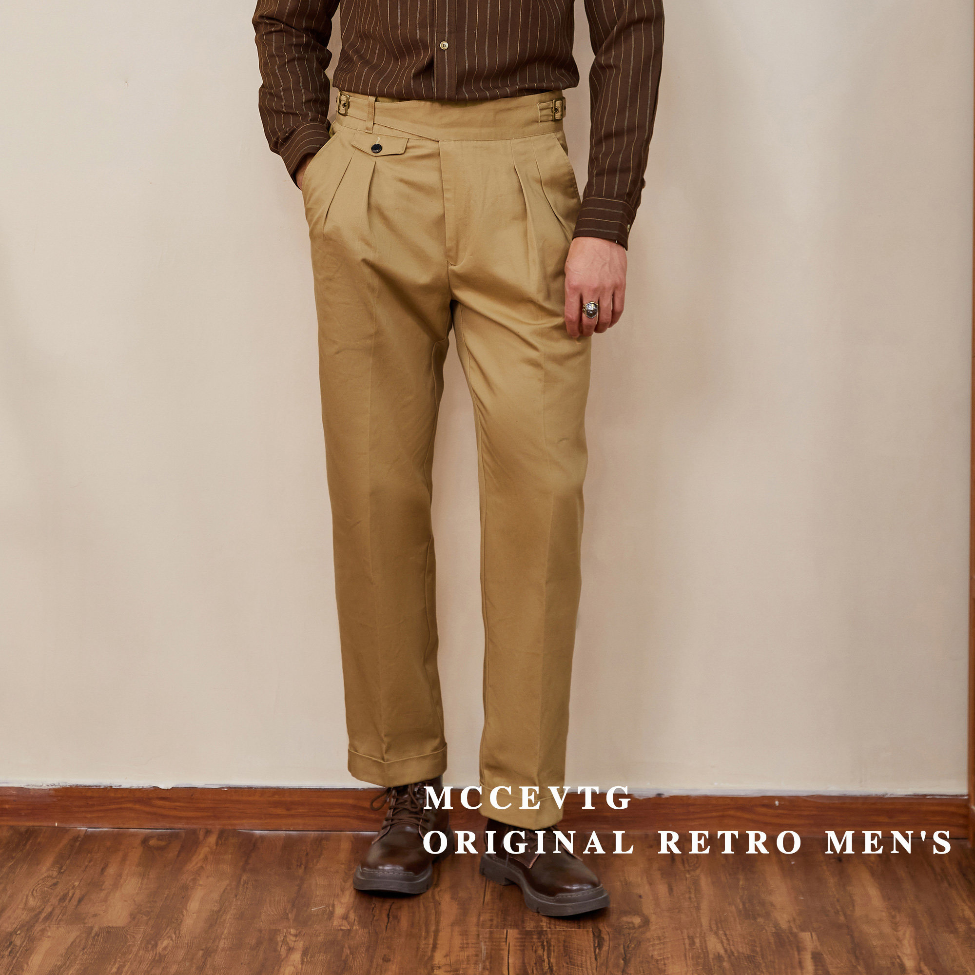 MCCEVTG Ретро хлопковые штаны, высокая талия, свободный прямой крой