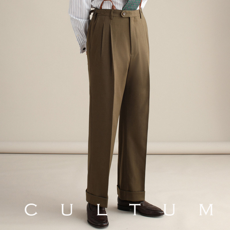 CULTUM 1930-е годы, стиль «старые деньги», ретро, высокая талия, двойные плиссированные брюки, деловые повседневные мужские широкие брюки с рюшами и драпировкой