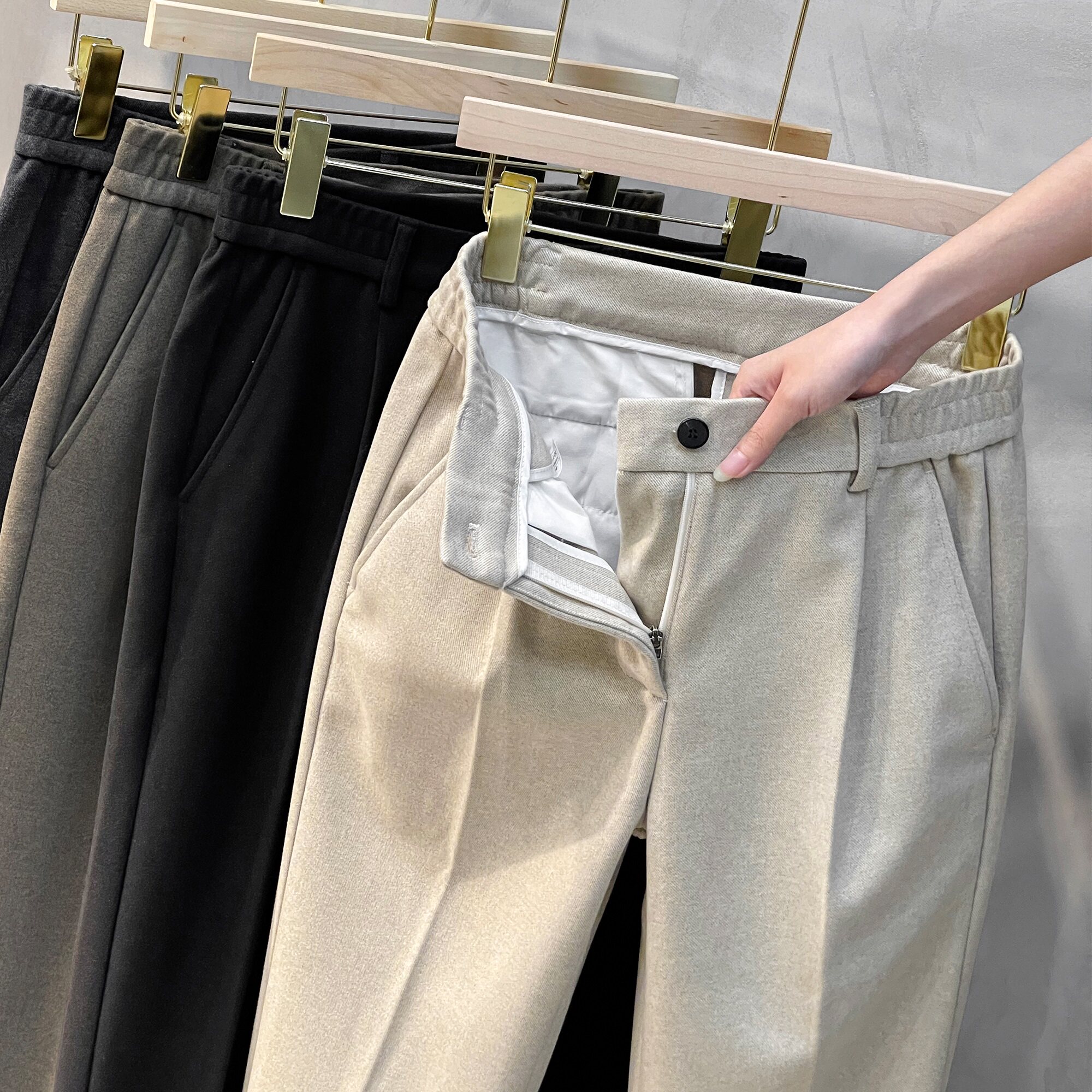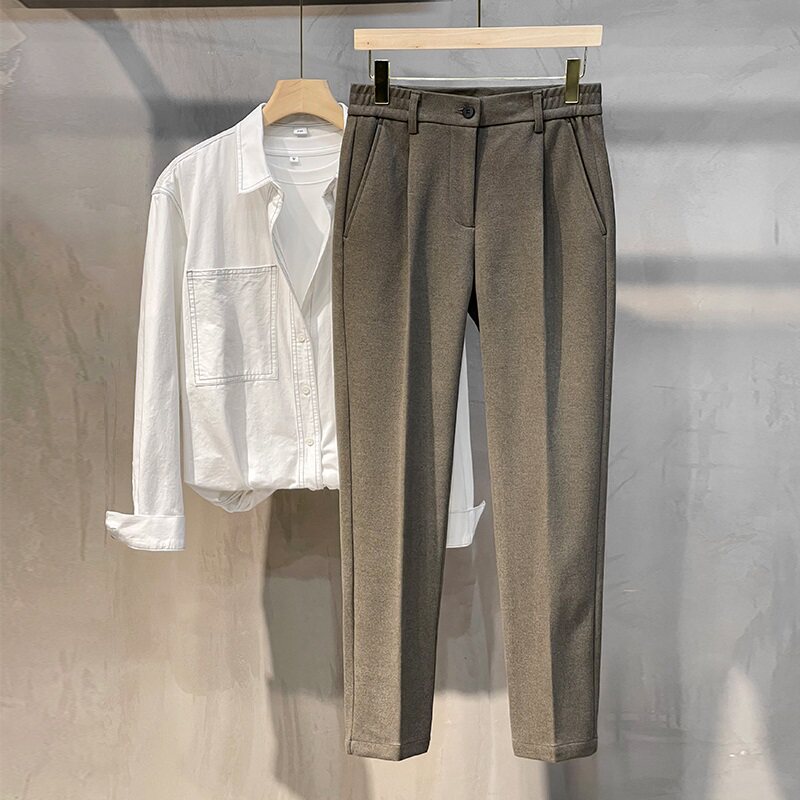 Шерстяные штаны, мужской осенний демисезонный ростомер, свободный прямой крой, изысканный стиль
