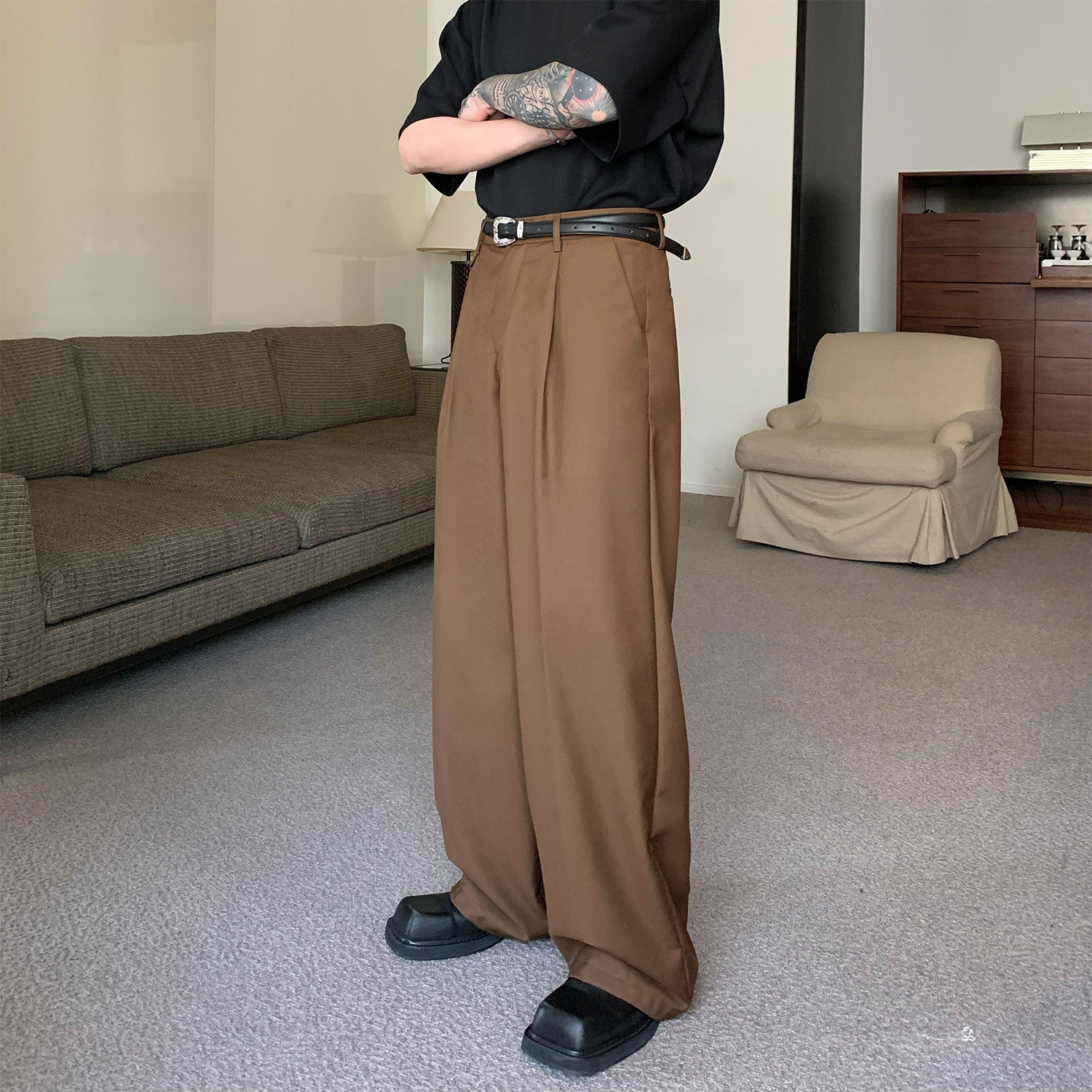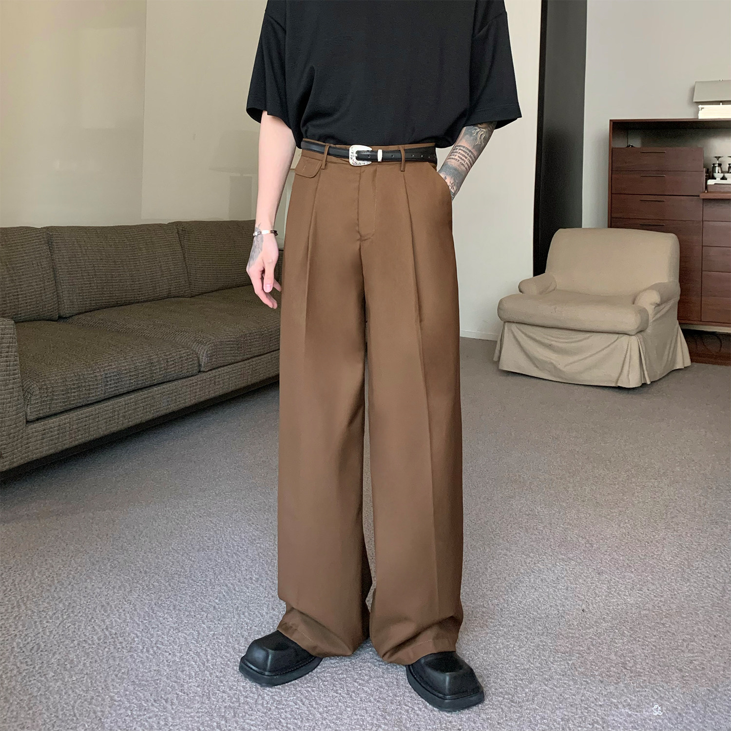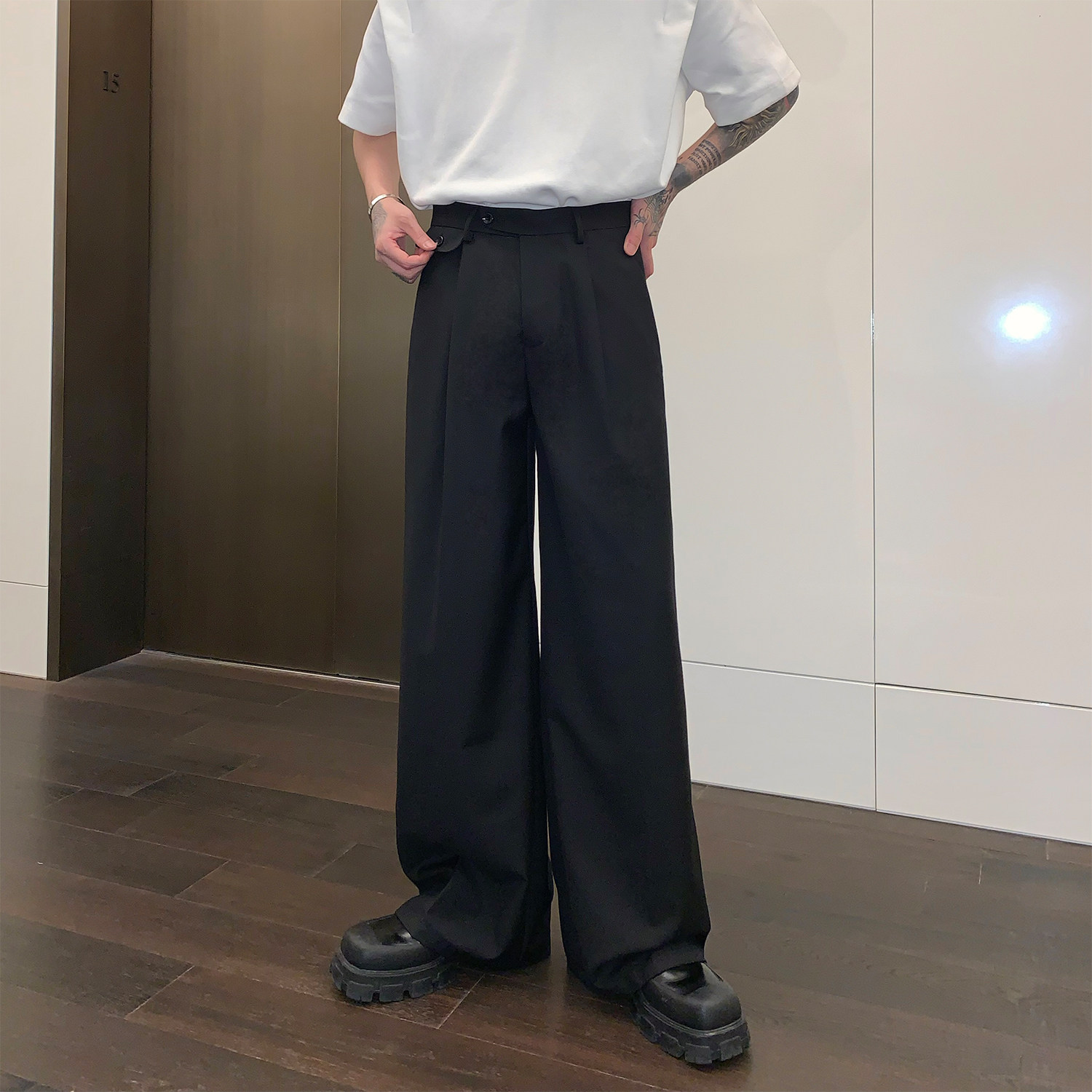 Штаны, в корейском стиле, свободный прямой крой