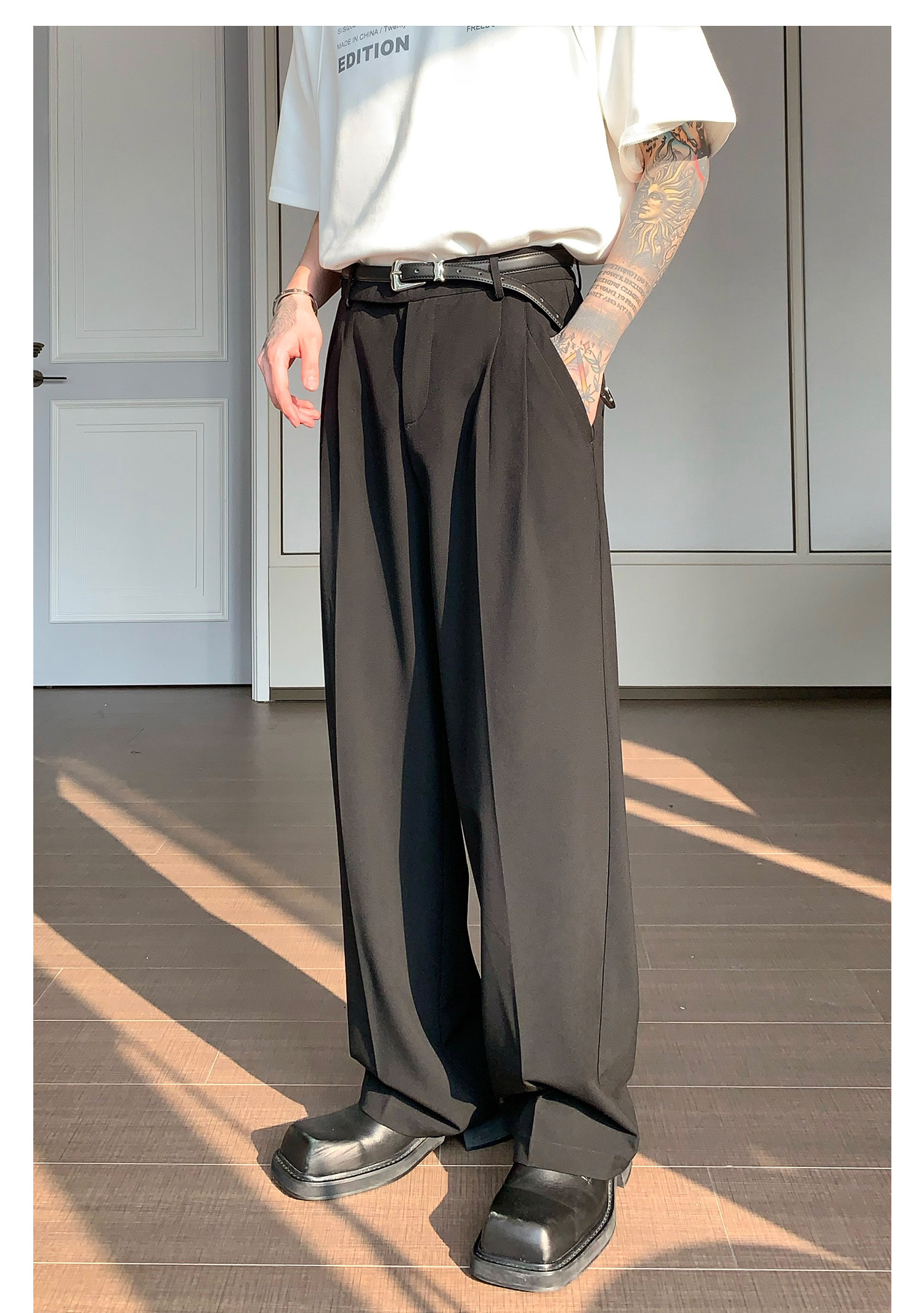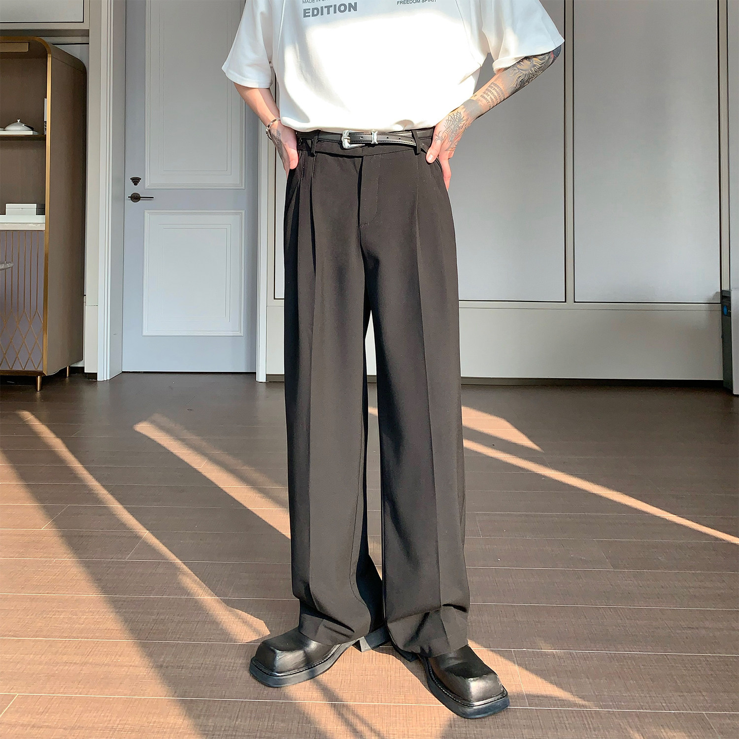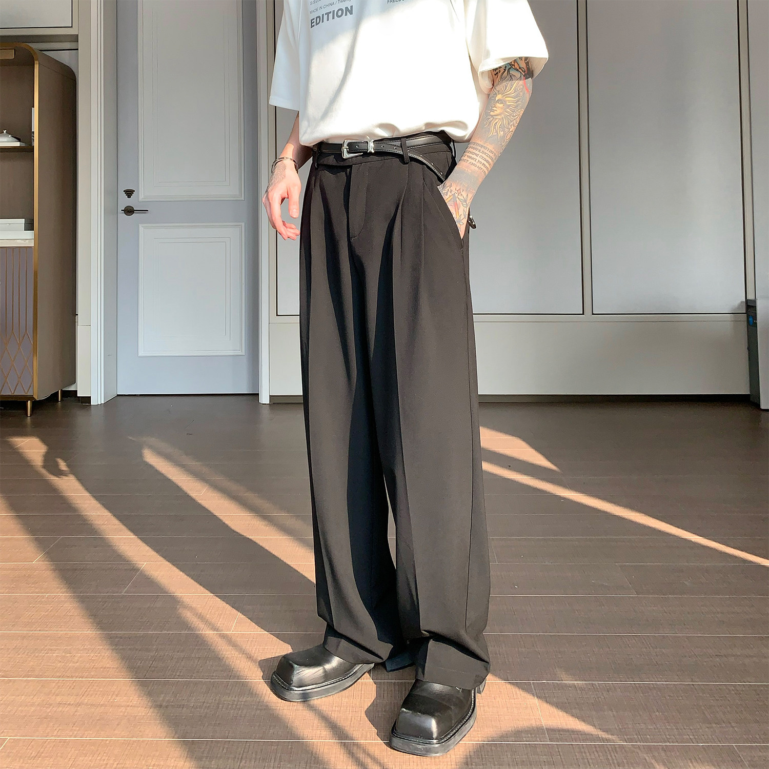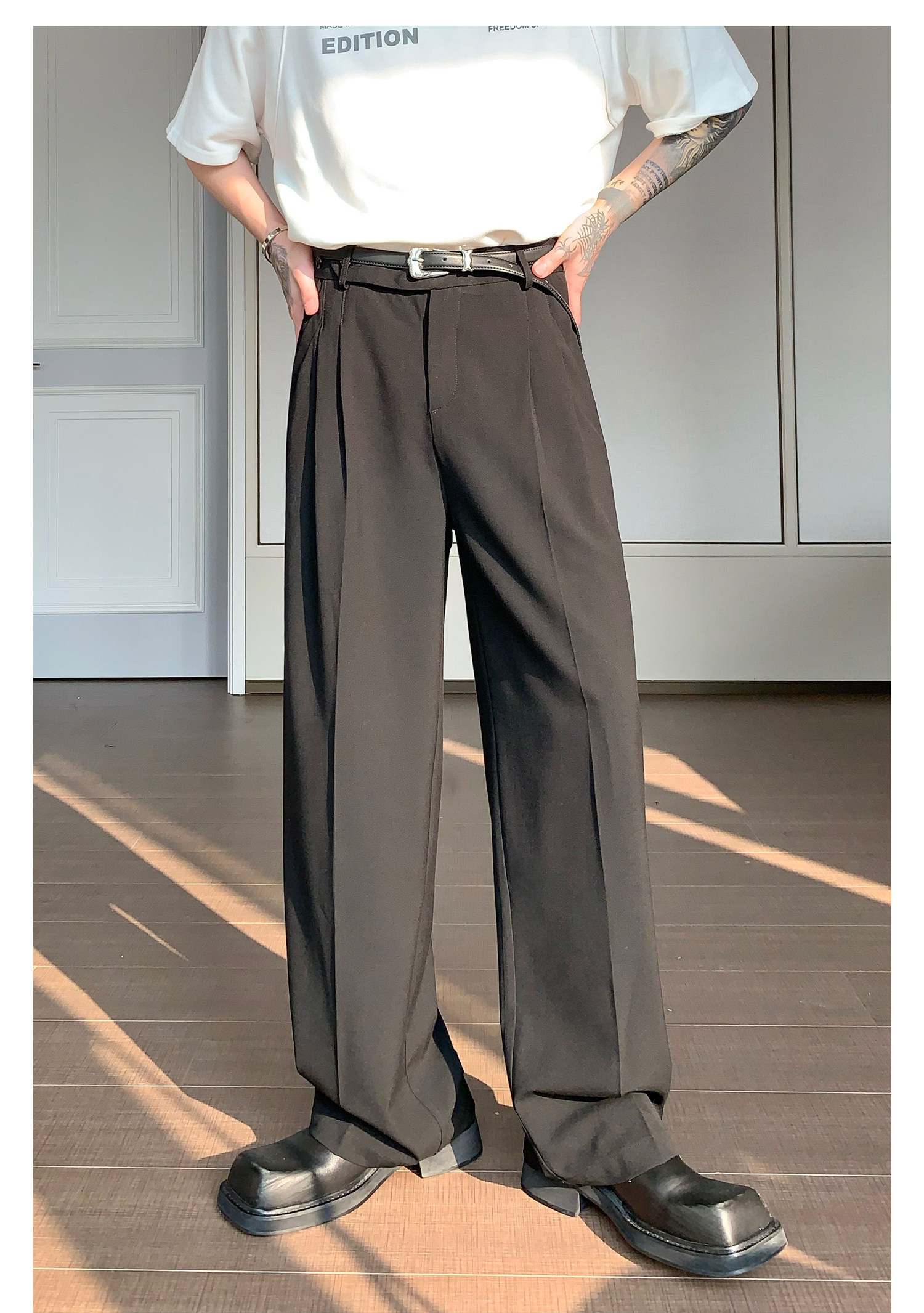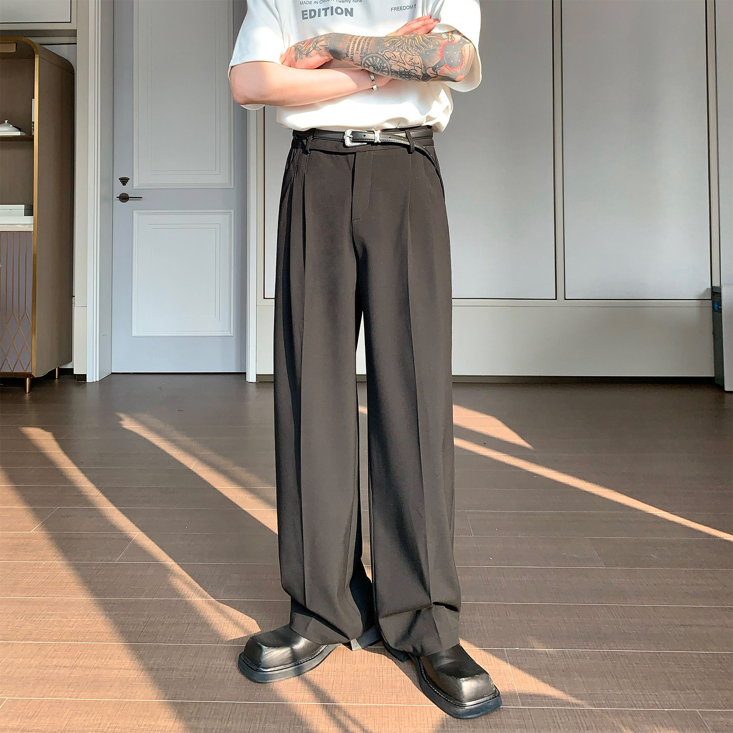 Дизайнерский костюм, штаны, тренд сезона, свободный прямой крой, оверсайз
