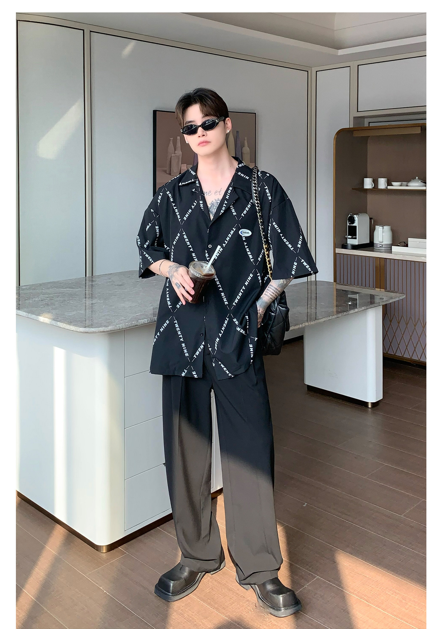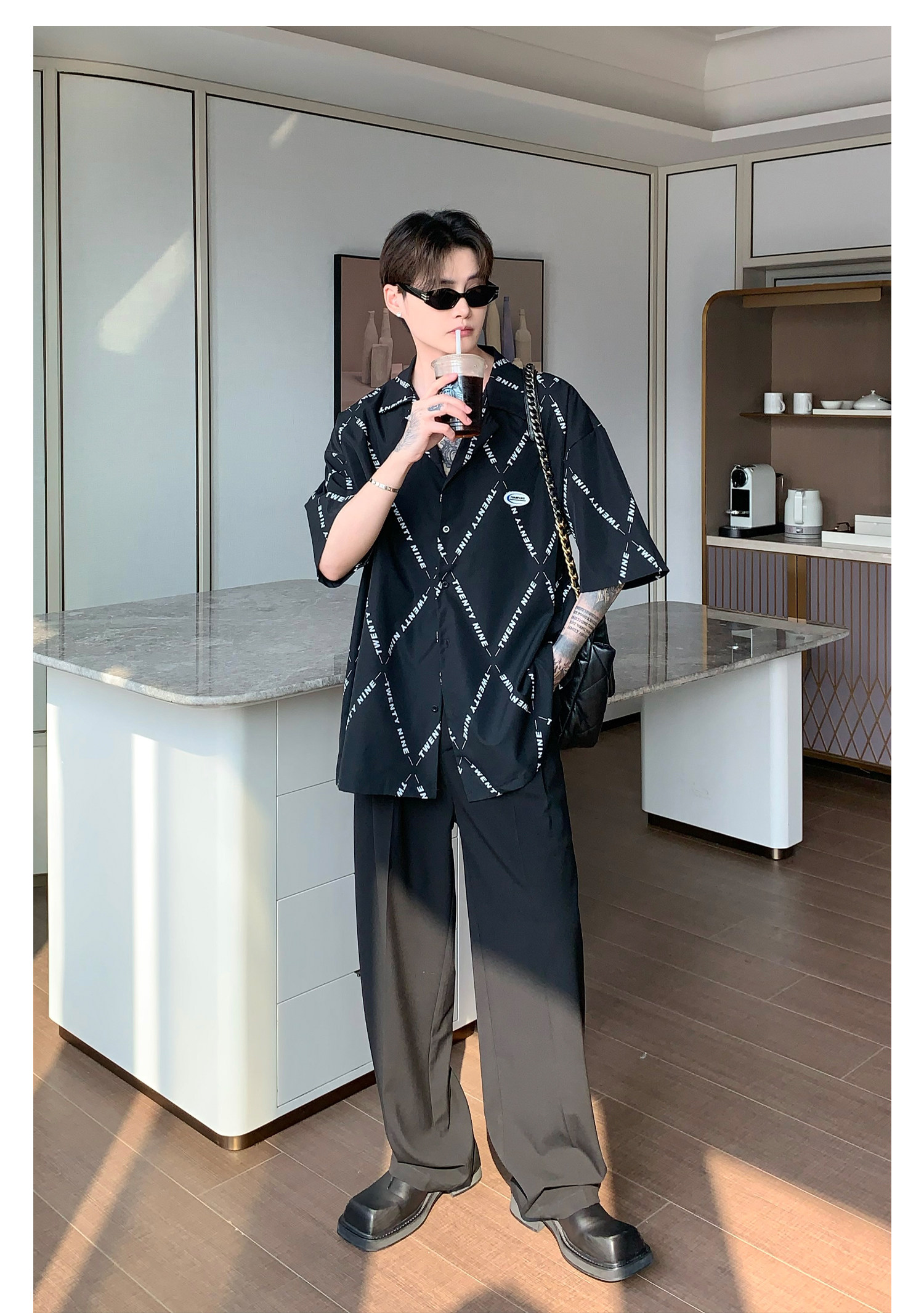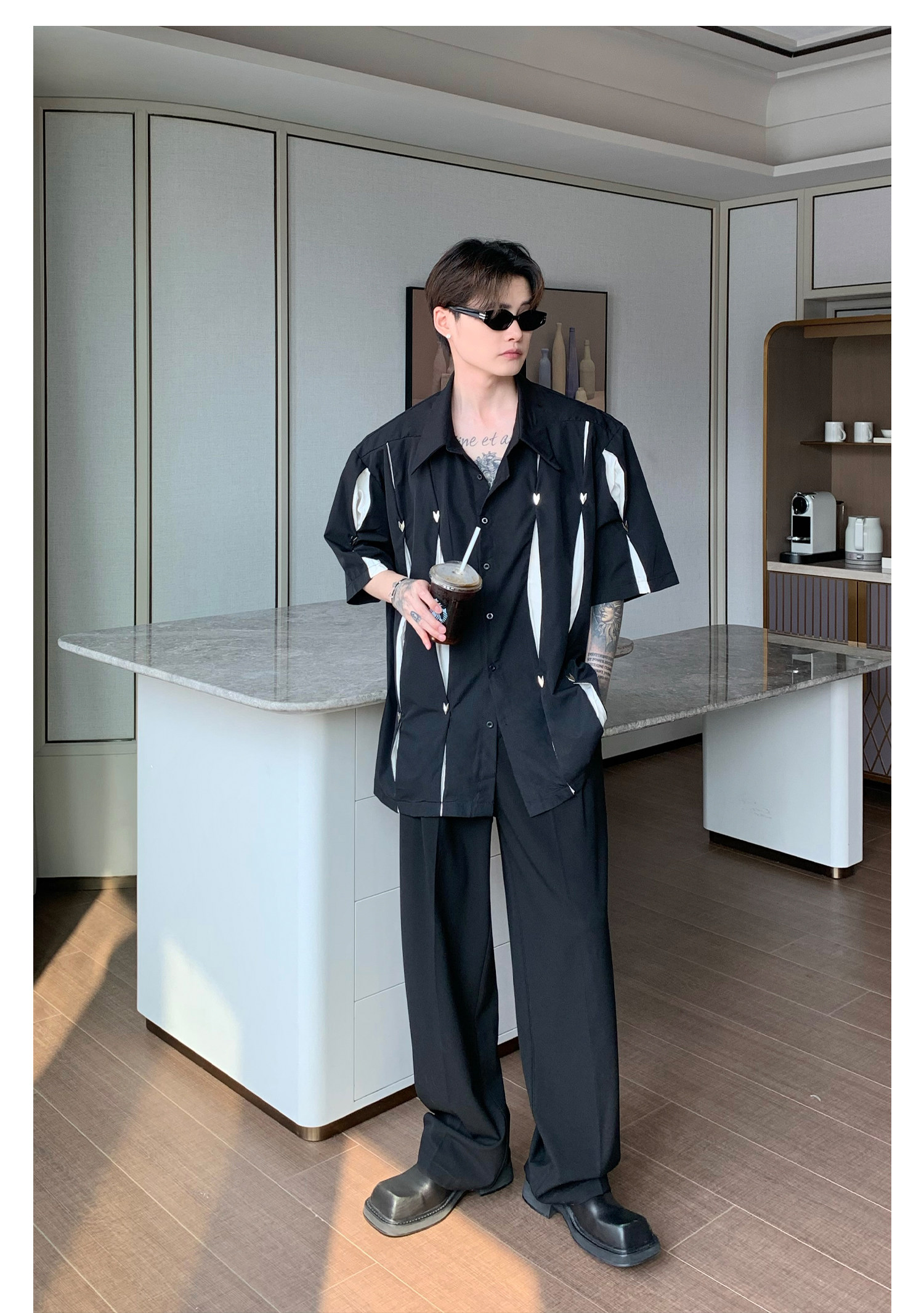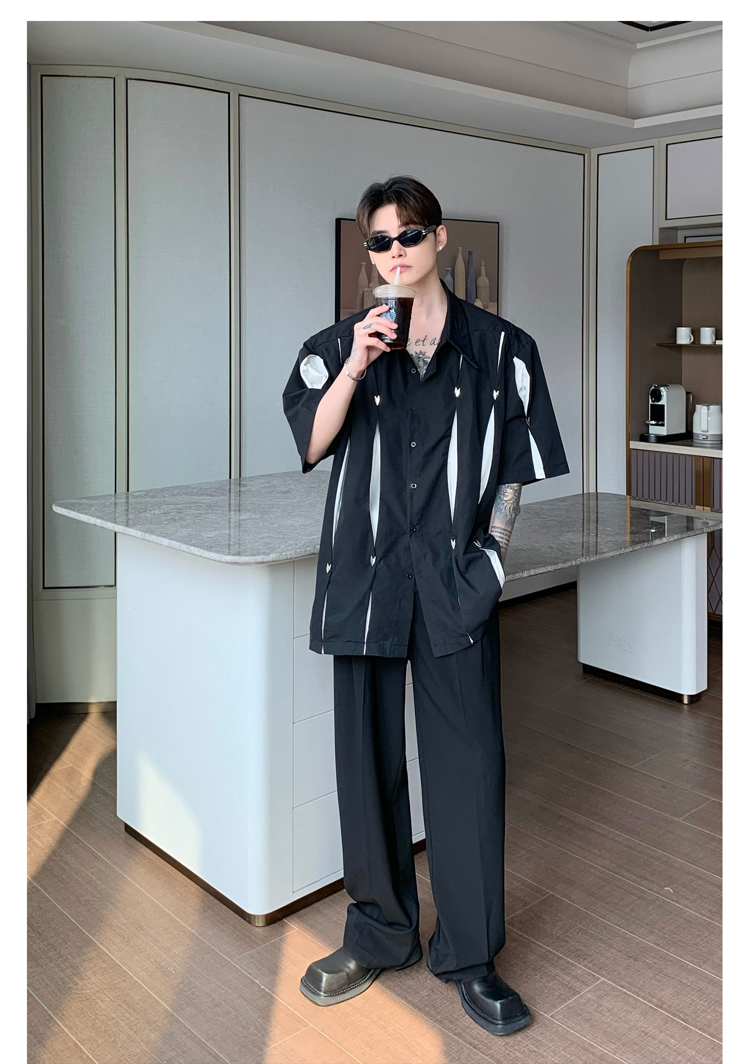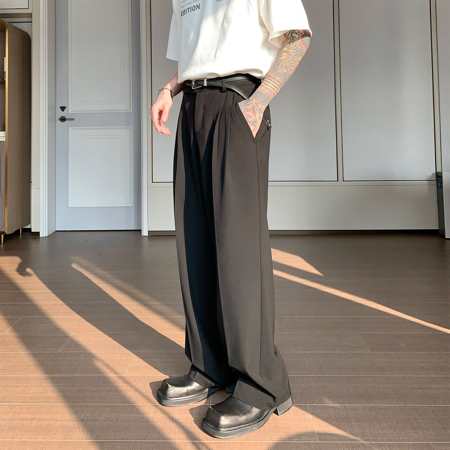 Дизайнерский костюм, штаны, тренд сезона, свободный прямой крой, оверсайз