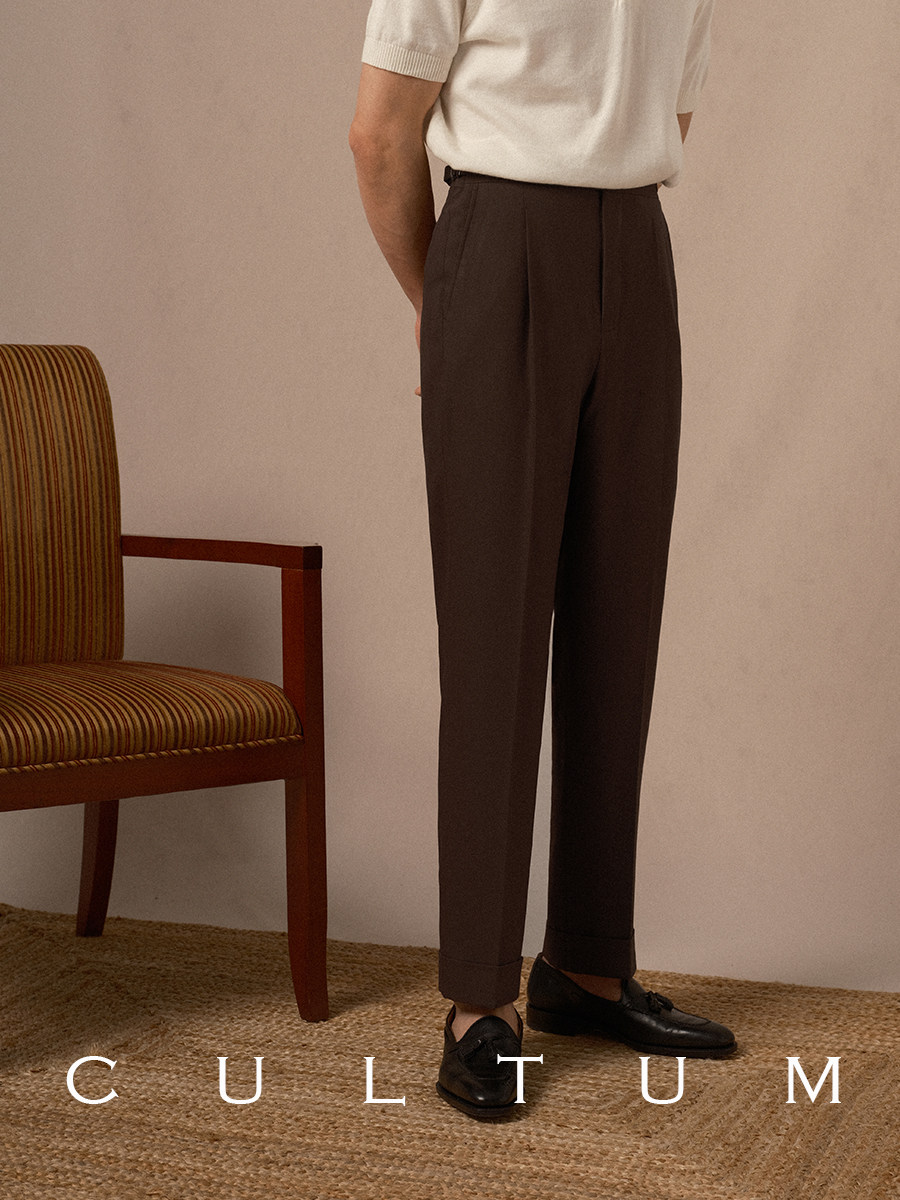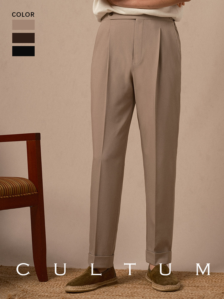 [Прохладное волокно, легкое и дышащее] Итальянские мужские брюки без железа с одной складкой Cultum, повседневные эластичные брюки в деловом стиле