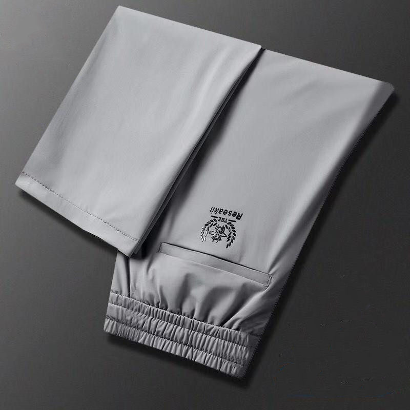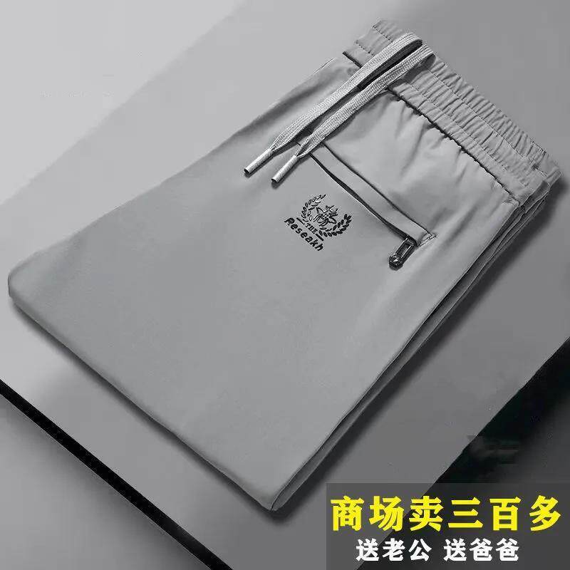 Шелковые летние тонкие приталенные трендовые эластичные спортивные штаны, свободный прямой крой, в корейском стиле, большой размер