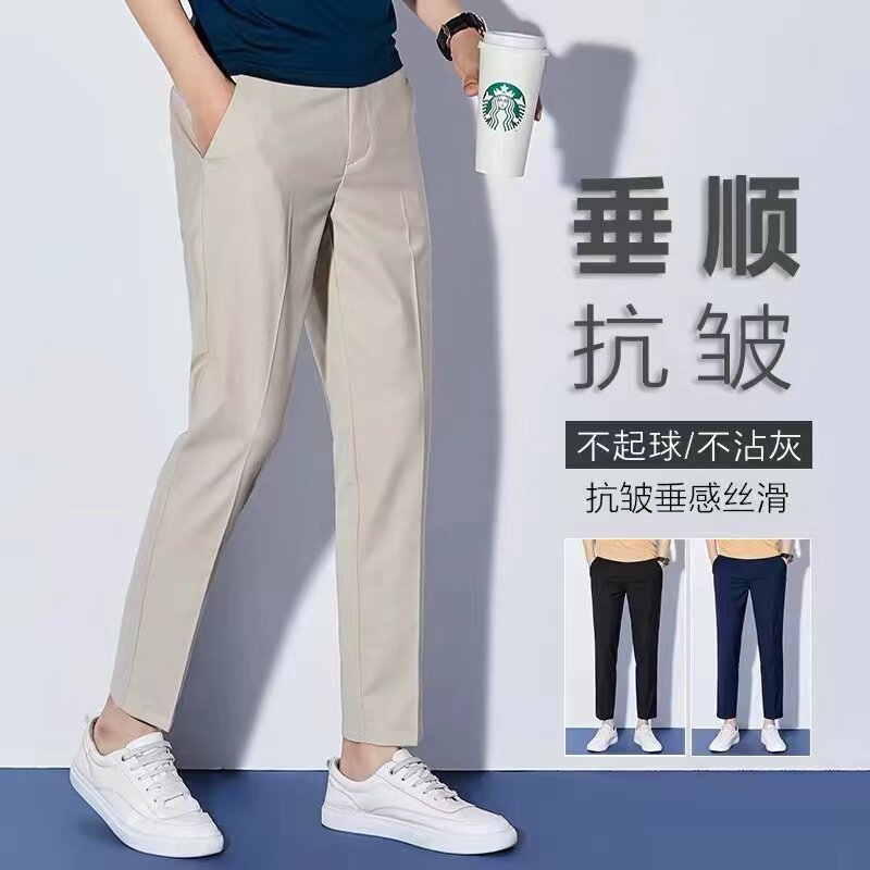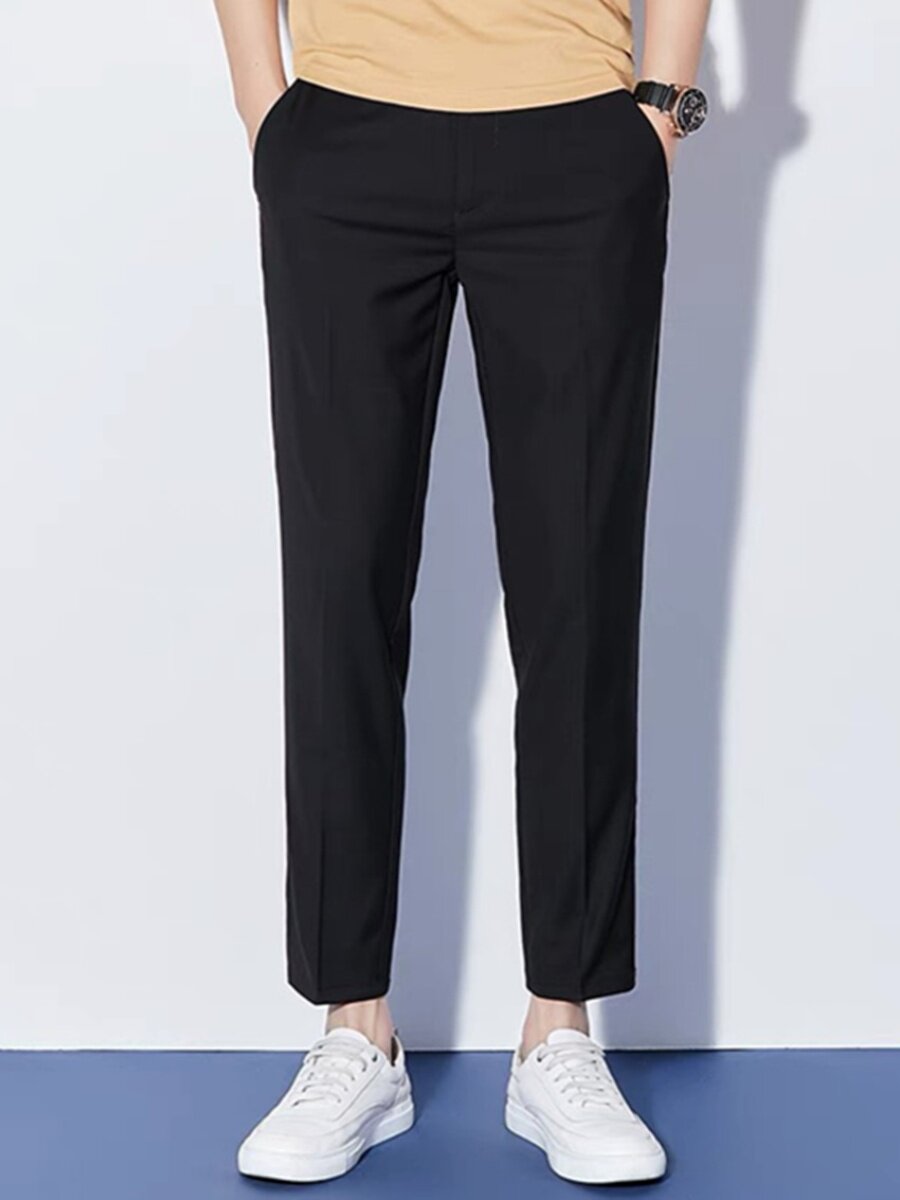 Летние тонкие приталенные трендовые шелковые штаны, свободный прямой крой