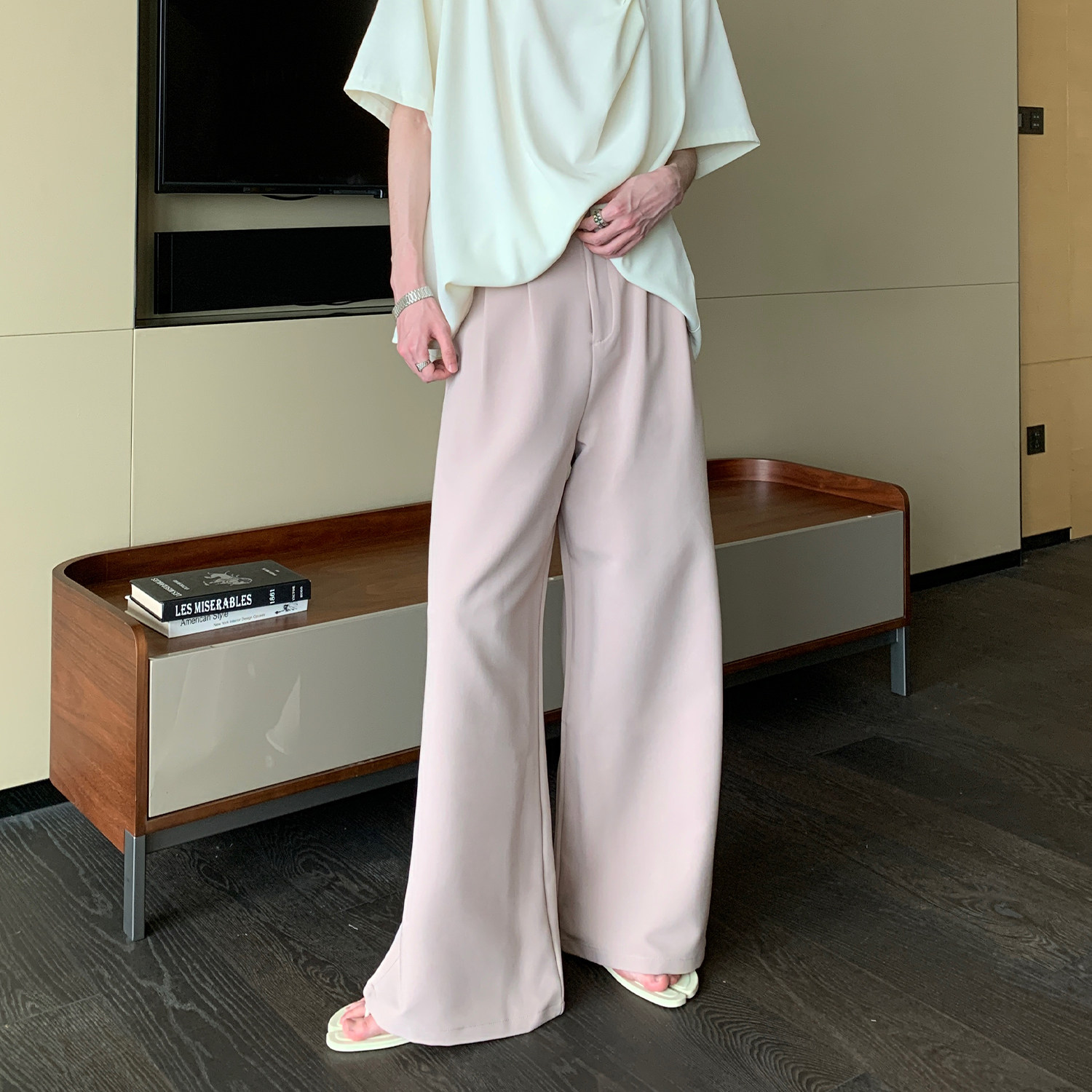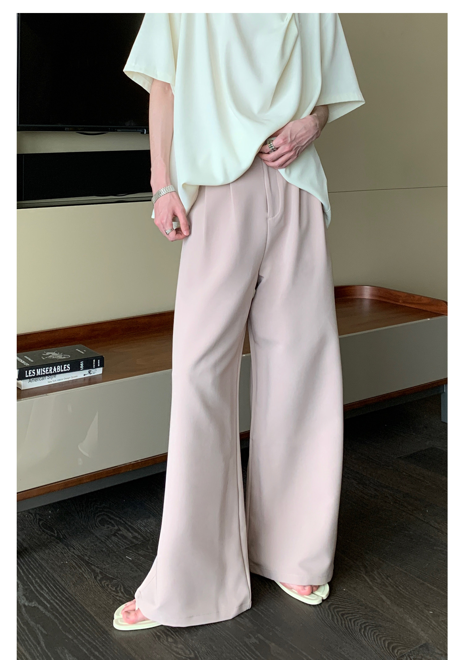 Дизайнерские однотонные повседневные брюки, штаны, в корейском стиле, высокая талия