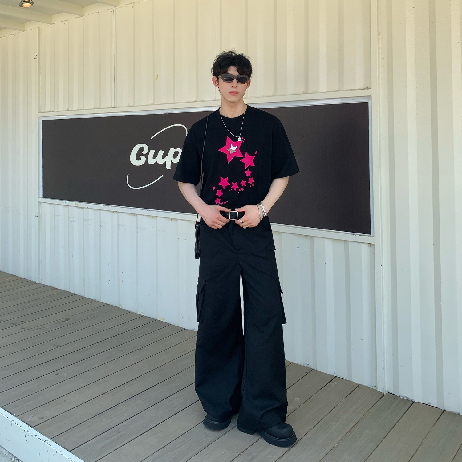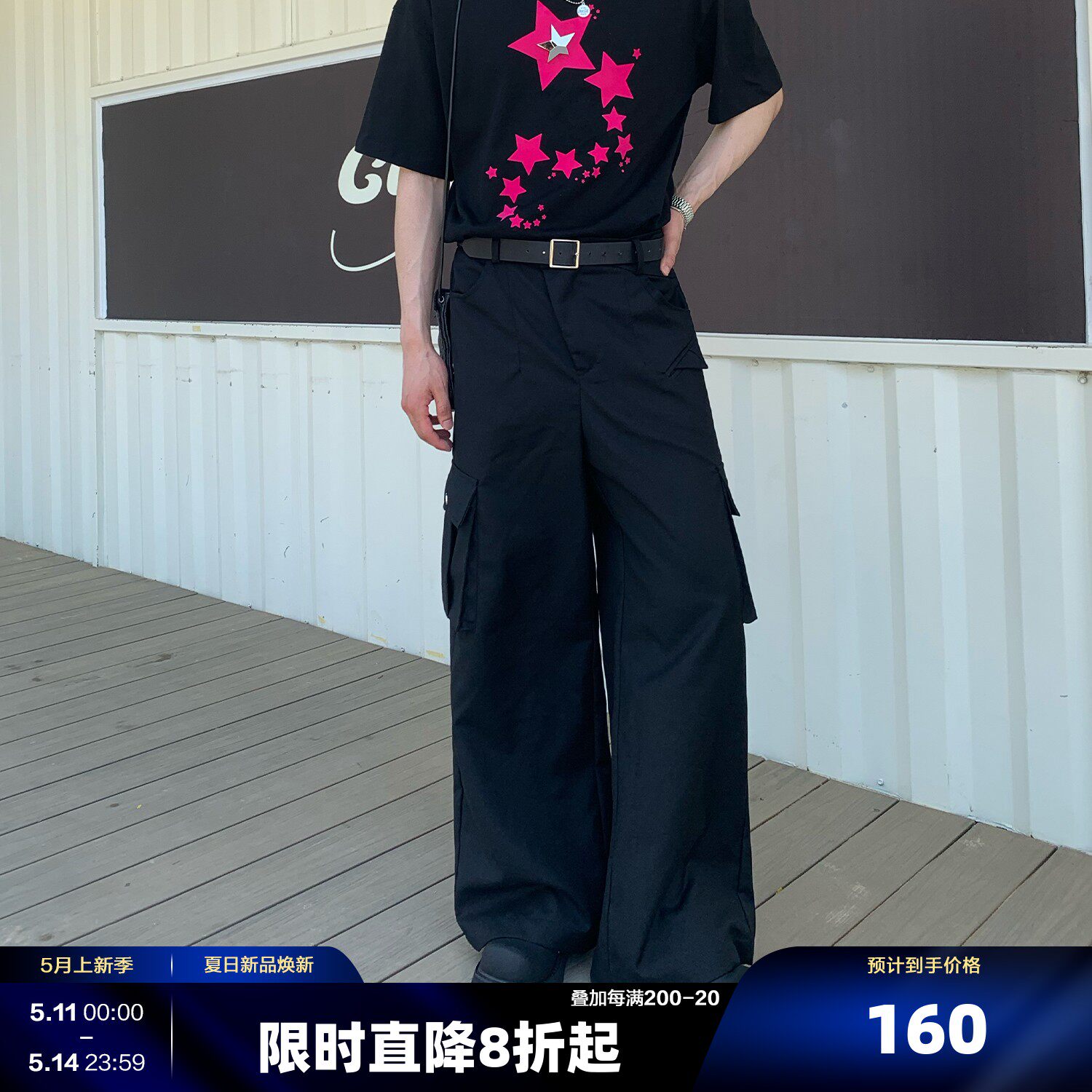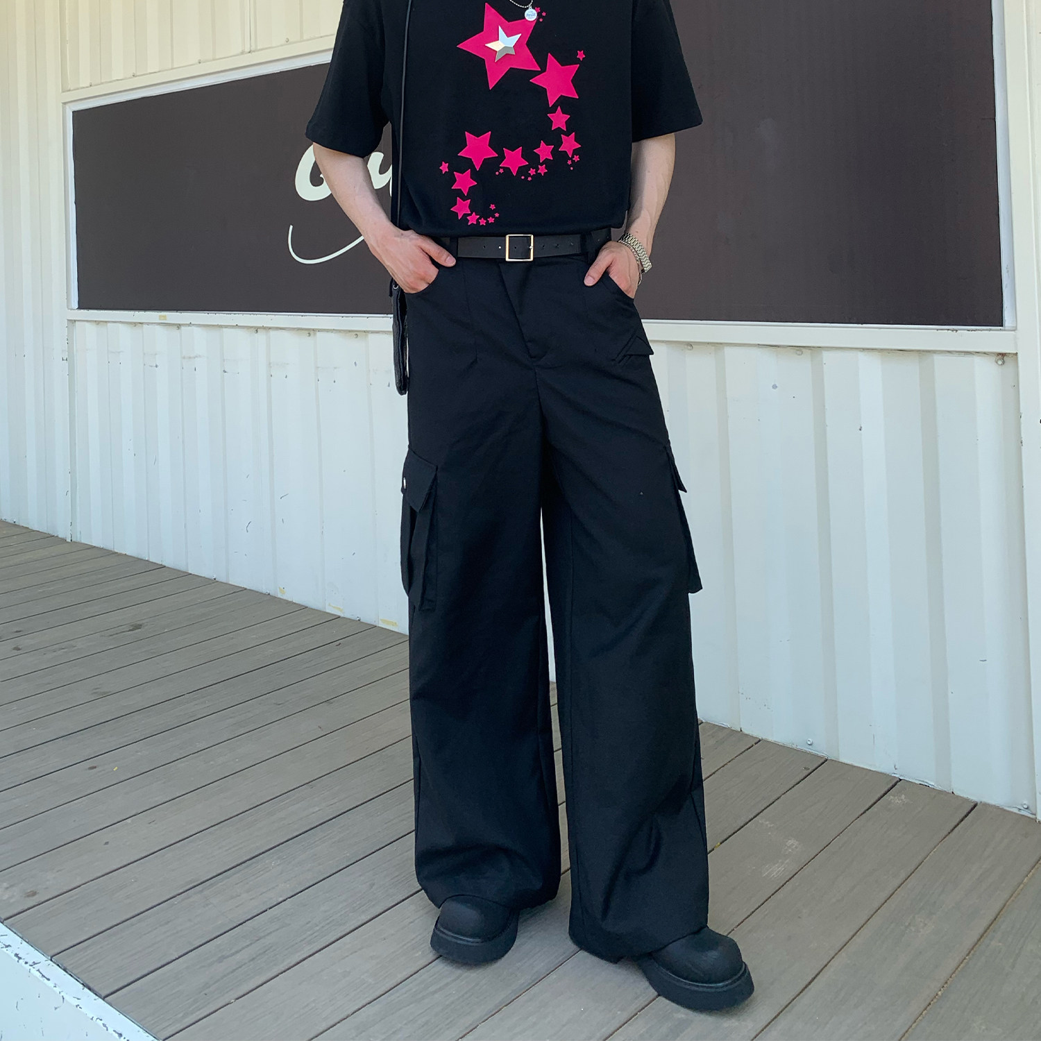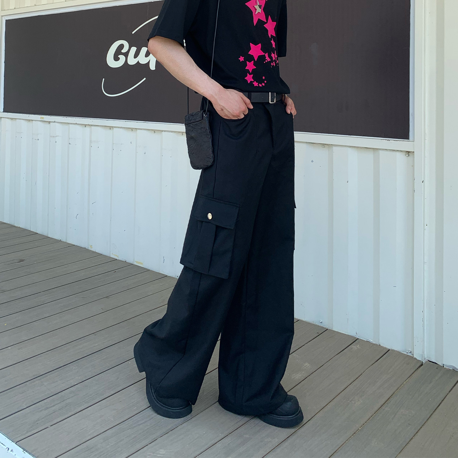 Cuibuju Tide Brand Простые большие карманные брюки с прямыми брюками, красивые бомбардировки улицы дикие случайные брюки Мужчины