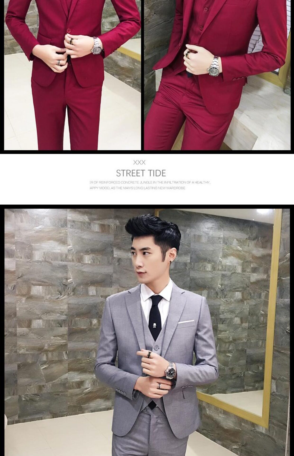 | Цвет: | Светло -серый (костюм+брюки), Черный (костюм+брюки), Красный (костюм+брюки), Светло -голубой (костюм+брюки), Тибетский синий (костюм+брюки), Морской синий (костюм+брюки), Черные штаны, рубашка, Тибетский синий (костюм+брюки+рубашка), Черные штаны, жилет, Тибетский синий (костюм+брюки+жилет), Черные штаны, жилет, рубашка, галстук |