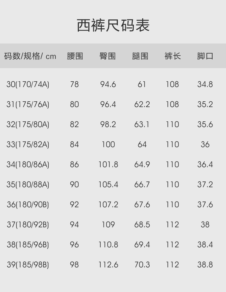 | Размер: | 46 (165/84a), 46 (165/88b), 48 (170/88а), 48 (170/92B), 50 (175/92а), 50 (175/96B), 52 (180/96a), 52 (180/100b), 54 (185/100a), 54 (185/104b), Поддерживает бесплатную модификацию размера, для получения подробной информации свяжитесь со службой поддержки клиентов., Сфотографируйте и оставьте заметку или оставьте сообщение о размере брюк., 44 (160/80a), 56 (190/104a) |