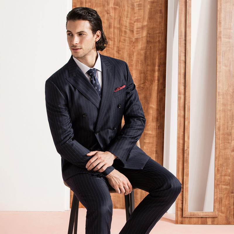 McGereyen Double -Crisched Wool Cust костюм мужская тибетская вертикальная полоса жених свадебное платье