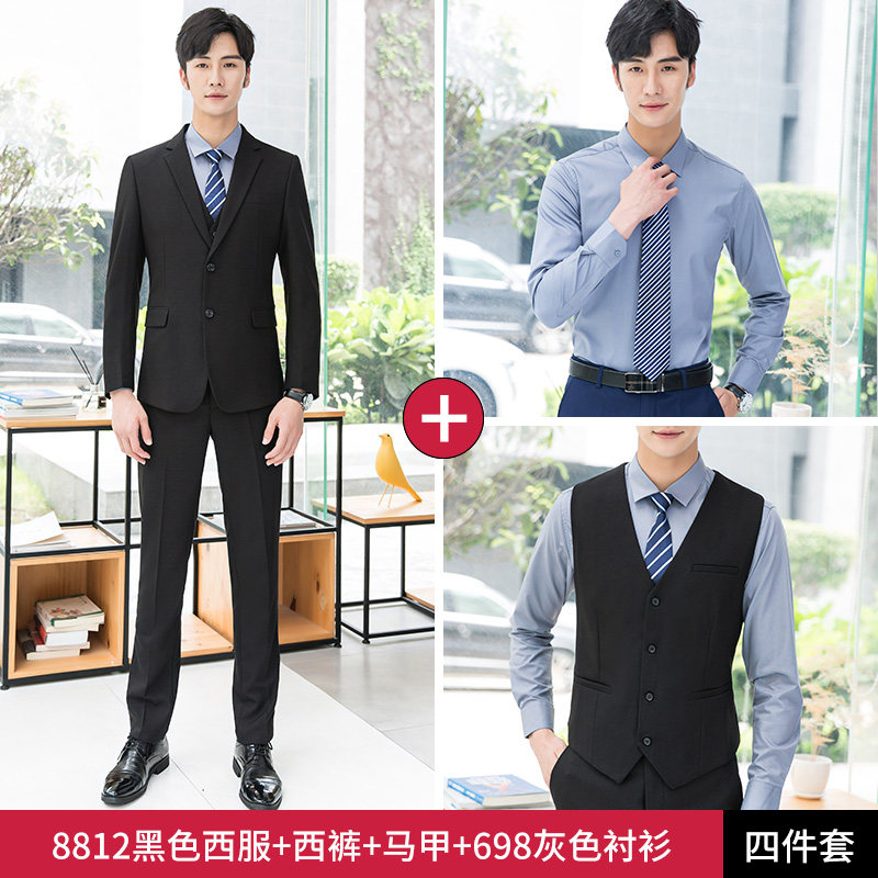 Мужской комплект, пиджак классического кроя, свадебное платье, 3 предмета, в корейском стиле