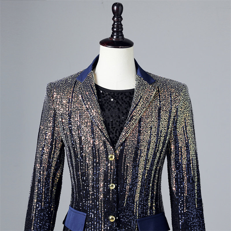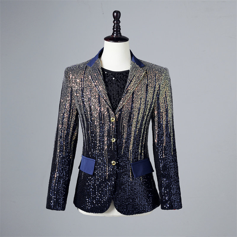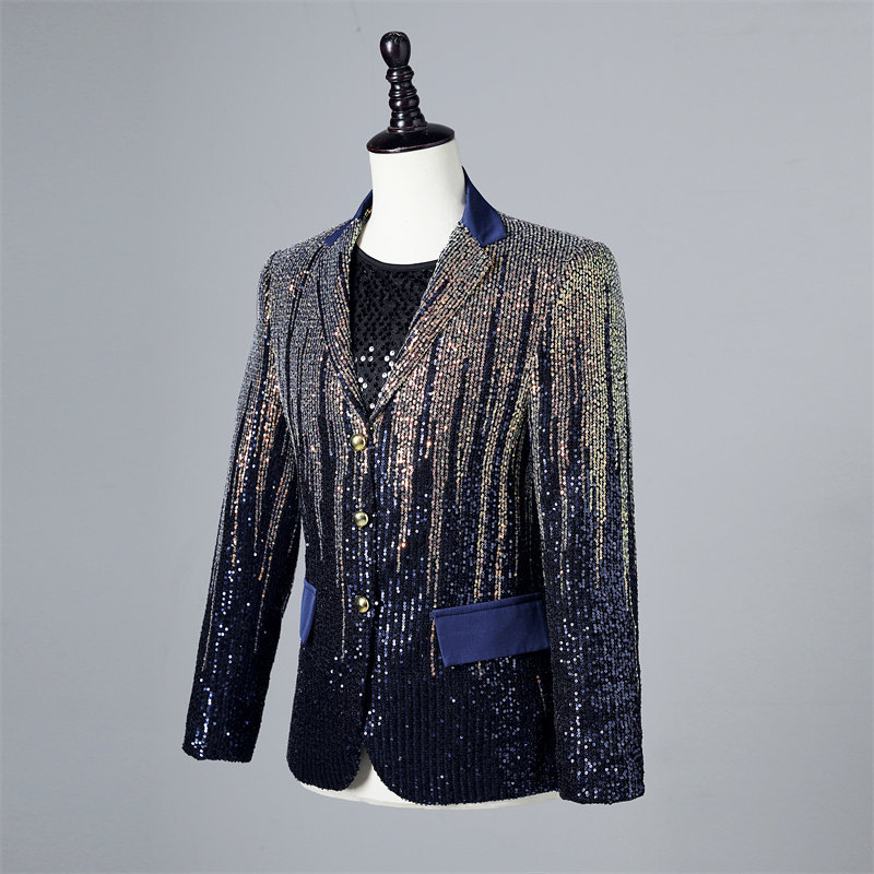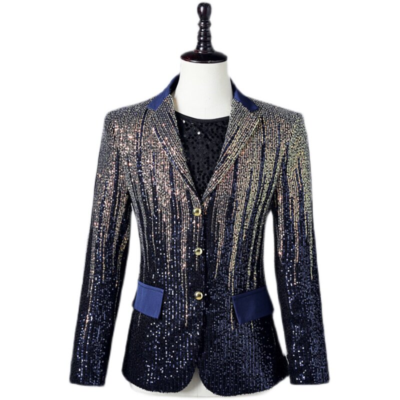 Красочный градиентный пиджак с пайетками, мужской сценический модный блестящий подиумный повседневный костюм для выступления певицы