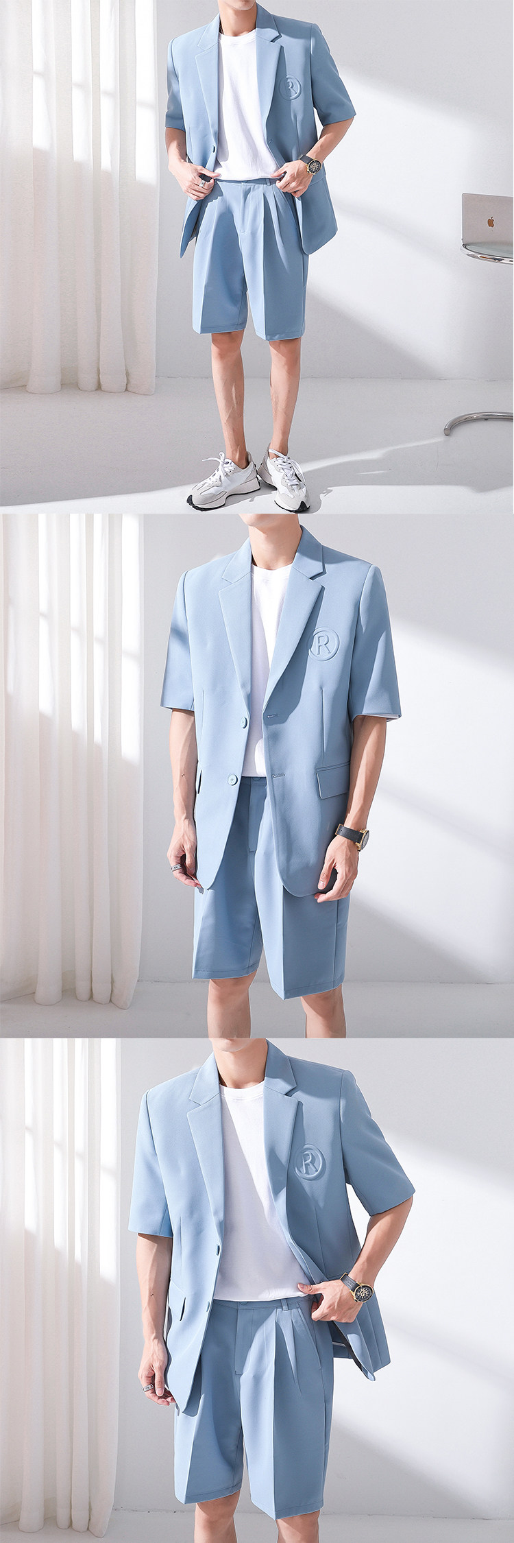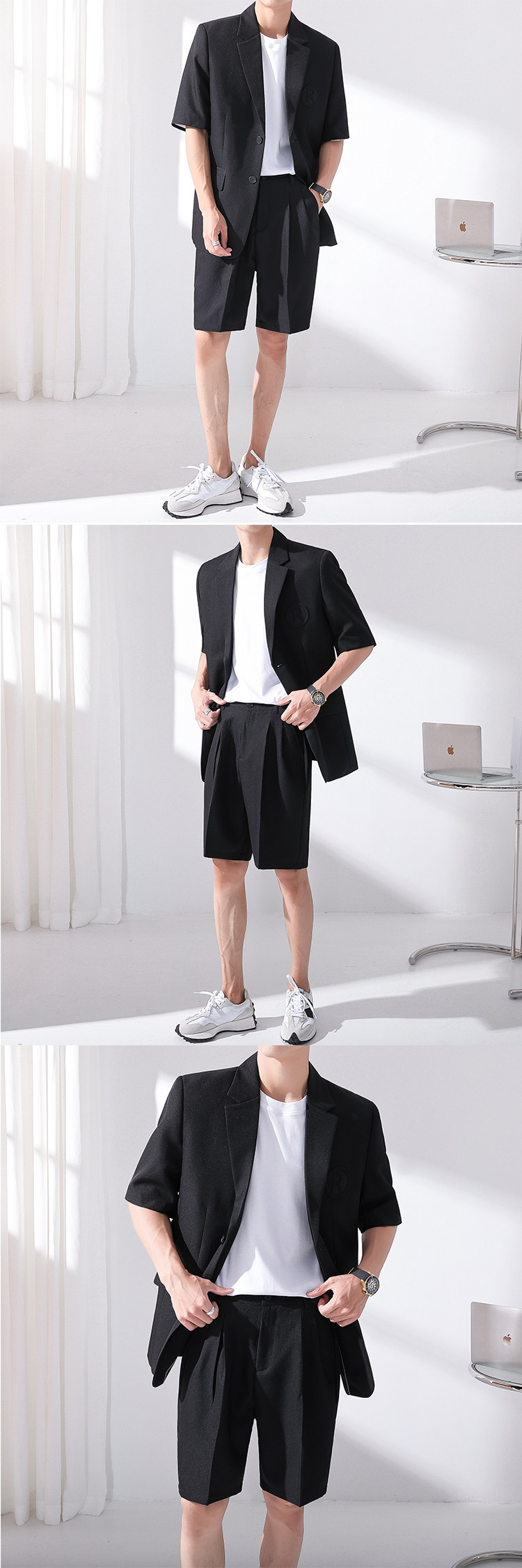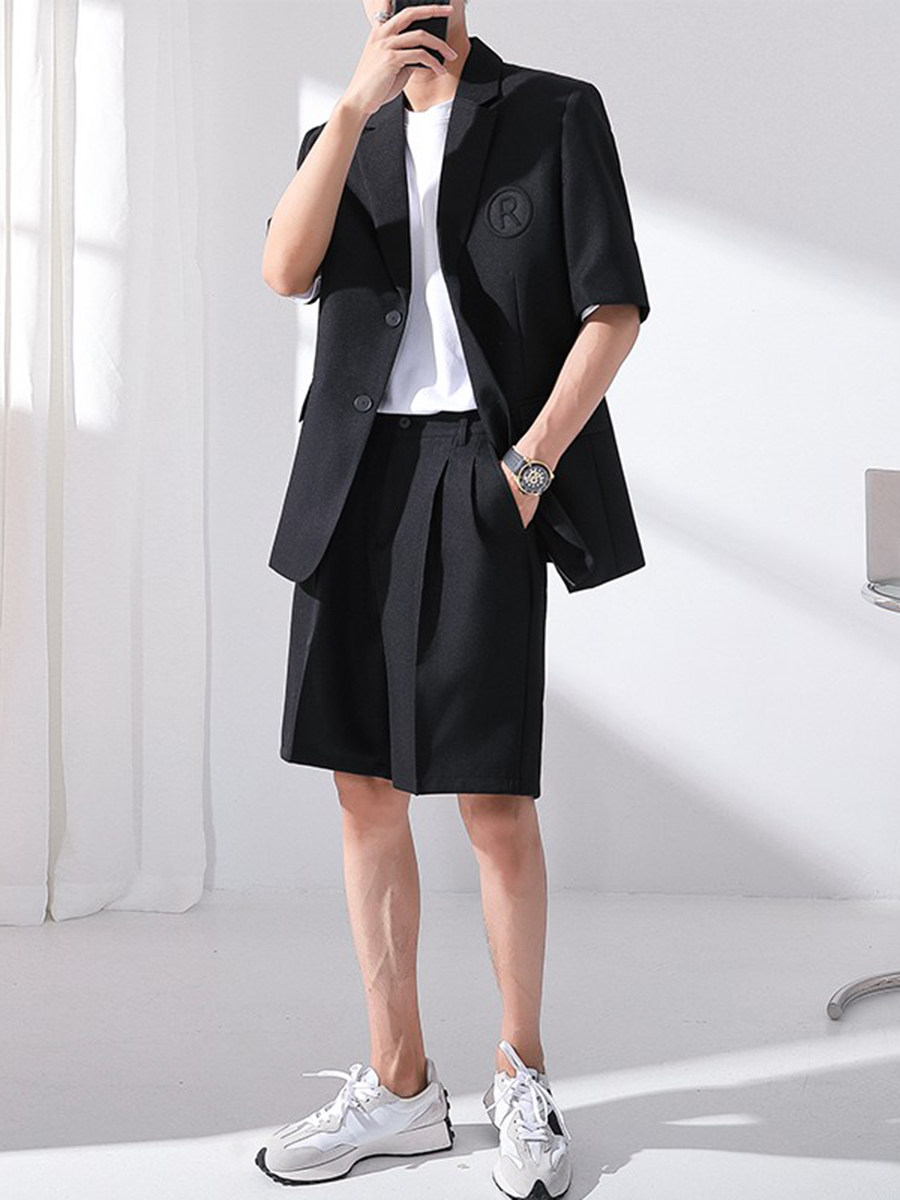 Летний комплект, тонкий пиджак классического кроя, костюм, штаны, шорты, короткий рукав