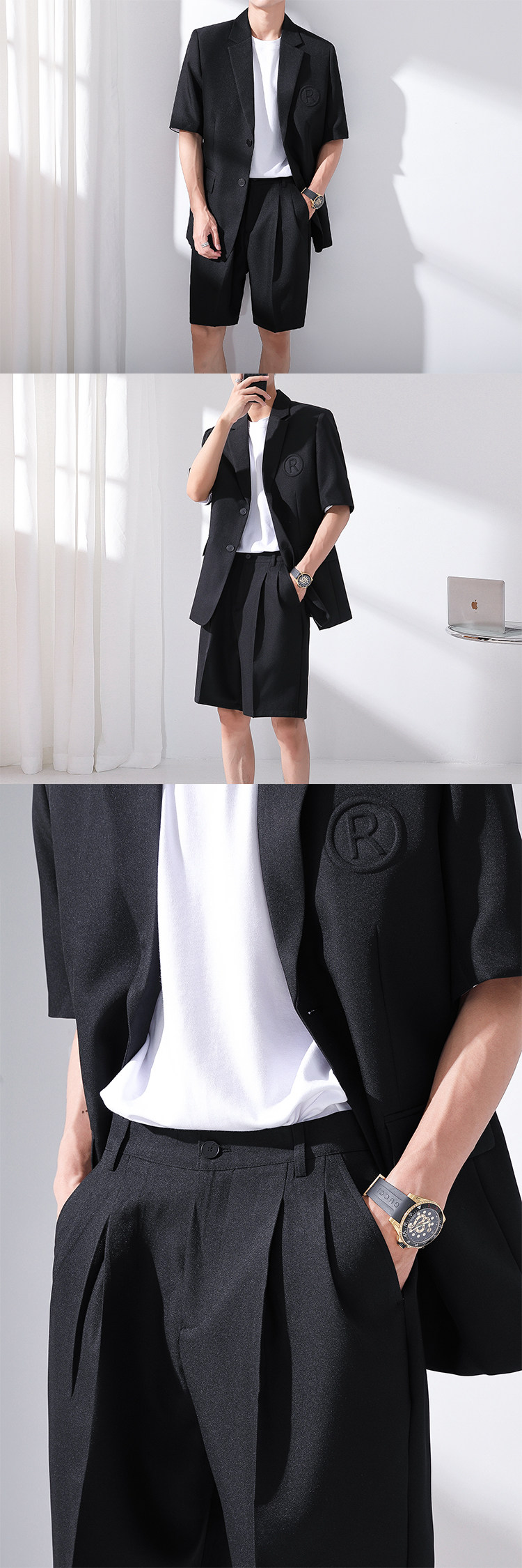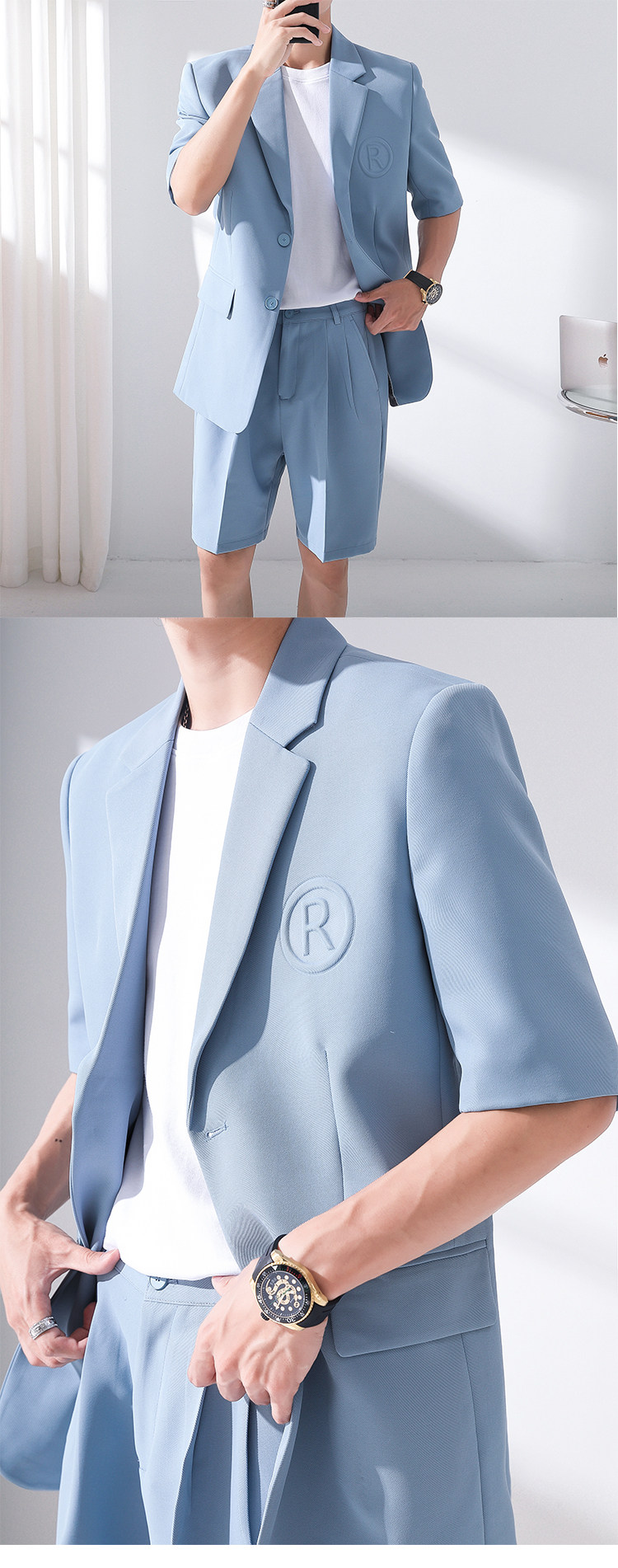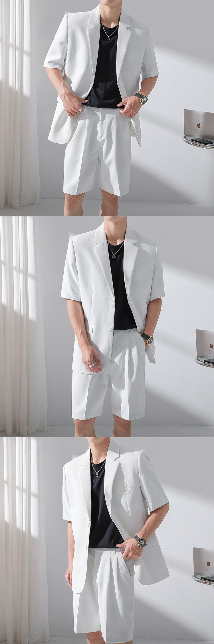Летний комплект, тонкий пиджак классического кроя, костюм, штаны, шорты, короткий рукав