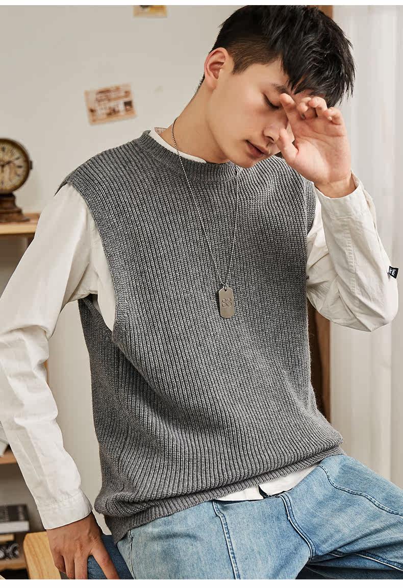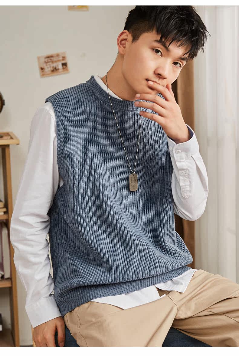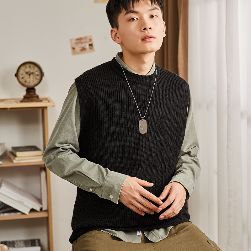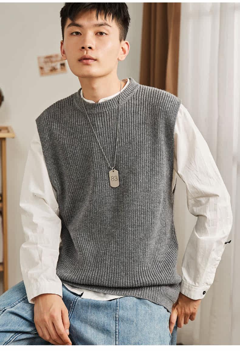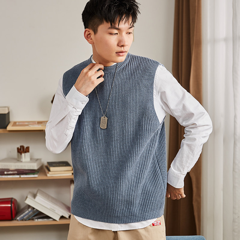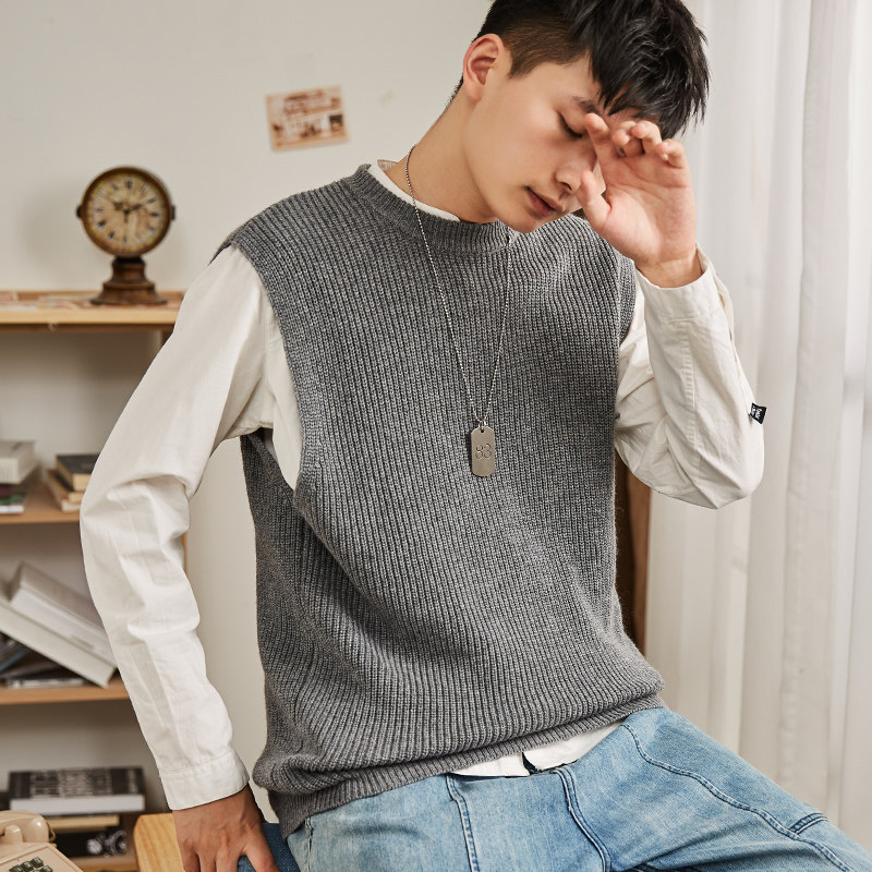 Демисезонный свитер, трикотажный ретро базовый приятный телу жилет для школьников и студентов с круглым воротником без рукавов