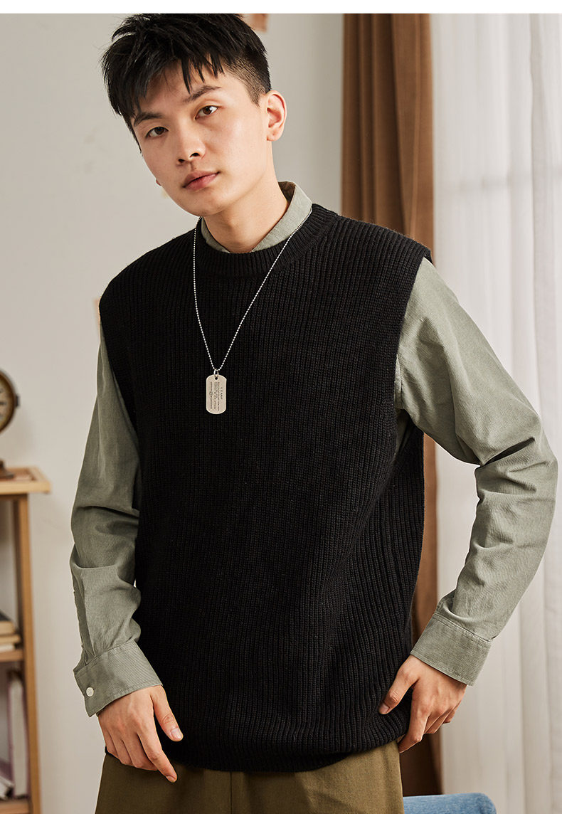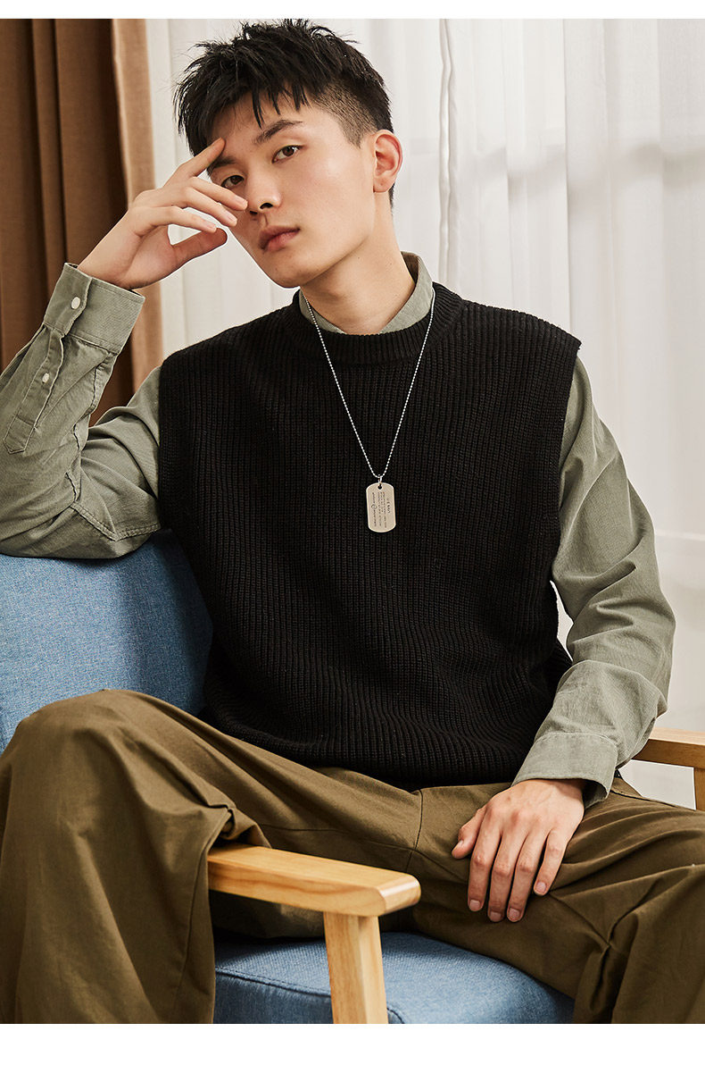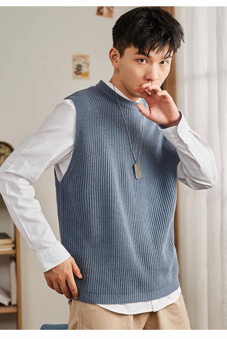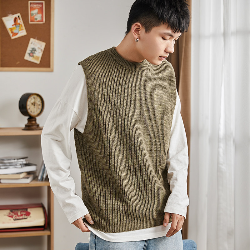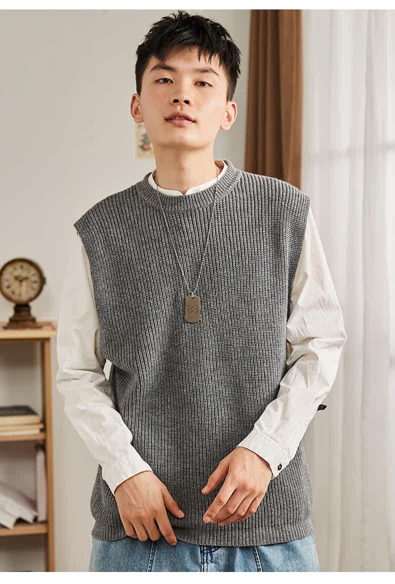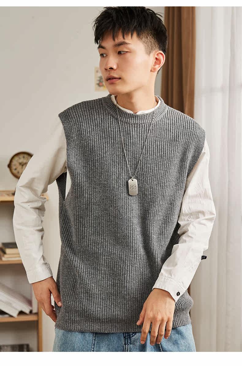 Демисезонный свитер, трикотажный ретро базовый приятный телу жилет для школьников и студентов с круглым воротником без рукавов