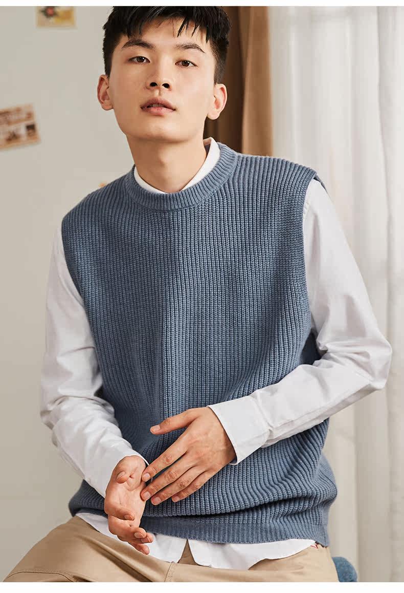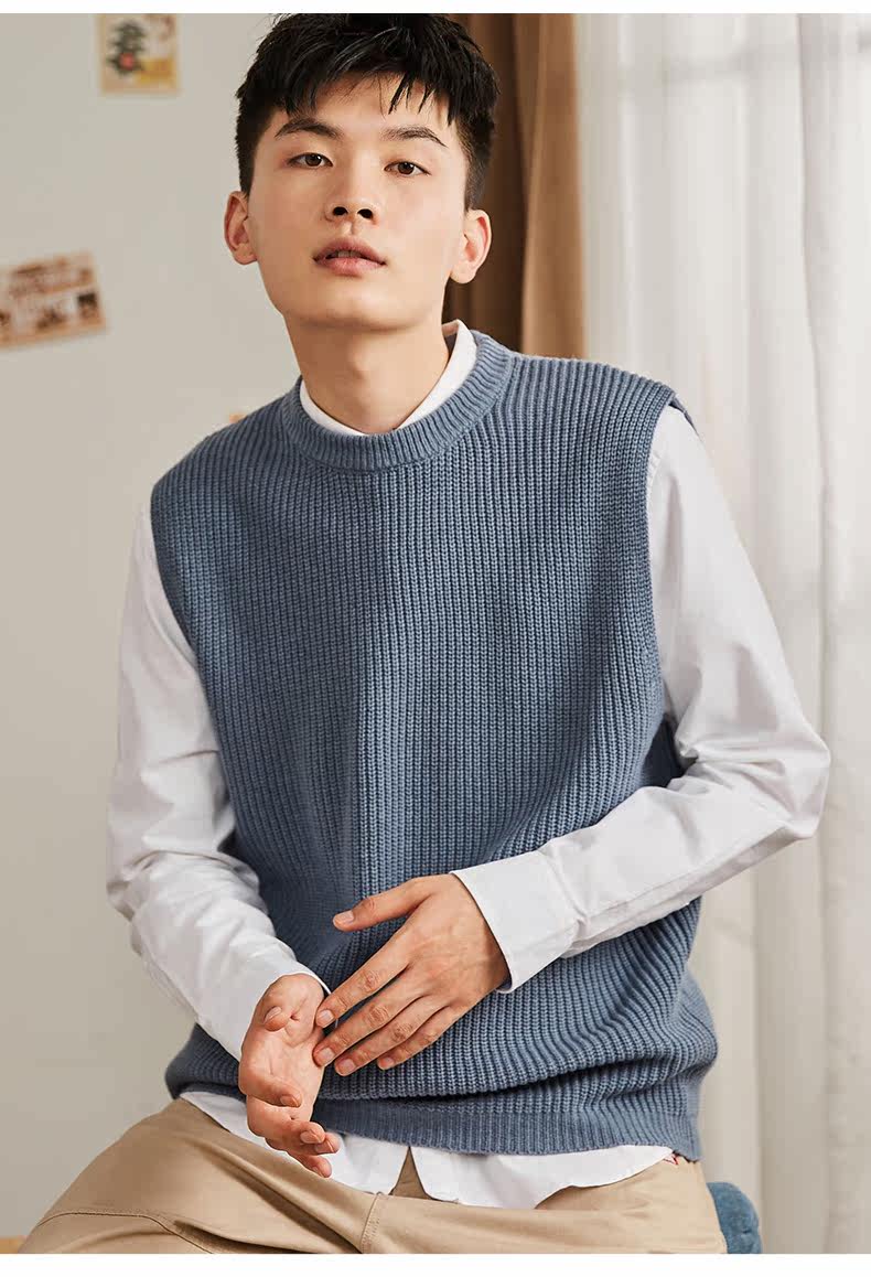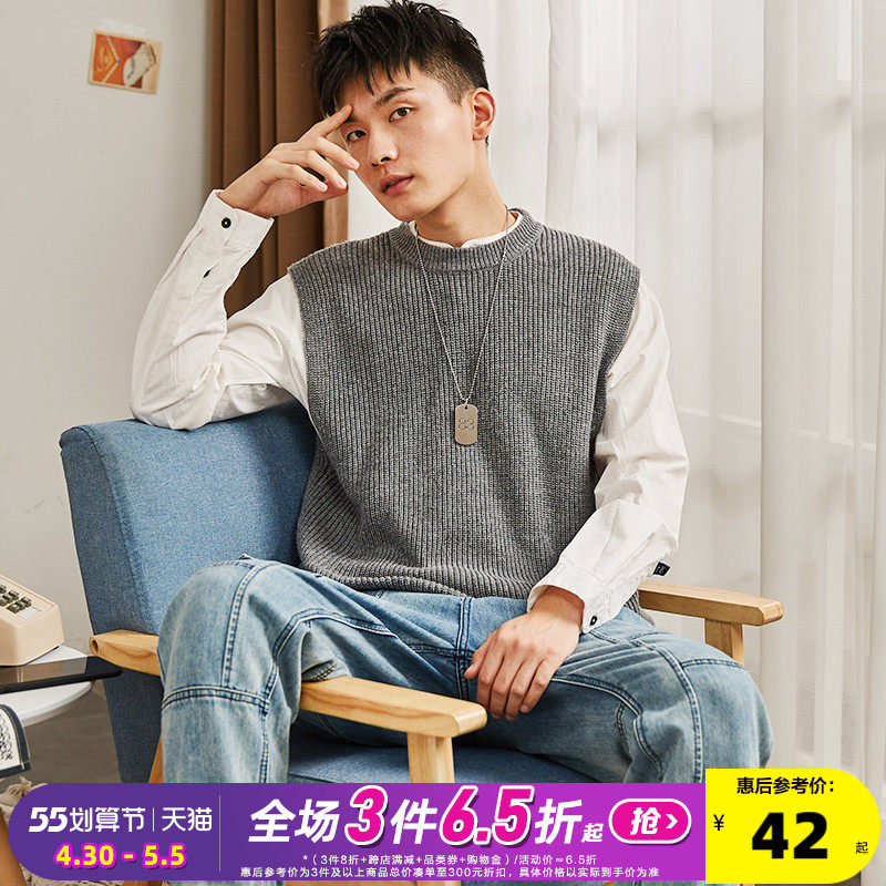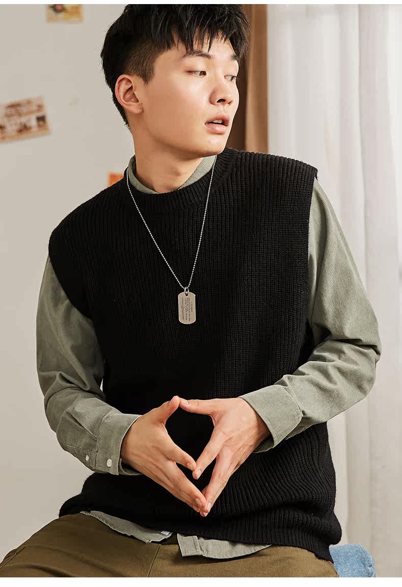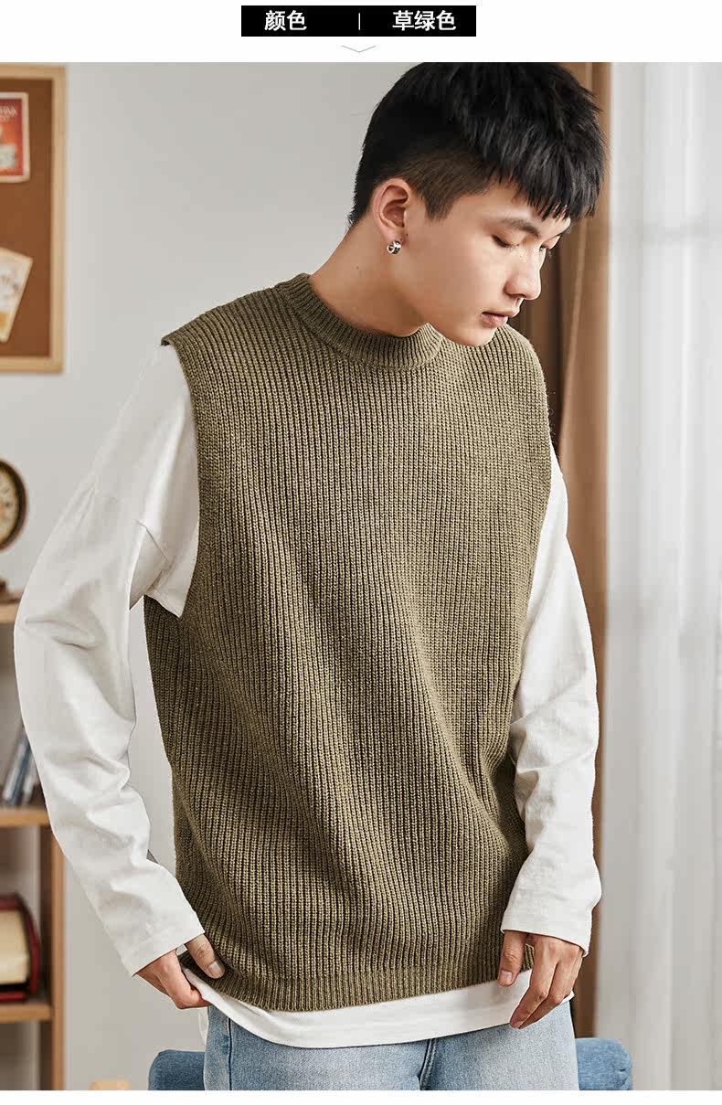 Демисезонный свитер, трикотажный ретро базовый приятный телу жилет для школьников и студентов с круглым воротником без рукавов