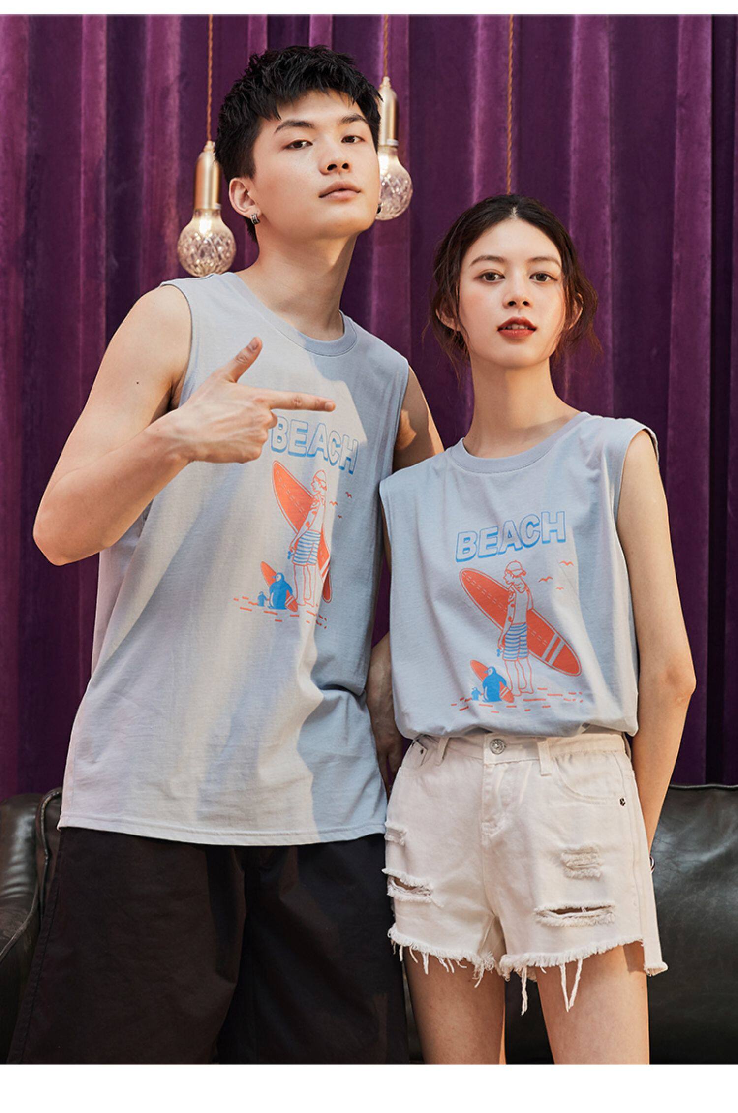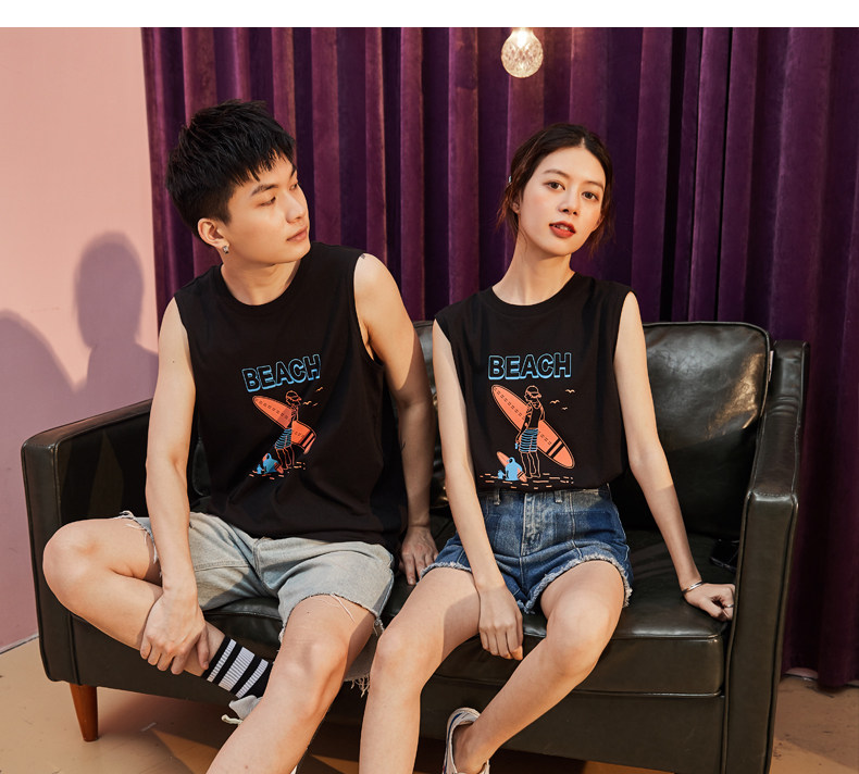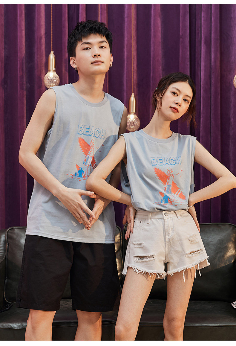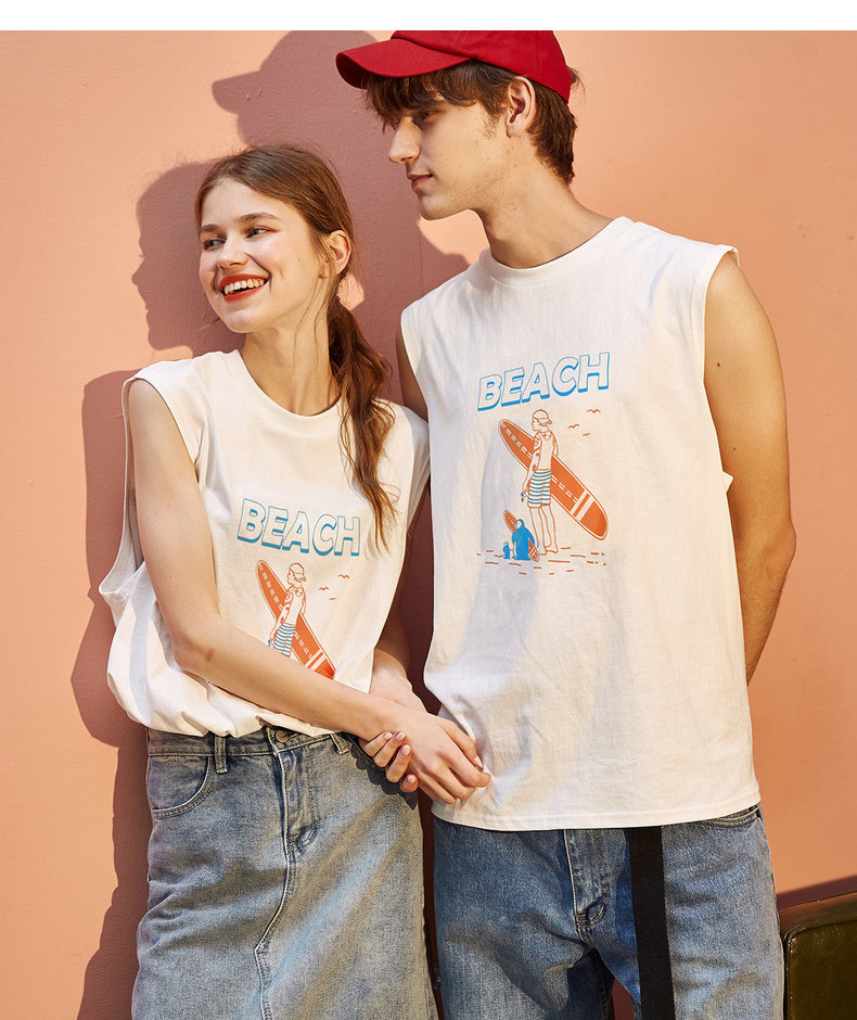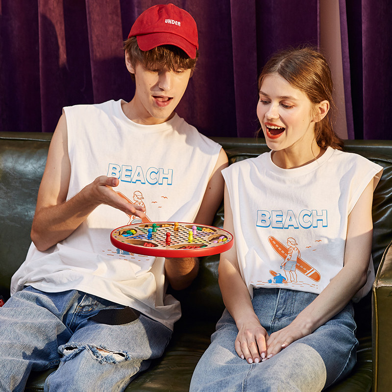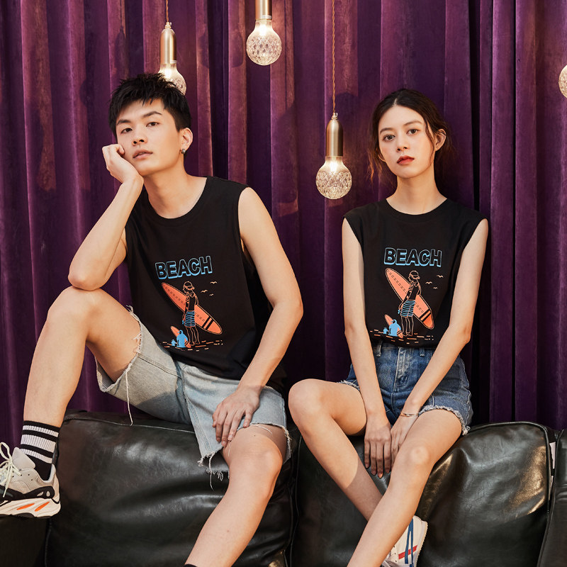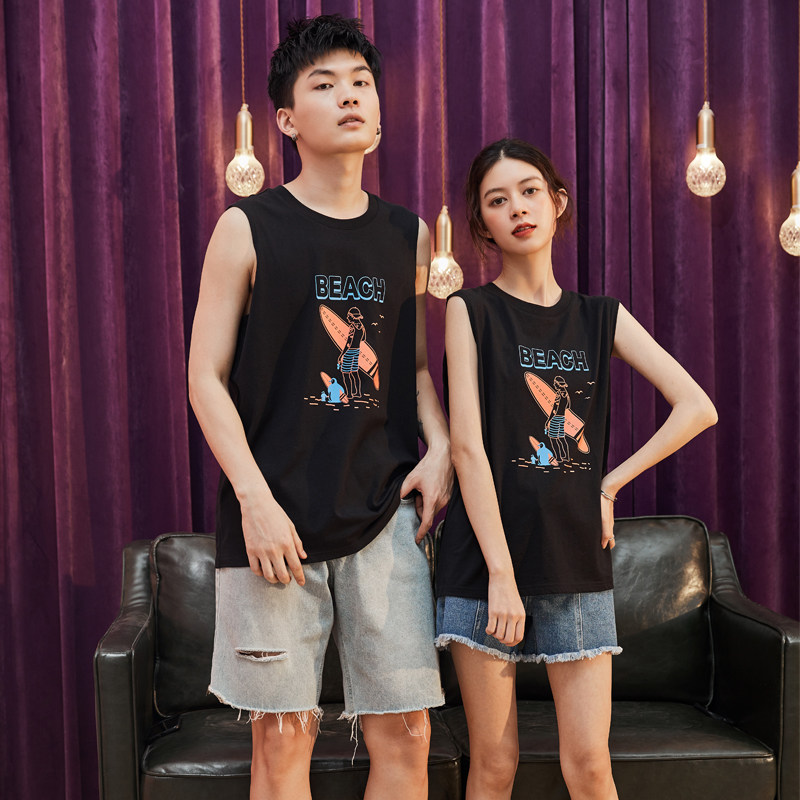 Летняя одежда, парная одежда, белый жилет, футболка без рукавов подходит для мужчин и женщин, 2020, для влюбленных, в корейском стиле, оверсайз