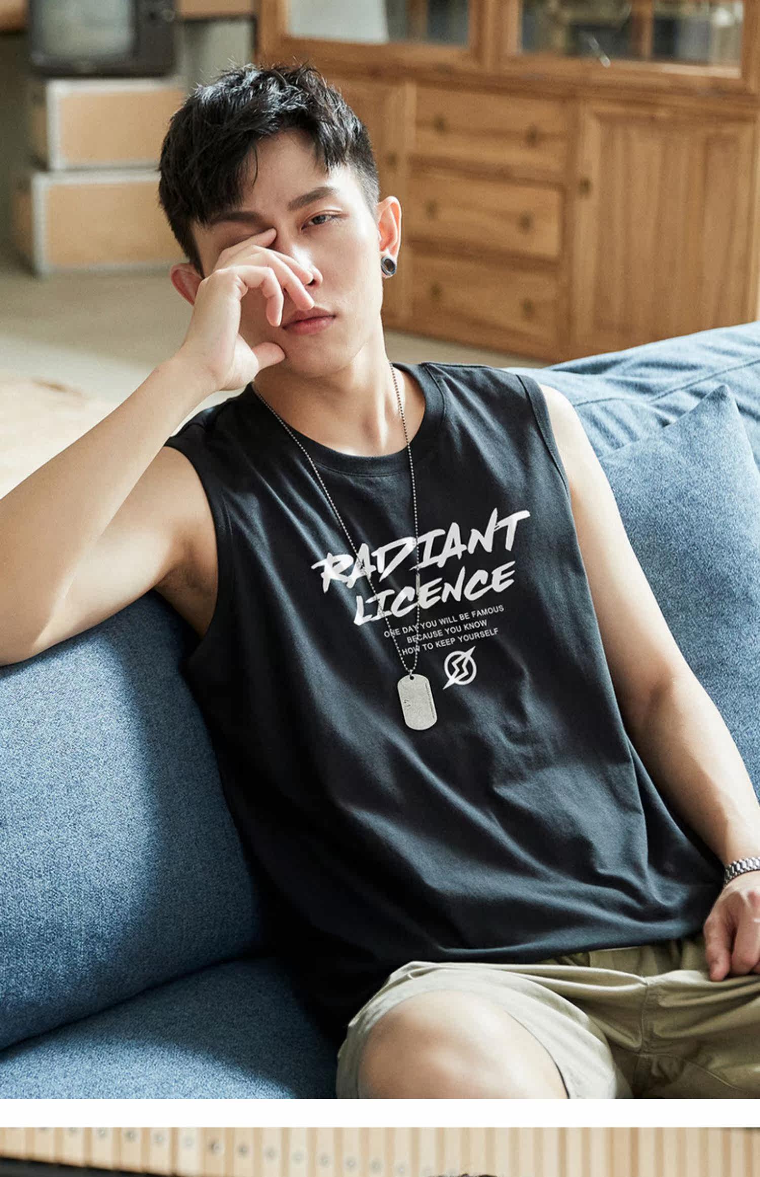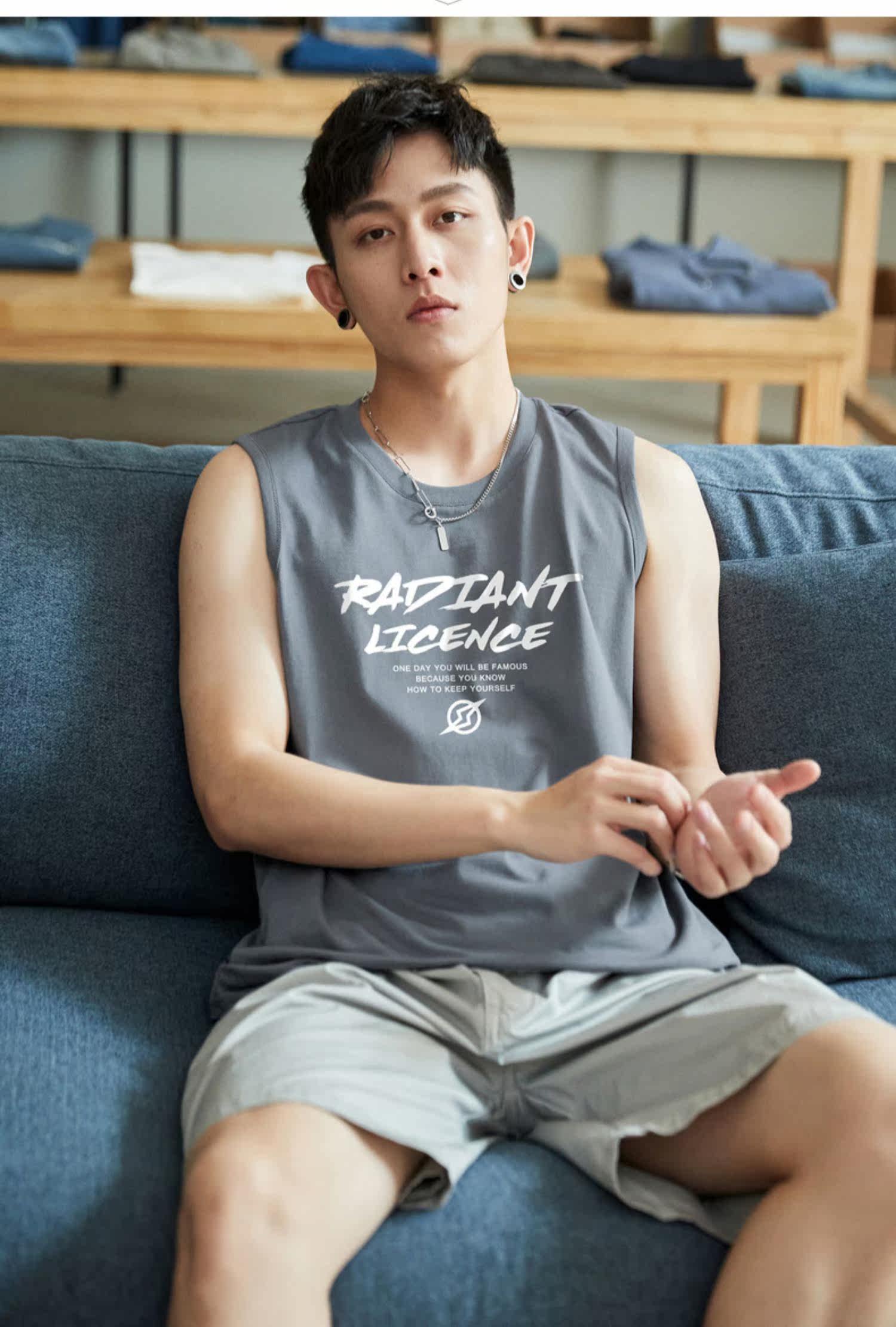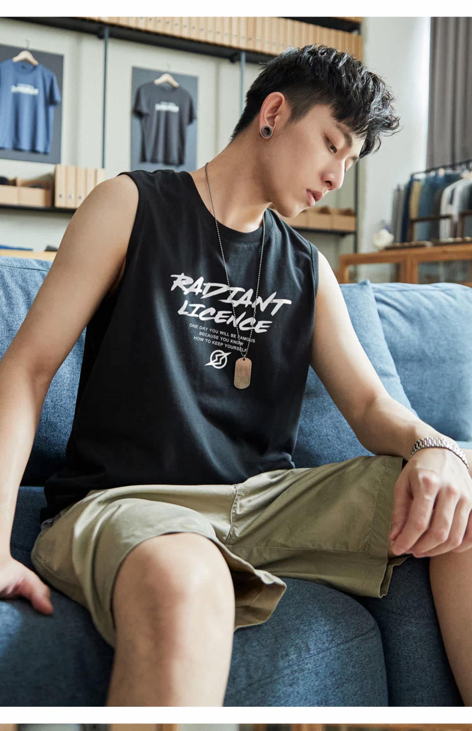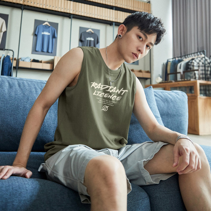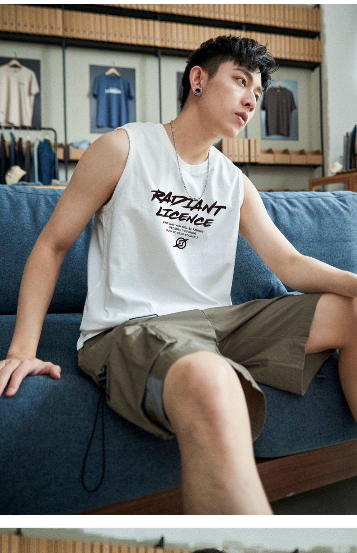 Летняя хлопковая майка топ, трендовая футболка без рукавов, спортивный брендовый жилет, сезон 2021, подходит для подростков