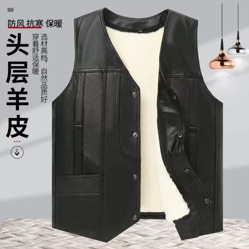 Мужской демисезонный шерстяной утепленный жилет, для среднего возраста, из натуральной кожи
