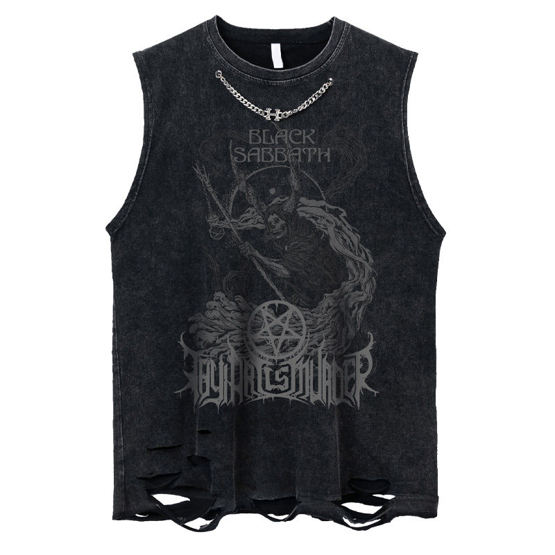 Tide, ретро ожерелье в стиле хип-хоп, жилет без рукавов, брендовая футболка, в американском стиле, оверсайз