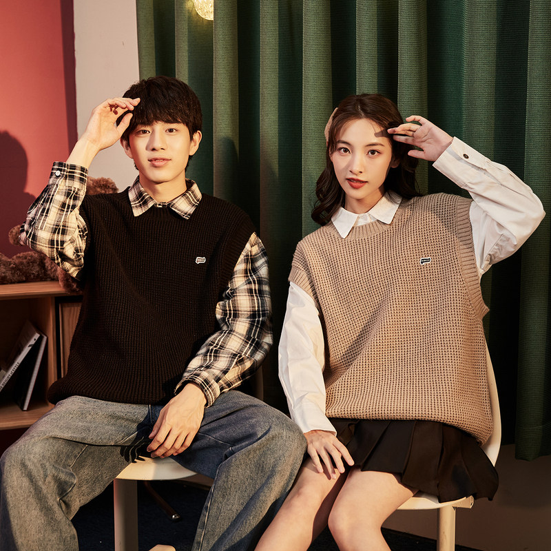 Осенний демисезонный жилет, трикотажный свитер подходит для мужчин и женщин с круглым воротником, для влюбленных, оверсайз