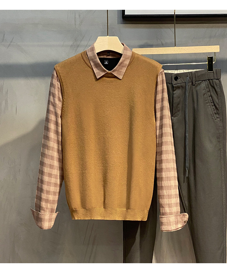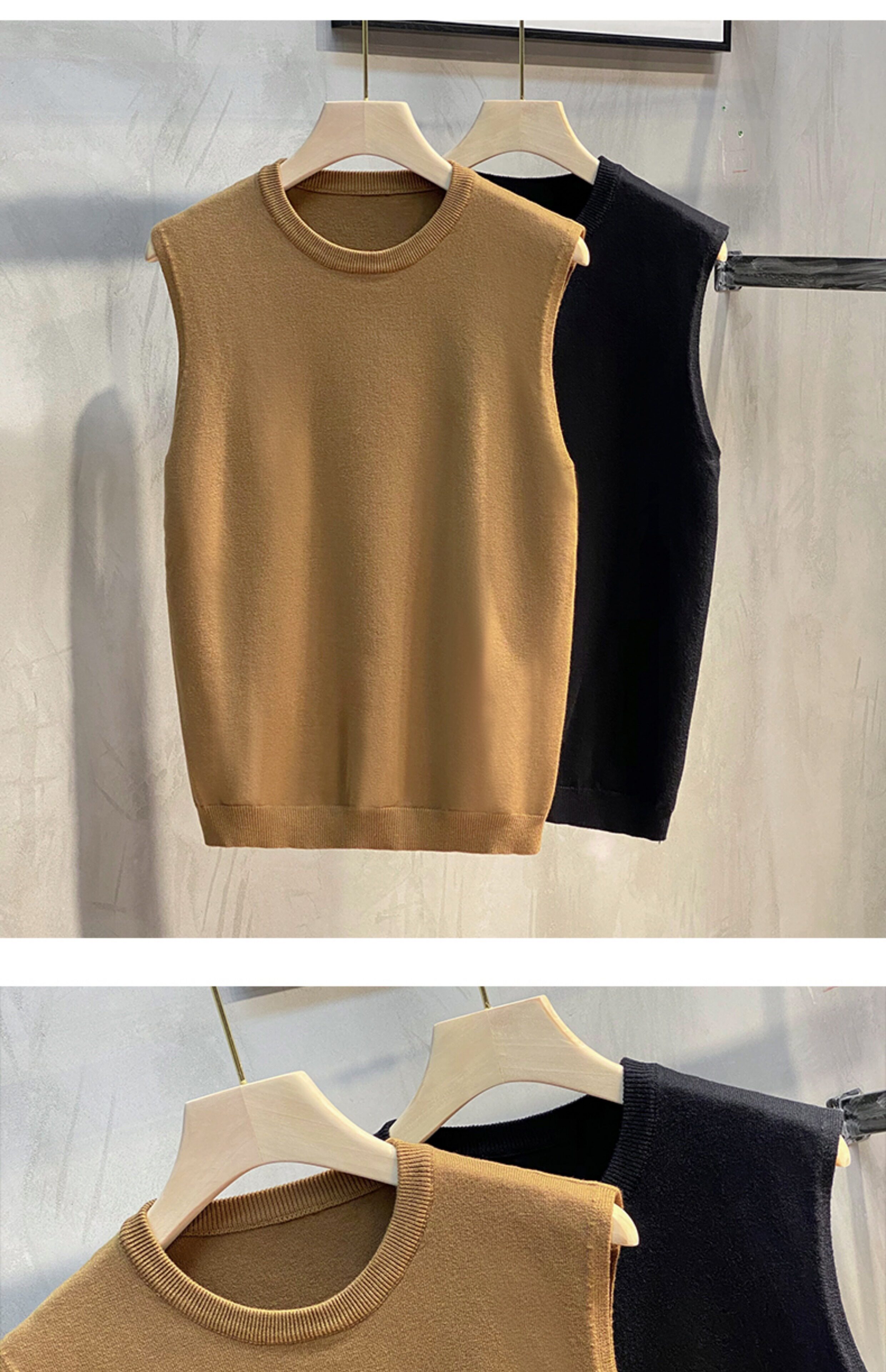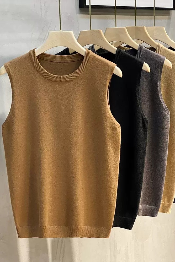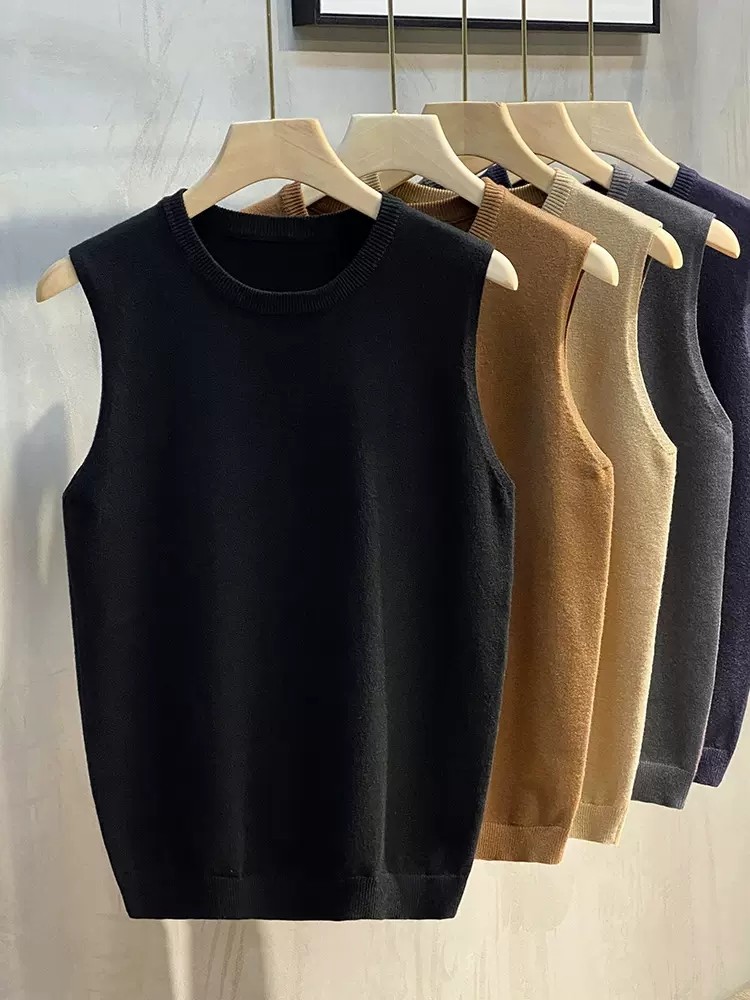 Свитер, мужской демисезонный жилет, базовая приятная телу трикотажная футболка без рукавов с круглым воротником, в корейском стиле