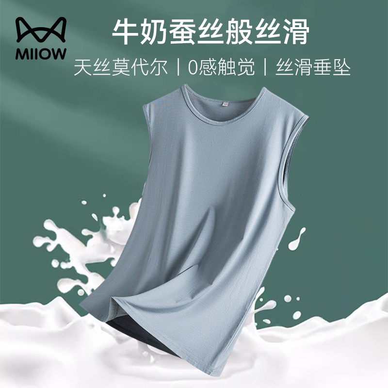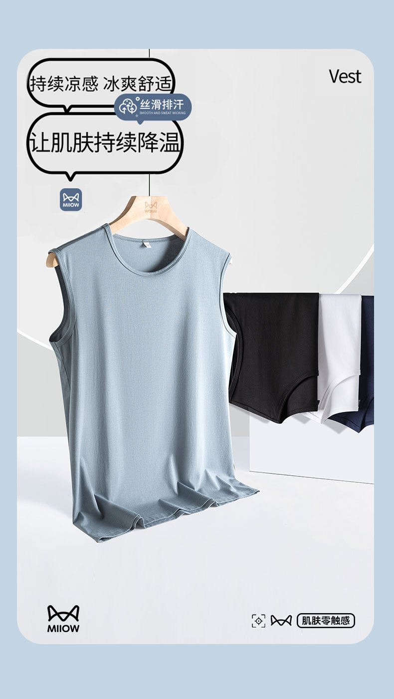 Мужская пижама, летний тонкий шелковый жилет без рукавов