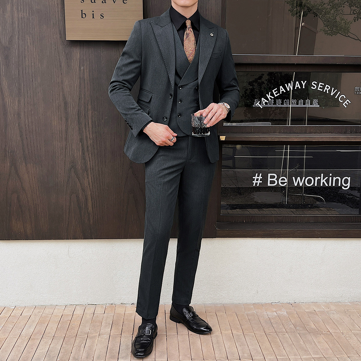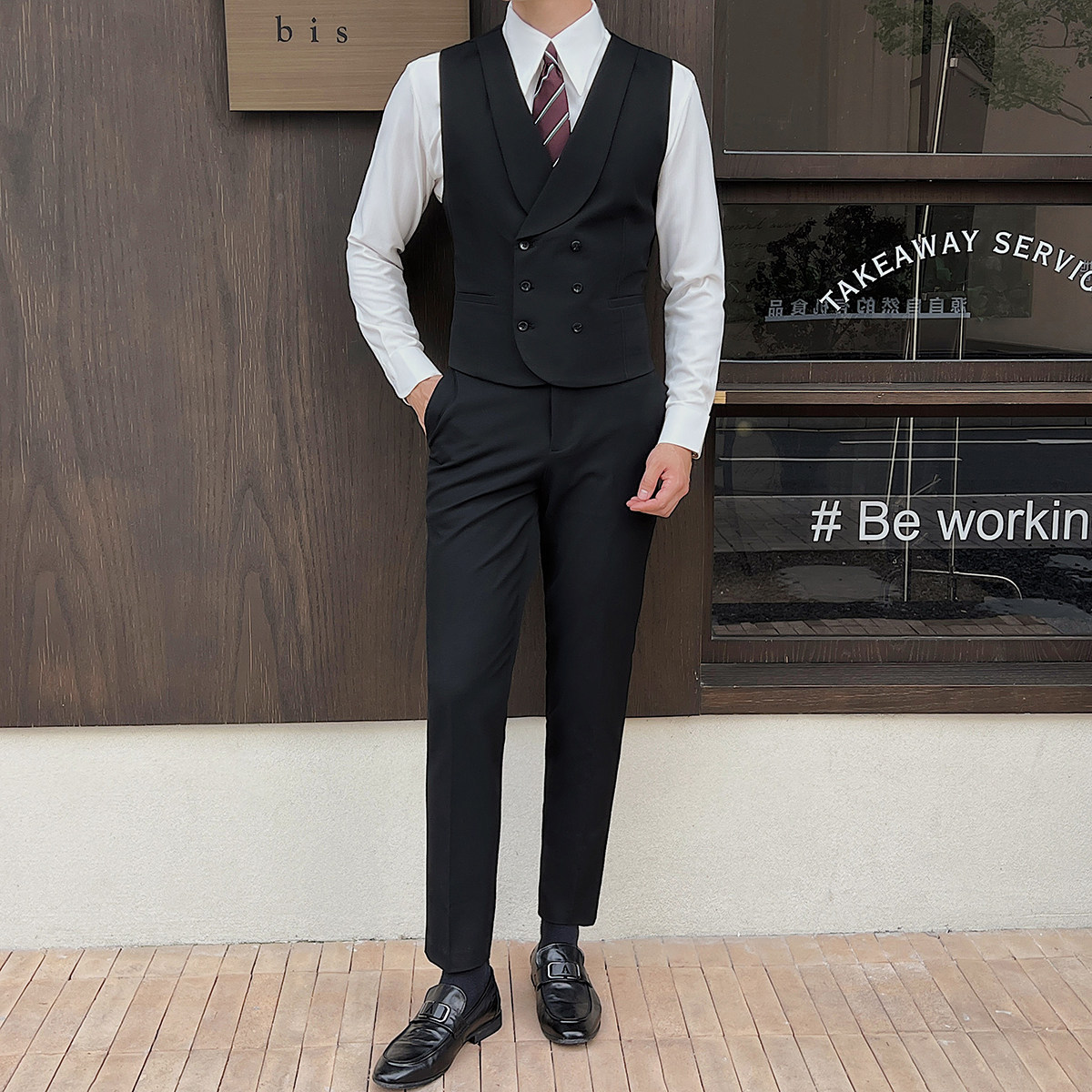 Жилет, комплект, универсальный костюм, в британском стиле, облегающий крой