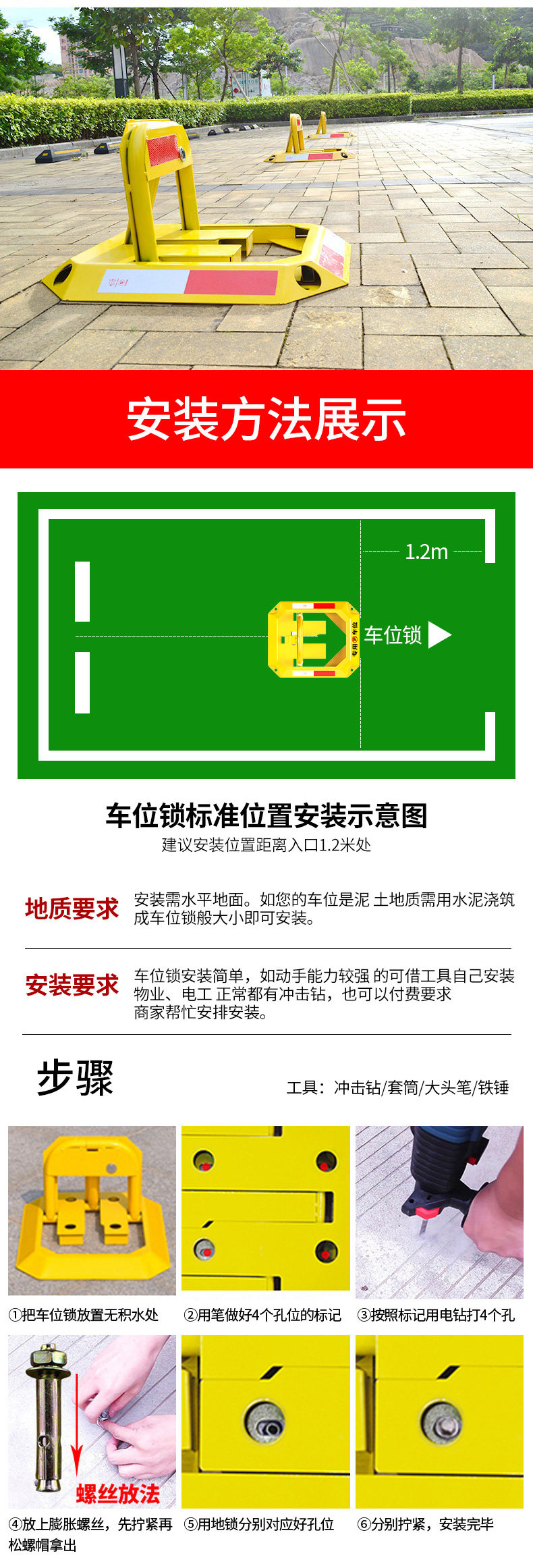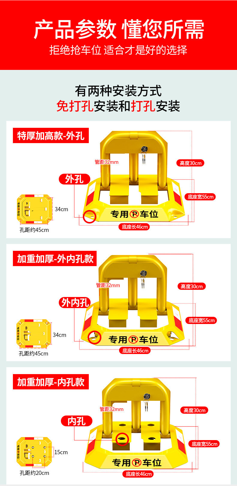 - (Не нужно пробивать отверстия) Утяжеленная модель с двойным замком – монтажный ключ + клей