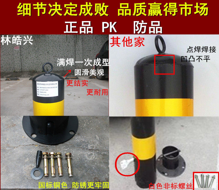Особенности: оборудовано столбцом с помощью ядра блокировки, чтобы при необходимости вы могли открыть замок, поднять колонку и перемещать в любом подходящем месте для прохождения транспортных средств.После завершения транспортировки колонка может быть снова помещена на основание. После блокировки она может избежать занятия других транспортных средств на свои парковочные места.Другая особенность блокировки колонны заключается в том, что его можно настроить перед гаражом или другими соображениями, чтобы быть важными для защиты двери гаража и избежать разрушения.