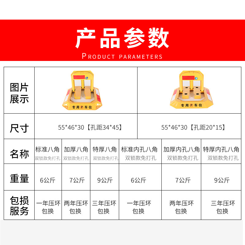Парковочное пространство анти -коллирование и перемешивание заблокированного заблокированного блокировки восьмиугольное гараж, удерживая парковочную парковку парковку парковки без толстой установки