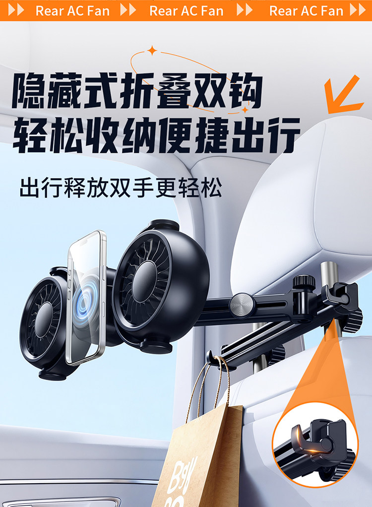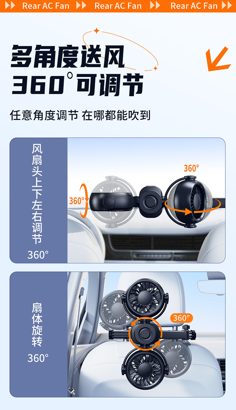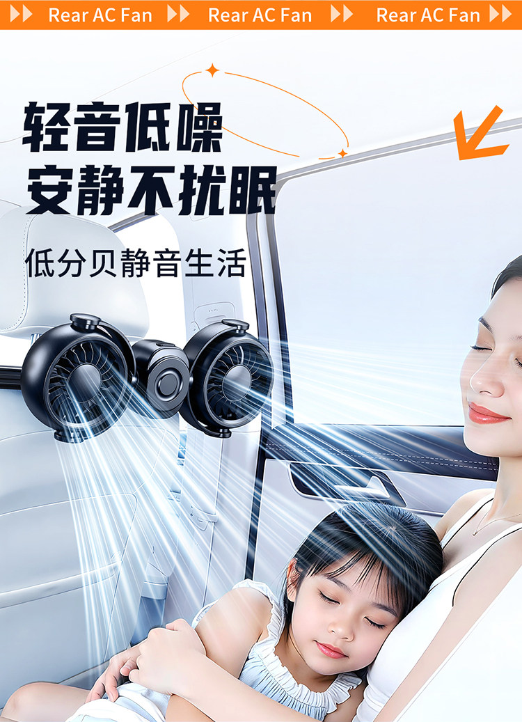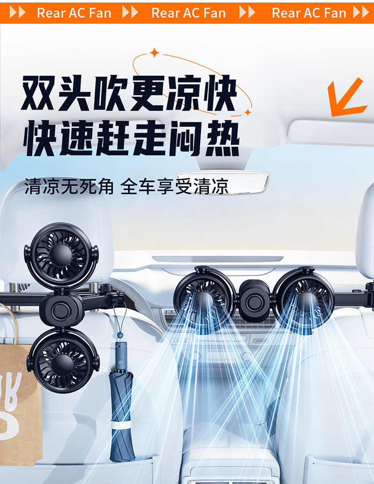 Перезаряжаемый автомобильный задний небольшой вентилятор с USB-портом для автомобиля на заднем сиденье сверхдальнего радиуса действия, специальная новая модель 2026 года