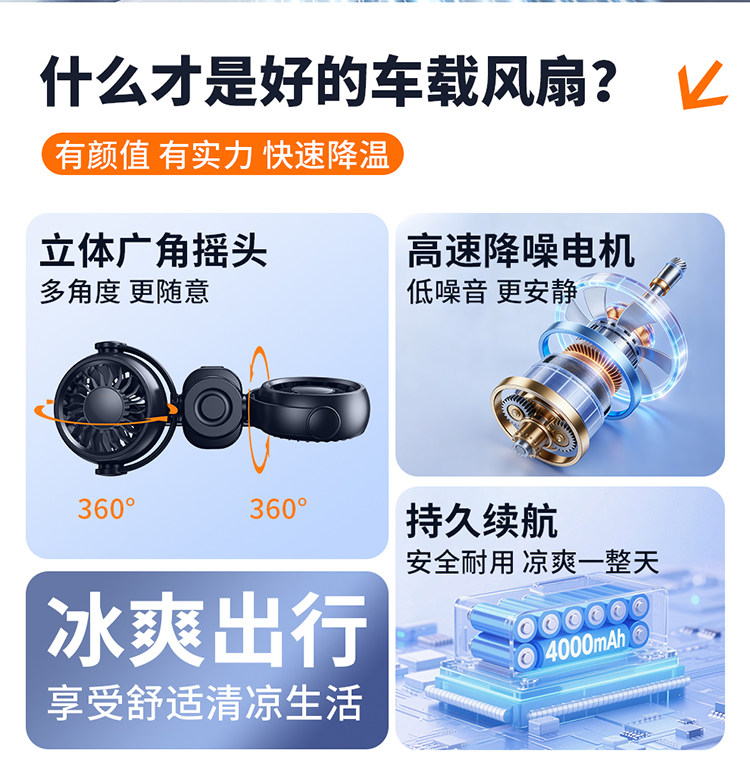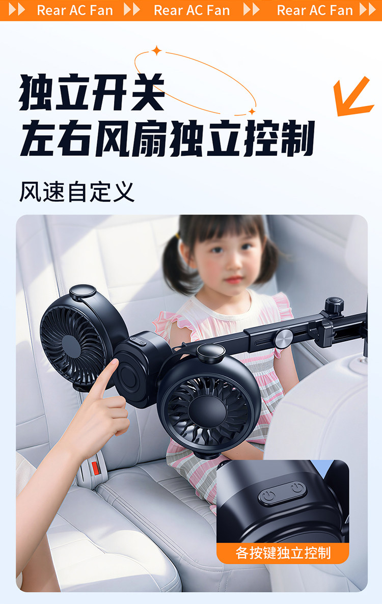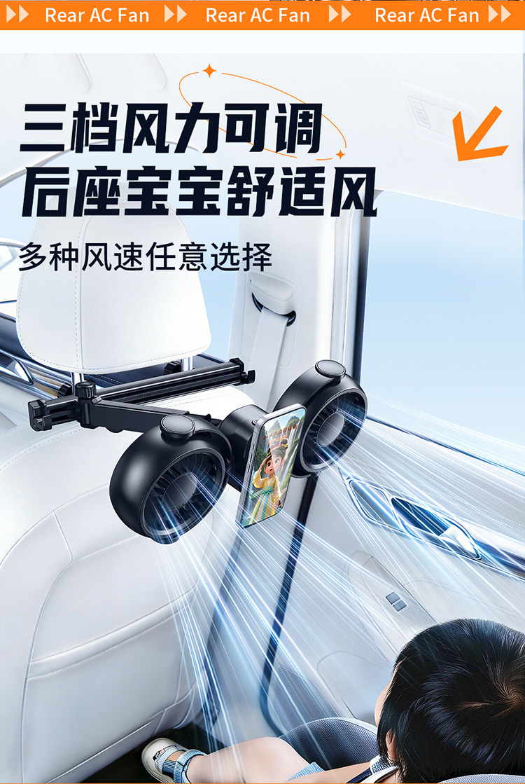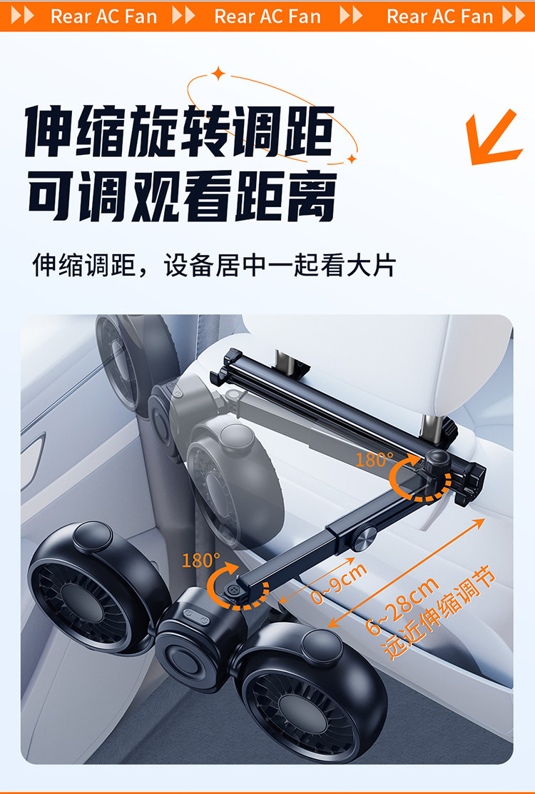 Перезаряжаемый автомобильный задний небольшой вентилятор с USB-портом для автомобиля на заднем сиденье сверхдальнего радиуса действия, специальная новая модель 2026 года