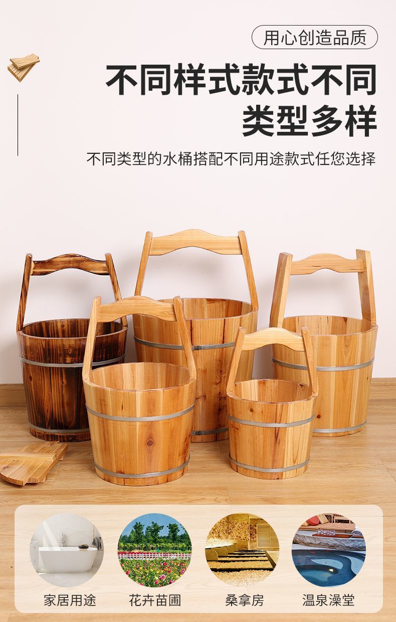 Деревянное ведро, ведро для ванны для ног, маленькое деревянное ведро, сауна, горячий источник, деревянное ведро, ведро, деревянная ложка, реквизит для кино и телевидения.