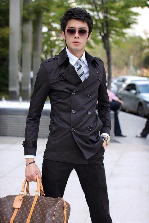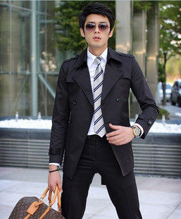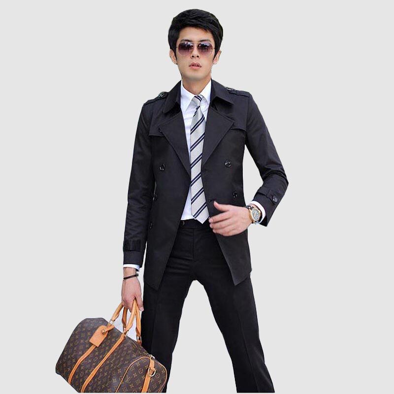 Мужской осенний плащ, длинная приталенная куртка, пальто, средней длины