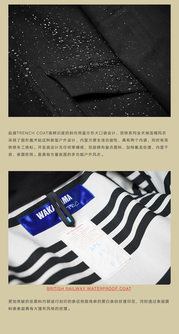 Wakayama British Railway Series двухслойный ветрозащитный плащ с тефлоновым покрытием для весны и осени, водонепроницаемый плащ, ветровка, куртка с капюшоном для мужчин