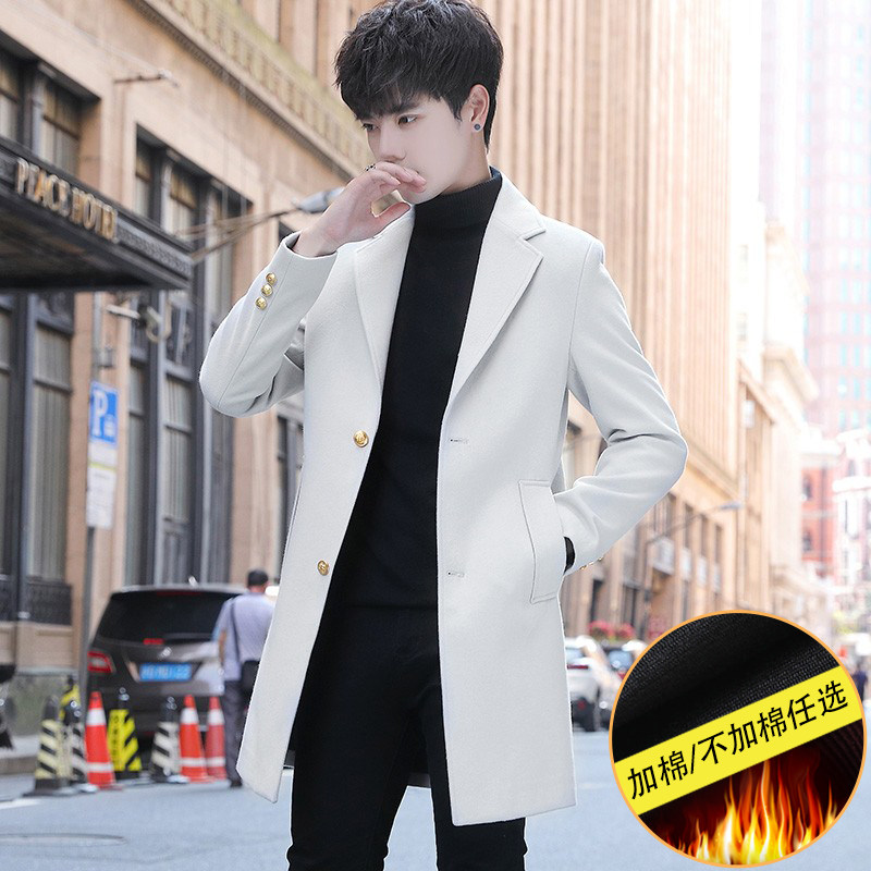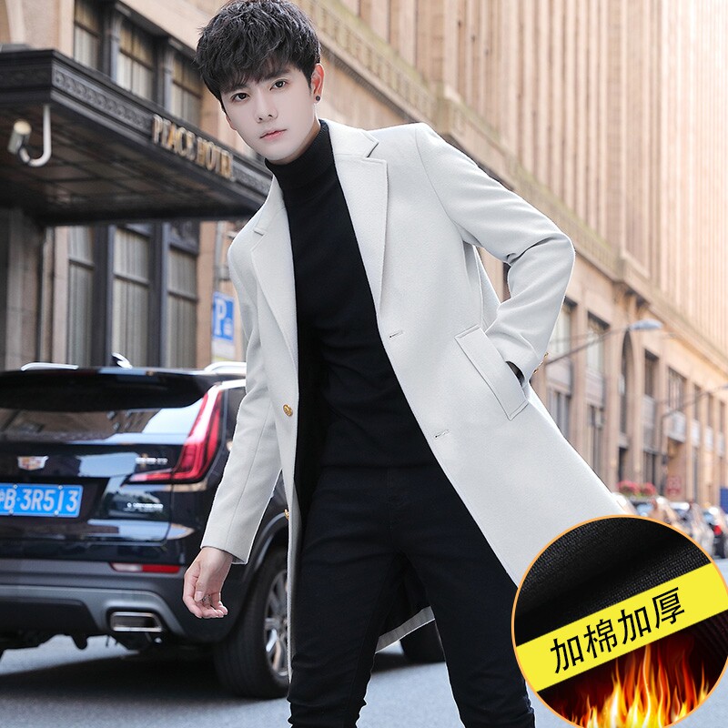 Мужской плащ, длинное трендовое демисезонное шерстяное пальто, куртка, 2021 года, средней длины, облегающий крой
