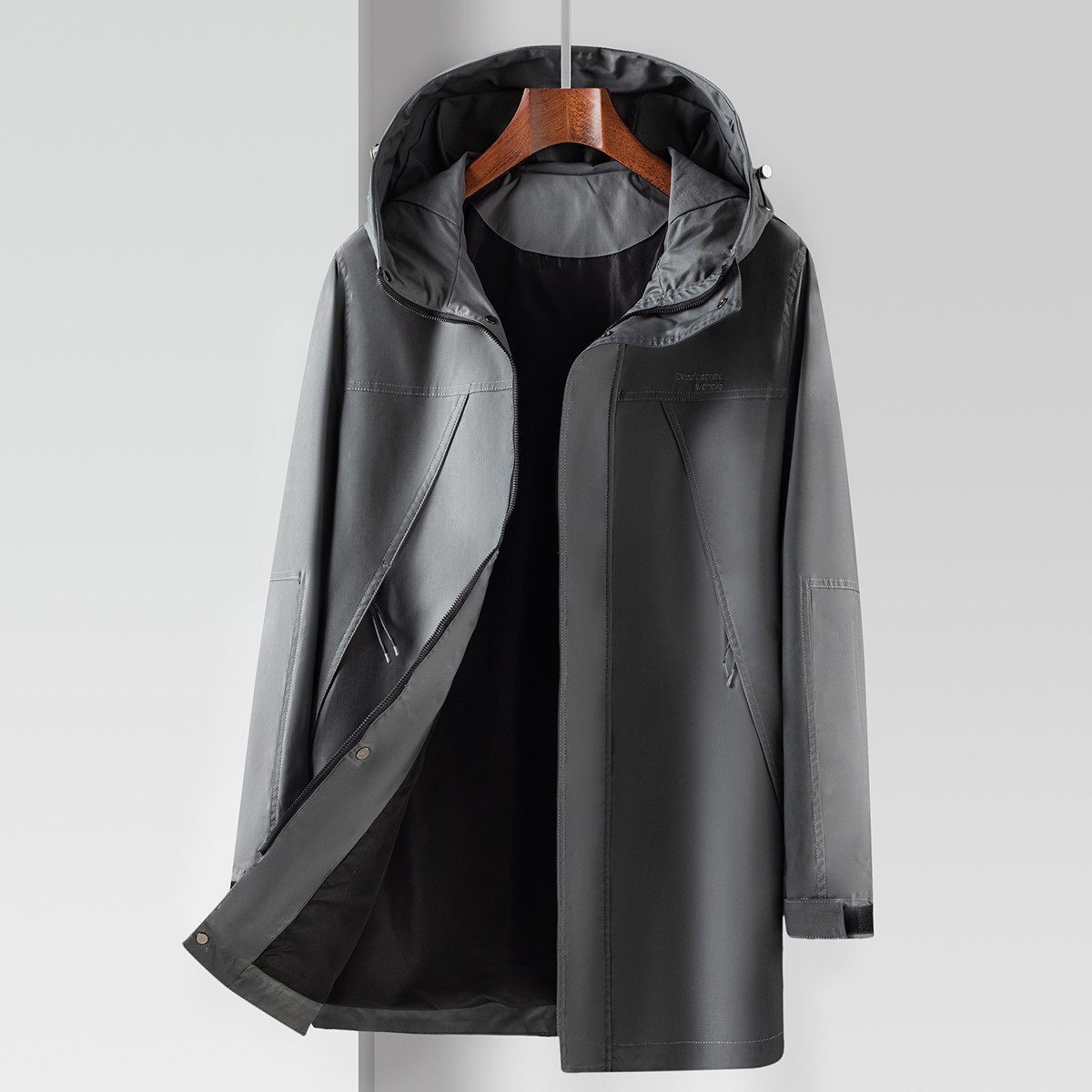 Тонкий плащ с капюшоном, куртка с молнией, с вышивкой