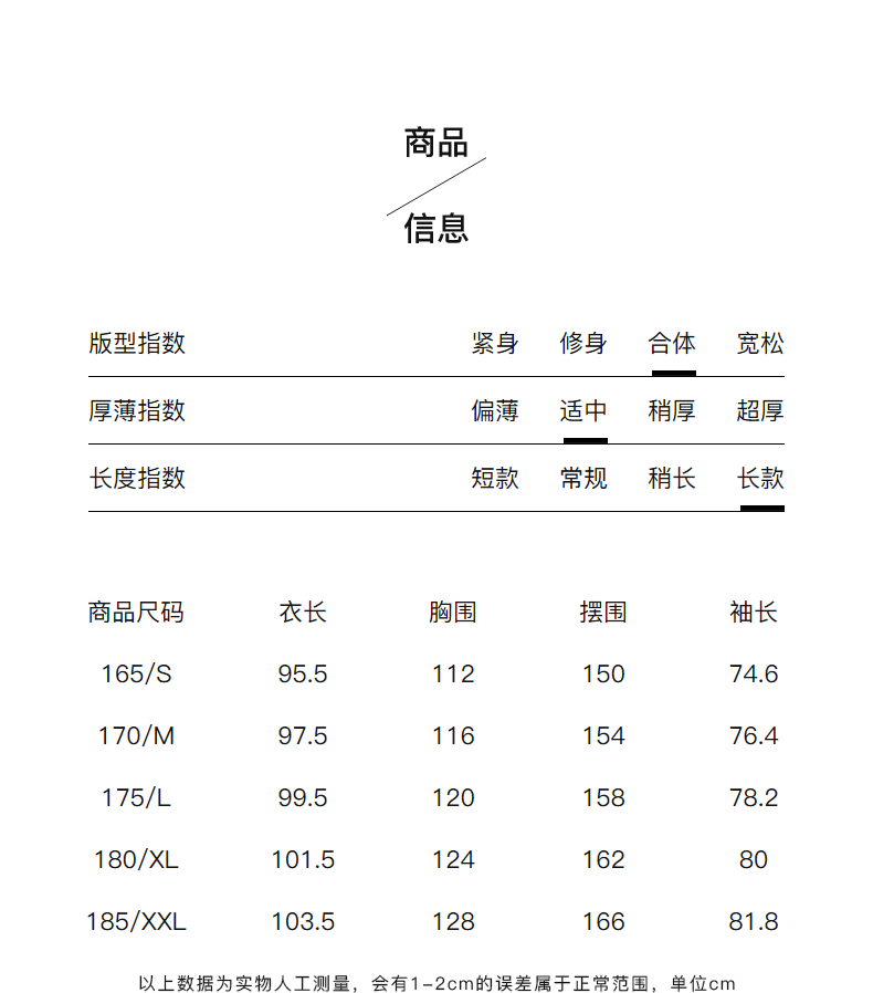 - = 185/XXL 175/L 180/XL