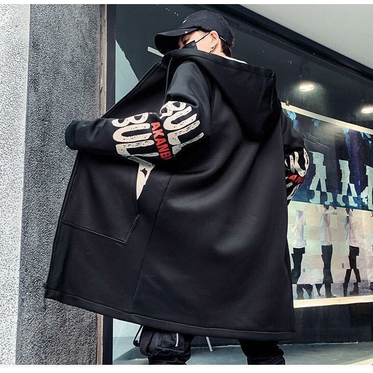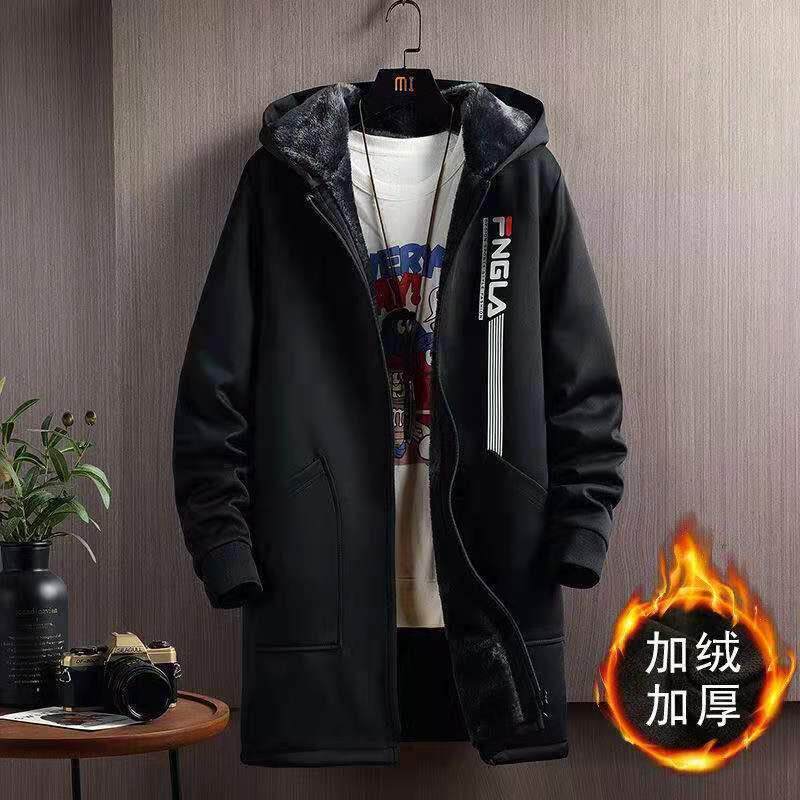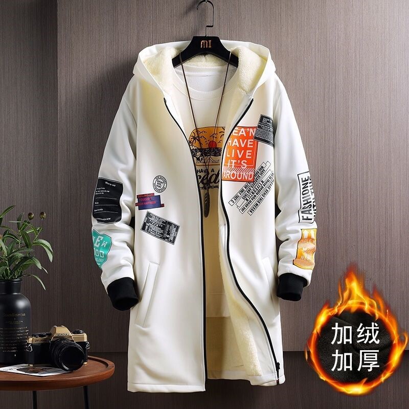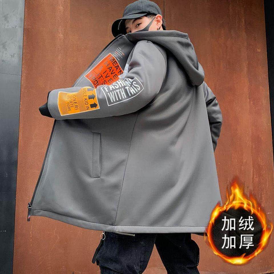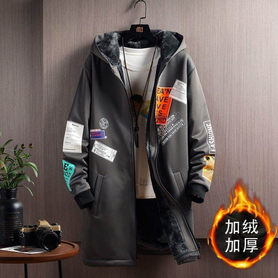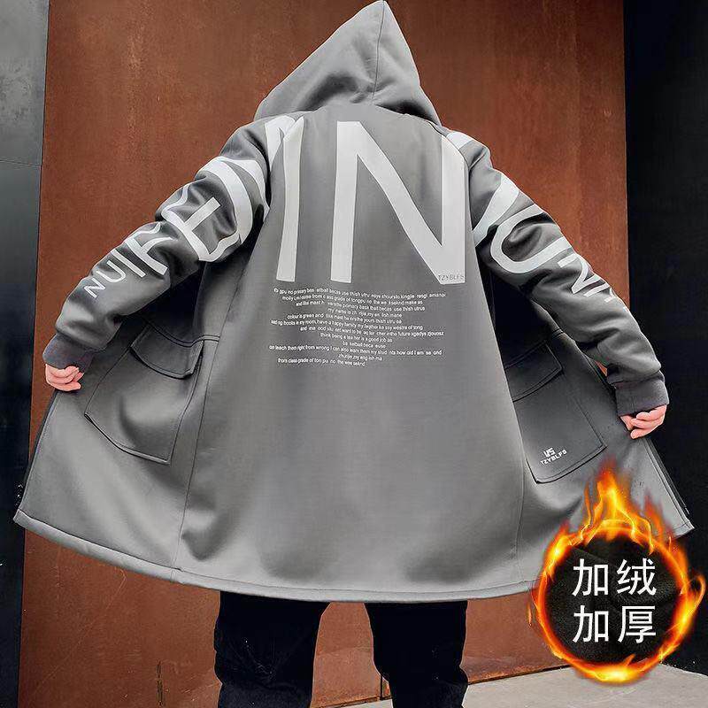 Мужской длинный демисезонный утепленный плащ, трендовое пальто с капюшоном для школьников, средней длины, в корейском стиле