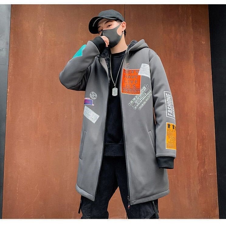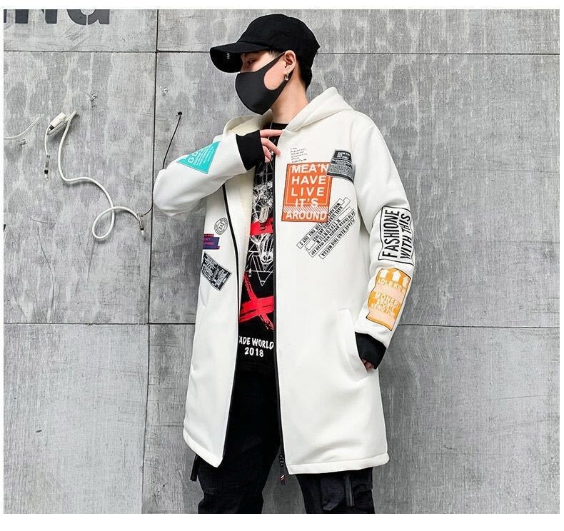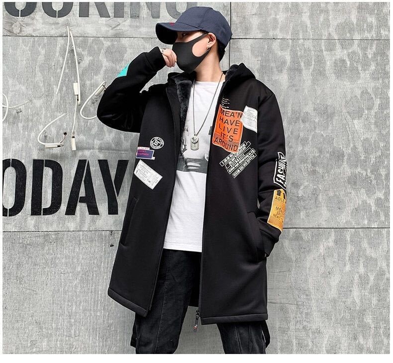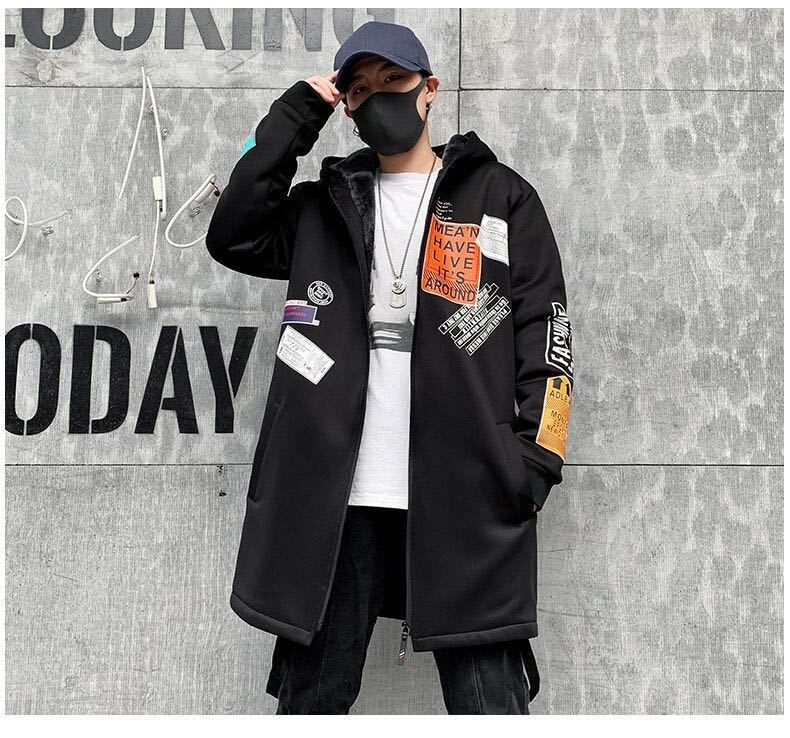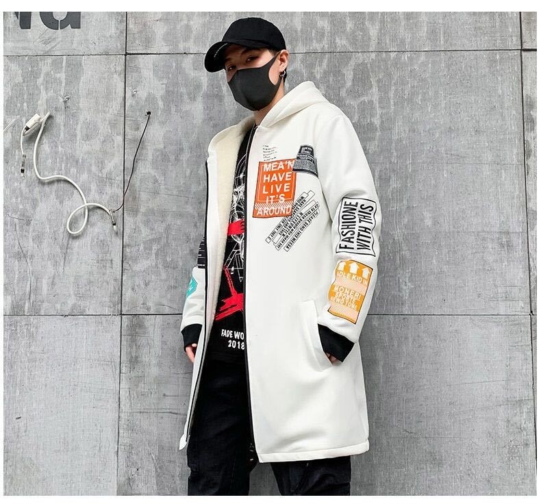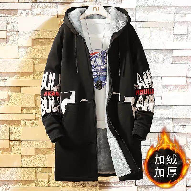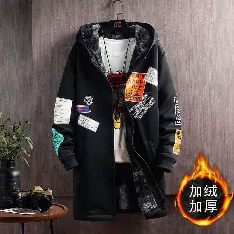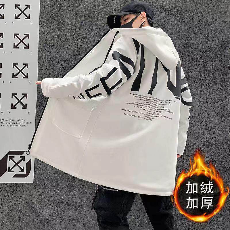 Мужской длинный демисезонный утепленный плащ, трендовое пальто с капюшоном для школьников, средней длины, в корейском стиле