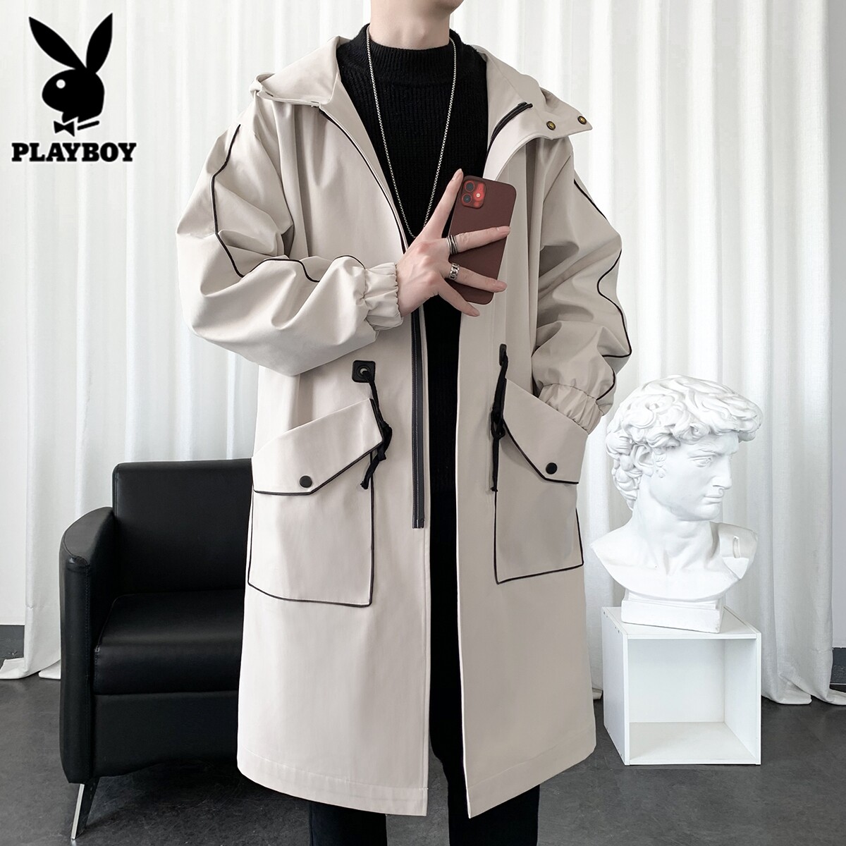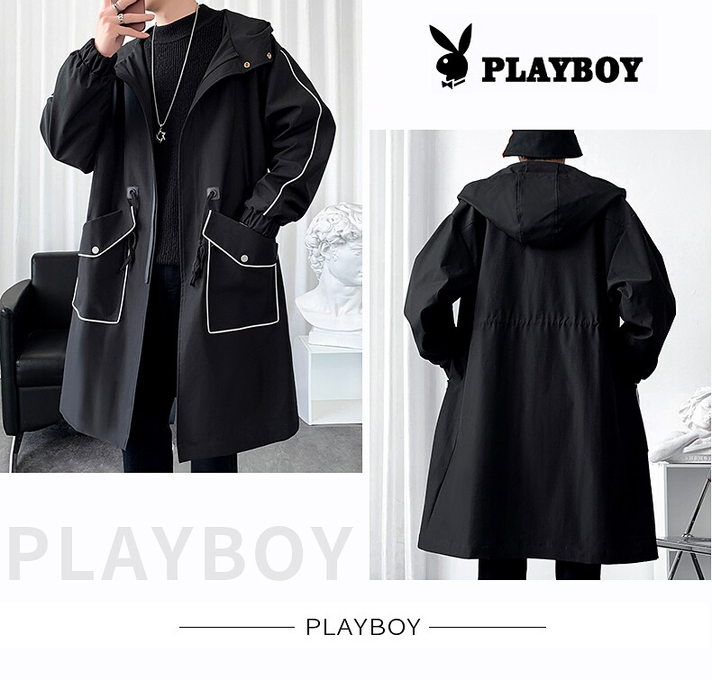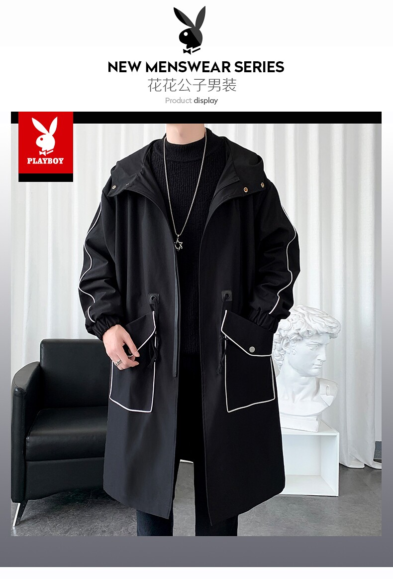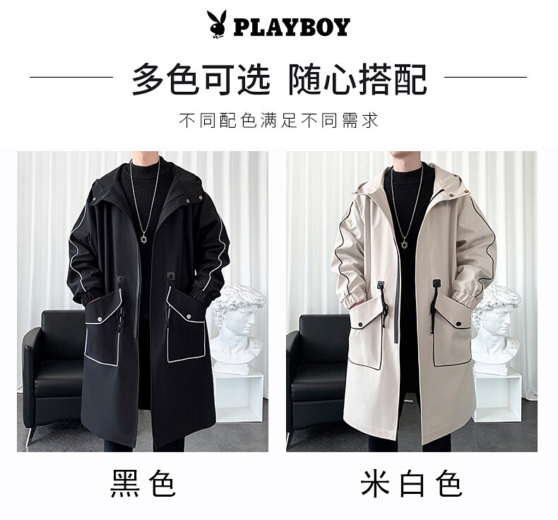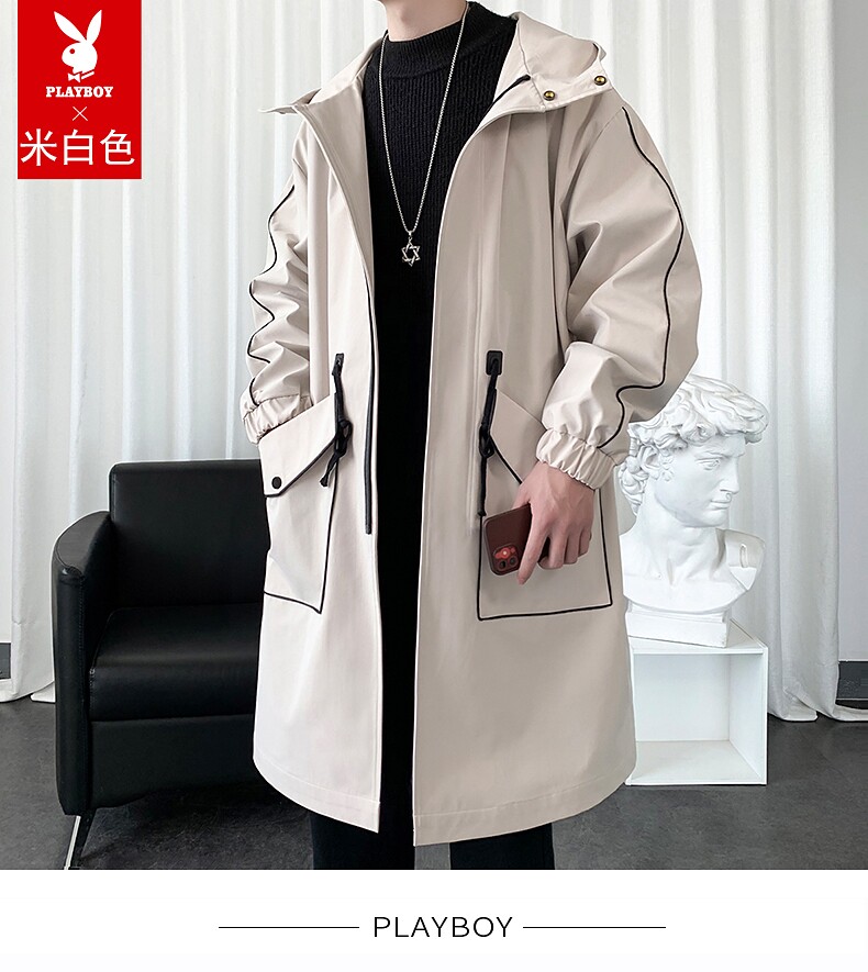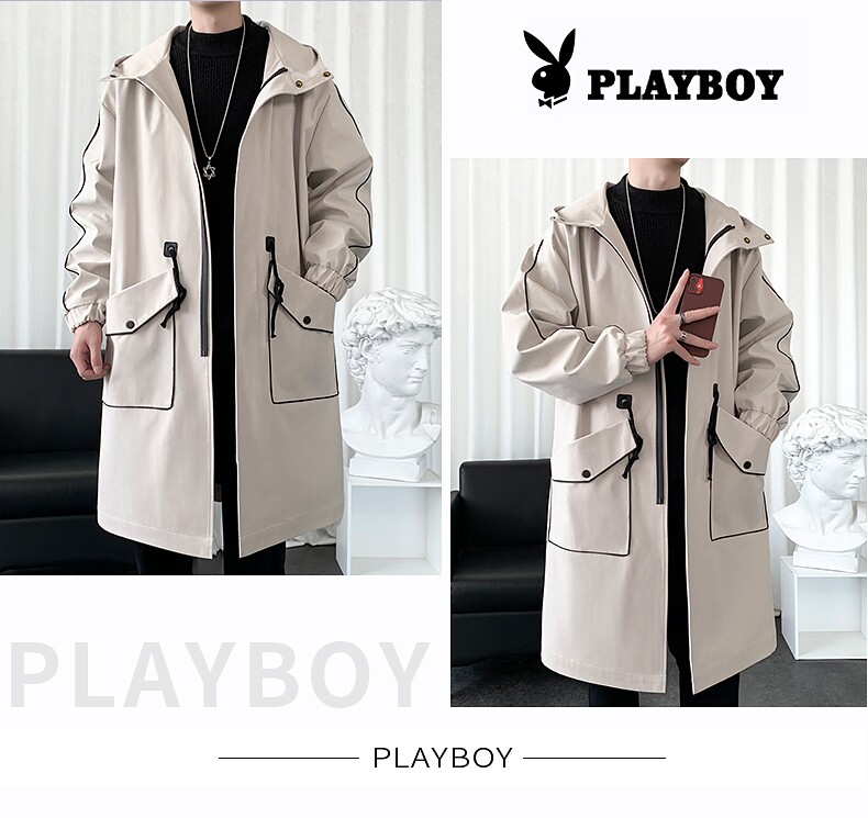Playboy, Tide, мужской длинный плащ, осеннее пальто для отдыха, средней длины, 2025 года