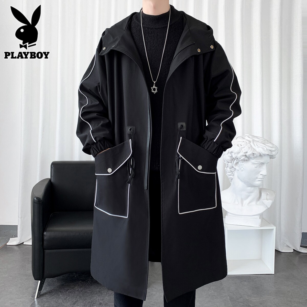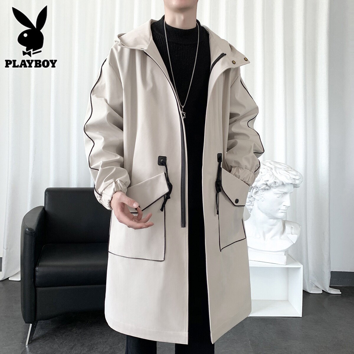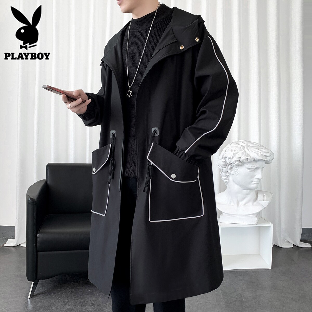 Playboy, Tide, мужской длинный плащ, осеннее пальто для отдыха, средней длины, 2025 года