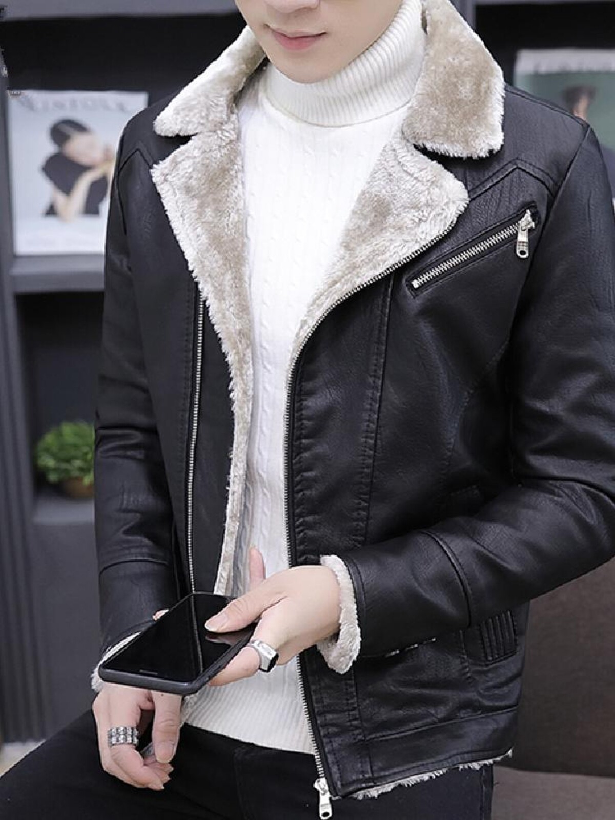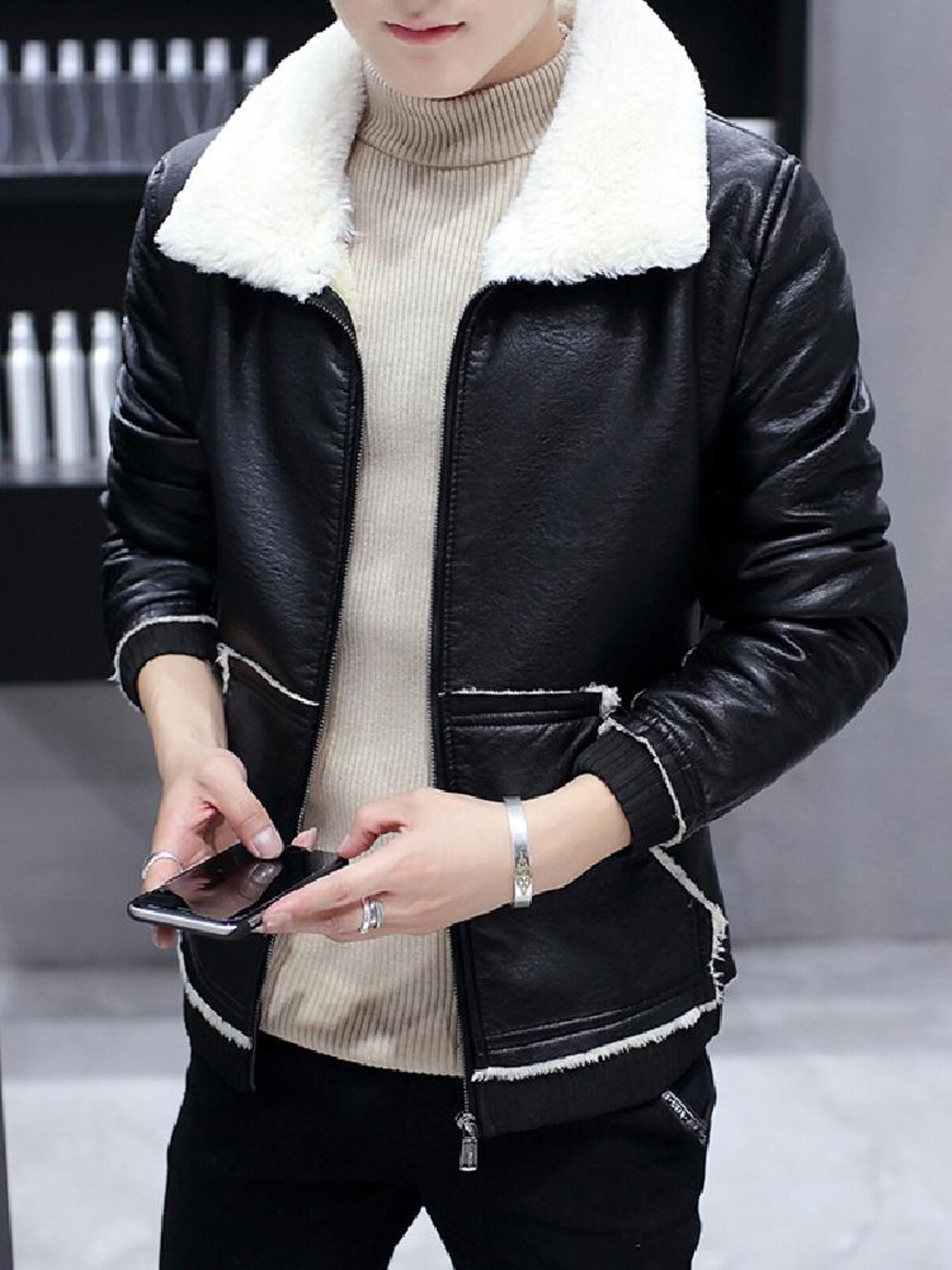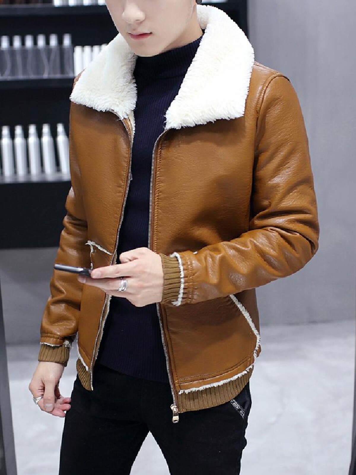 Демисезонная полиуретановая бархатная корейская элегантная куртка, облегающий крой, увеличенная толщина